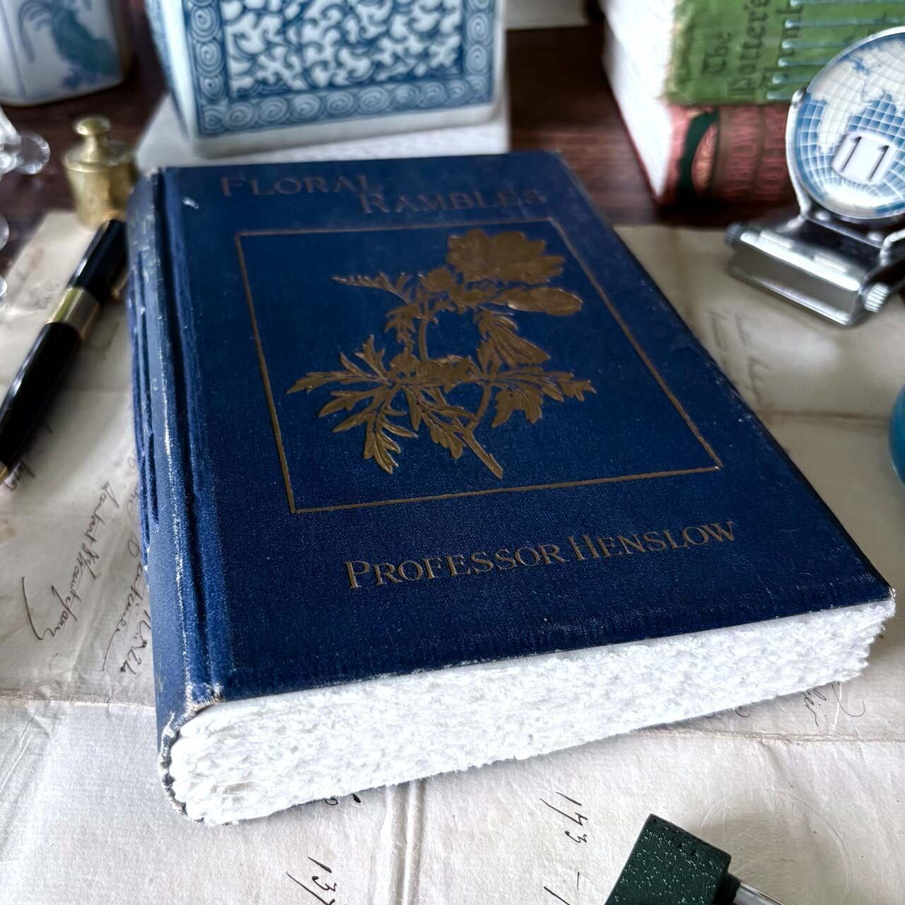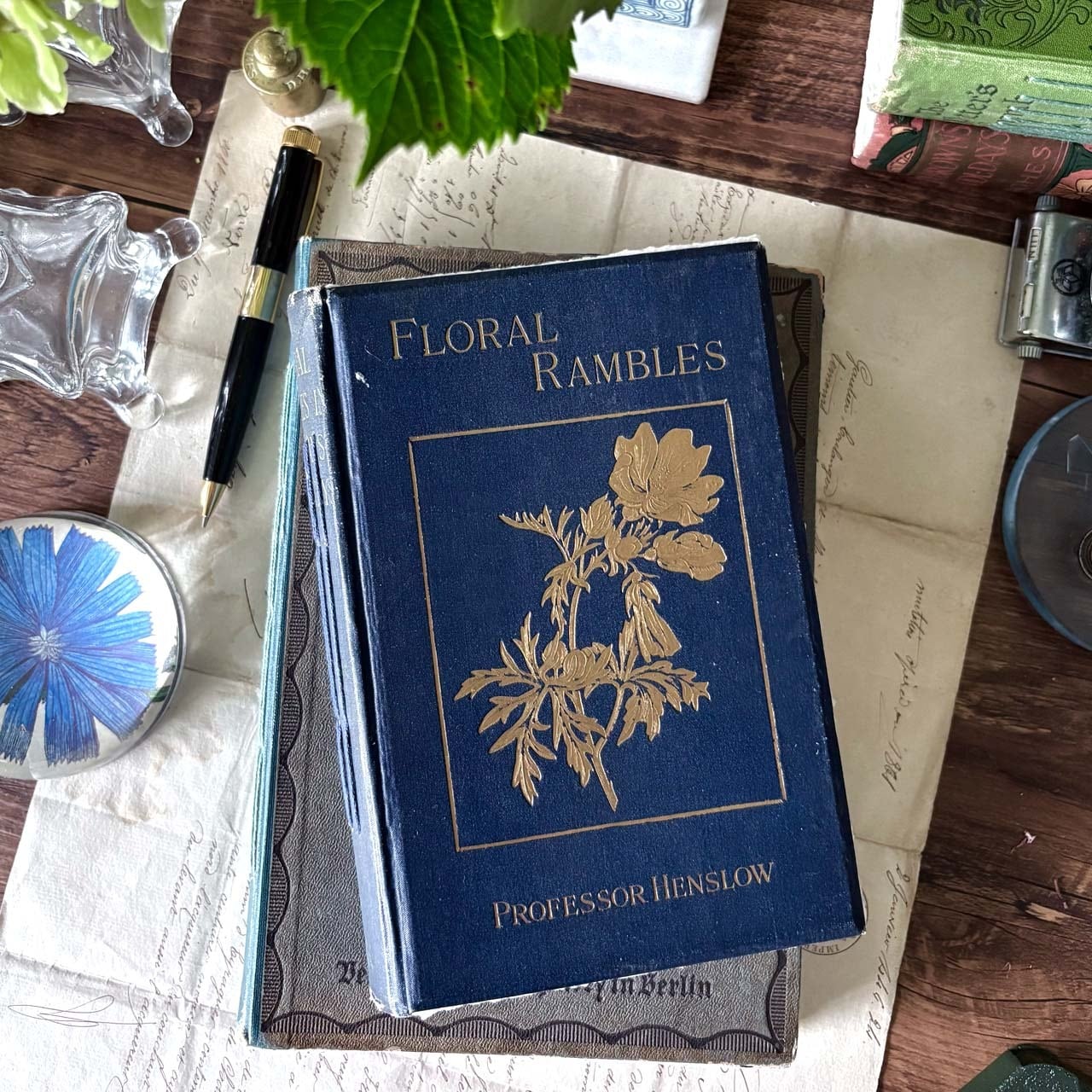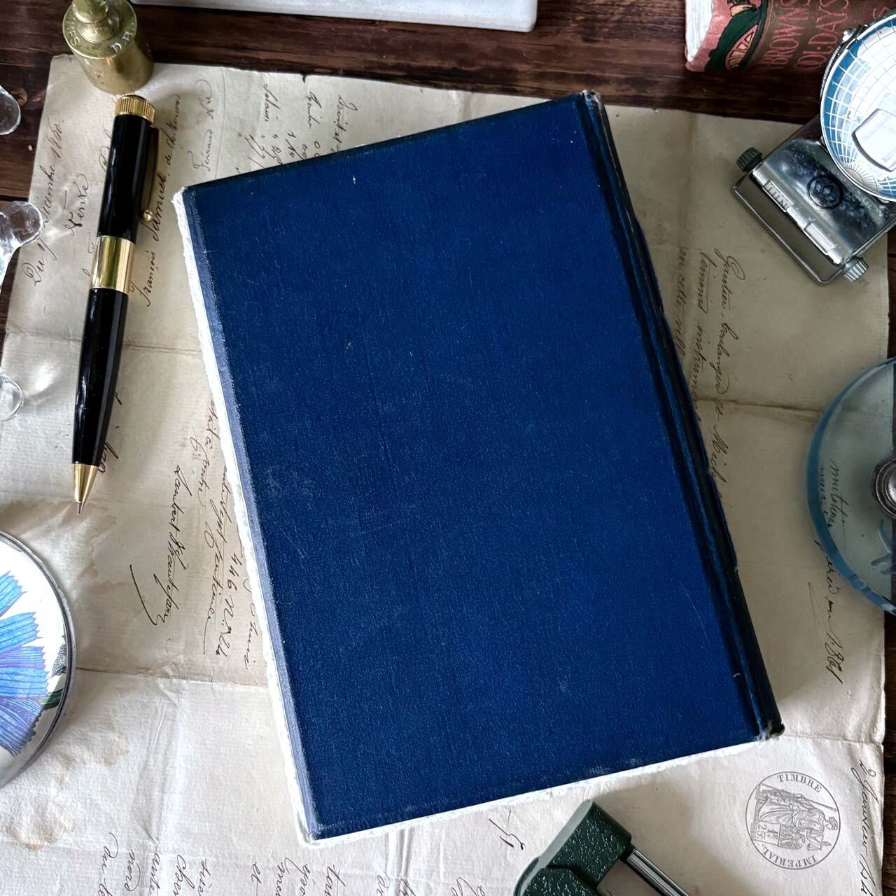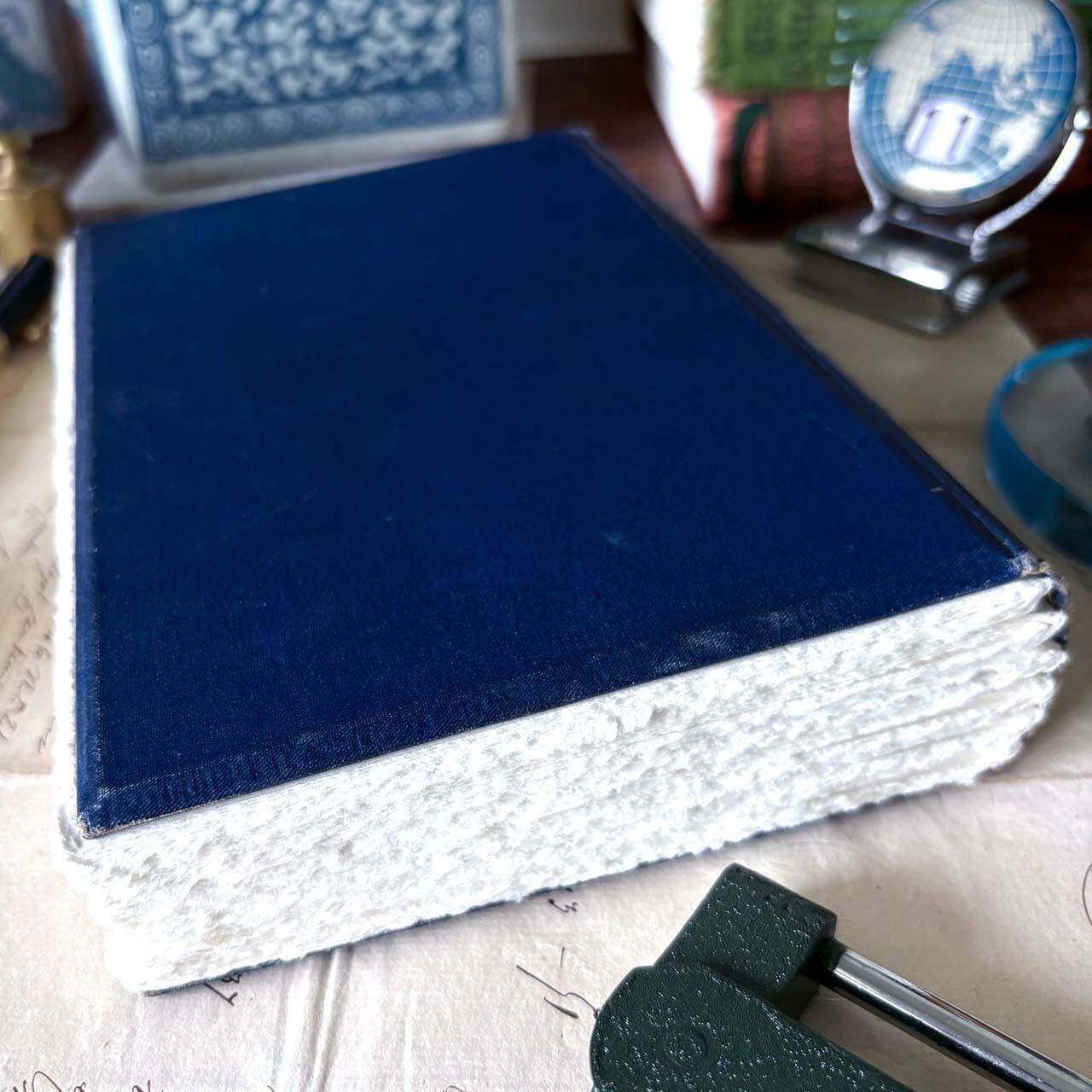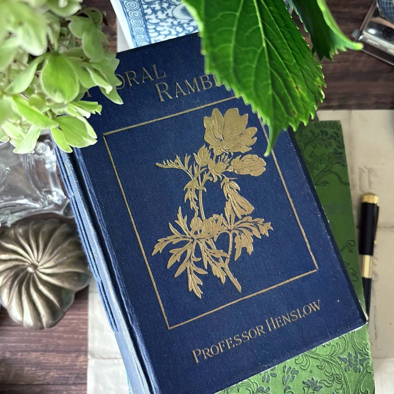 アンティーク洋書リメイク 青い祝物図鑑のノートブック/ Antique foreign book remake notebook
