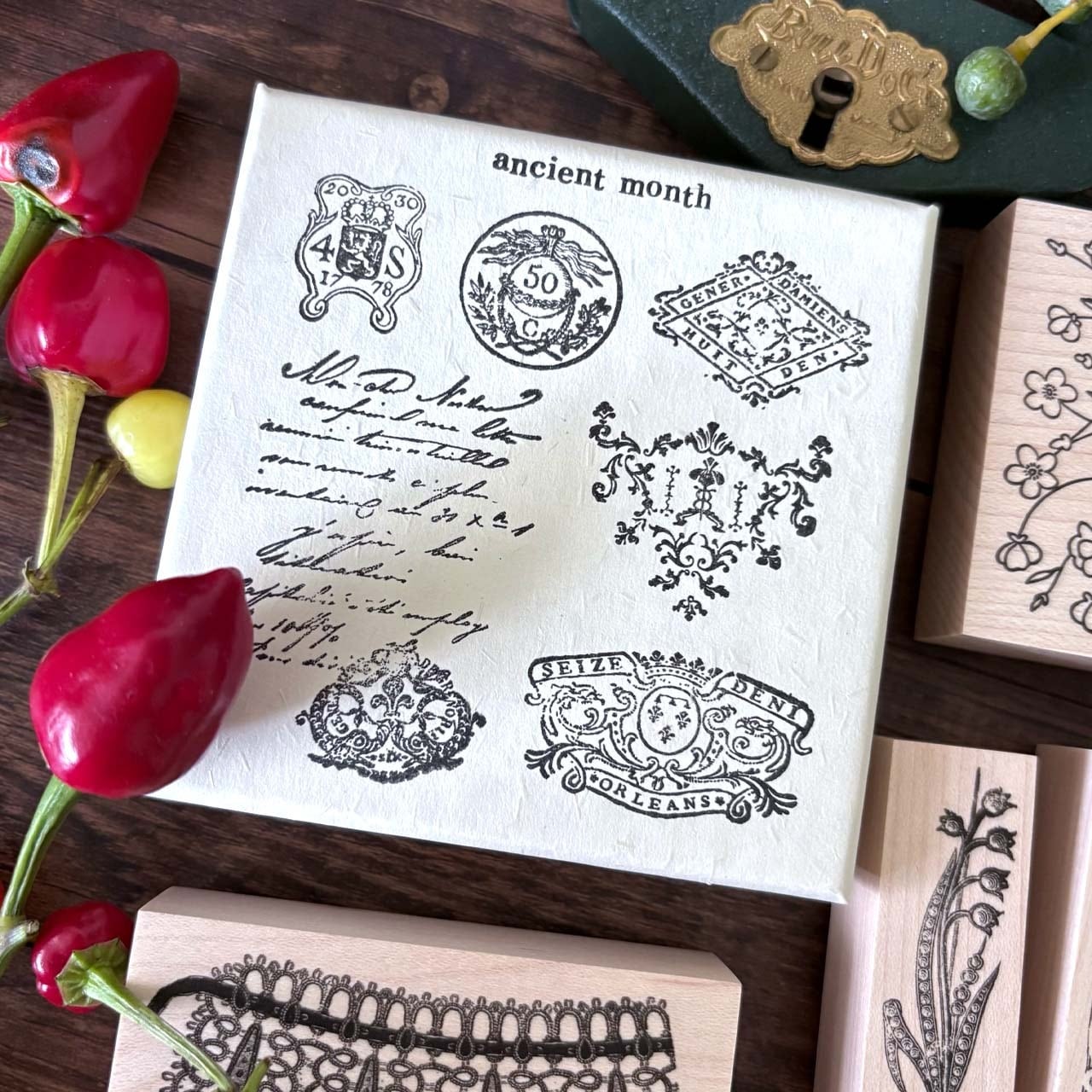 【バラ売り】オリジナルアンティークテキスト公文書スタンプ/ Original antique official documents stamp