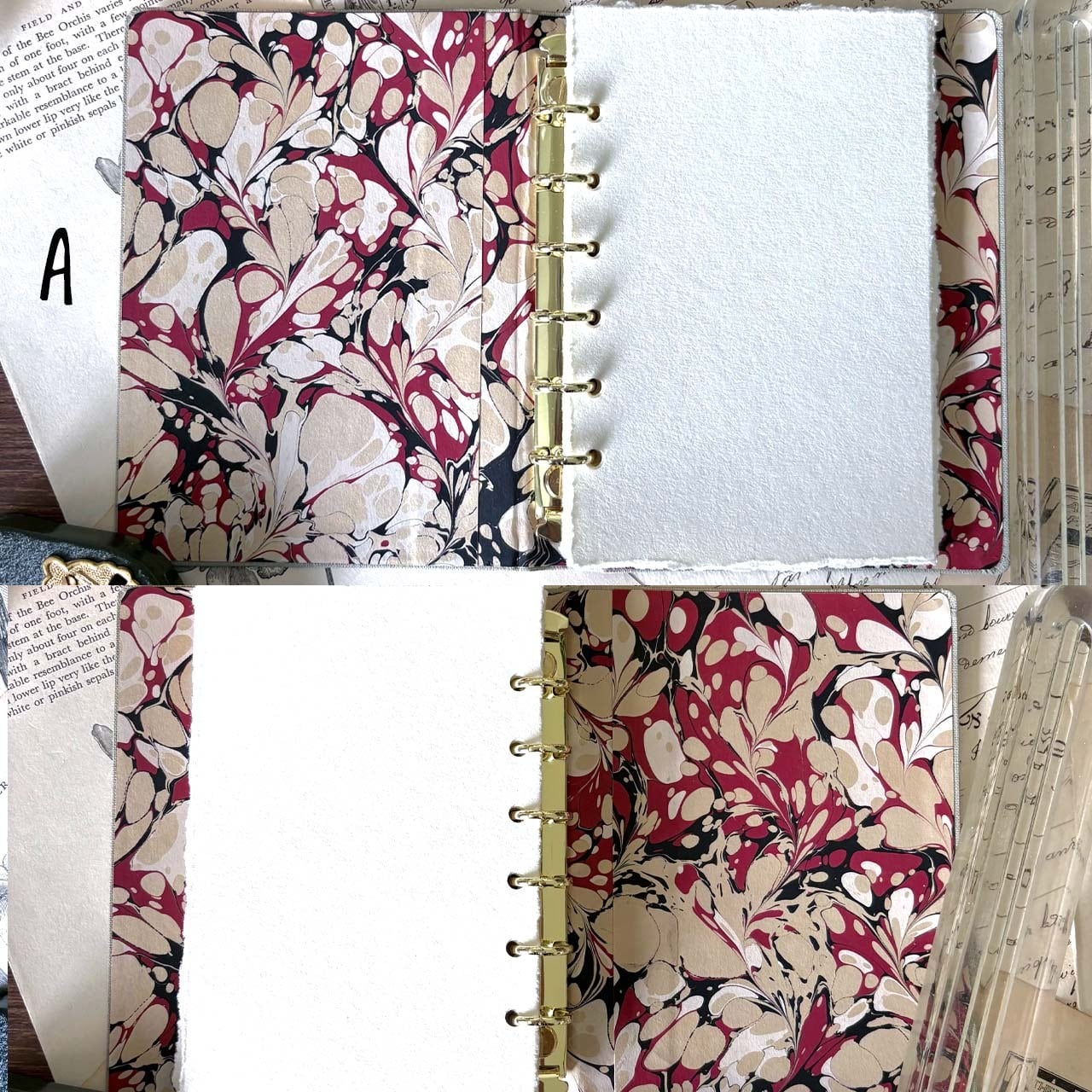 裏地は表紙に合わせて手染めマーブル紙を使用しております。