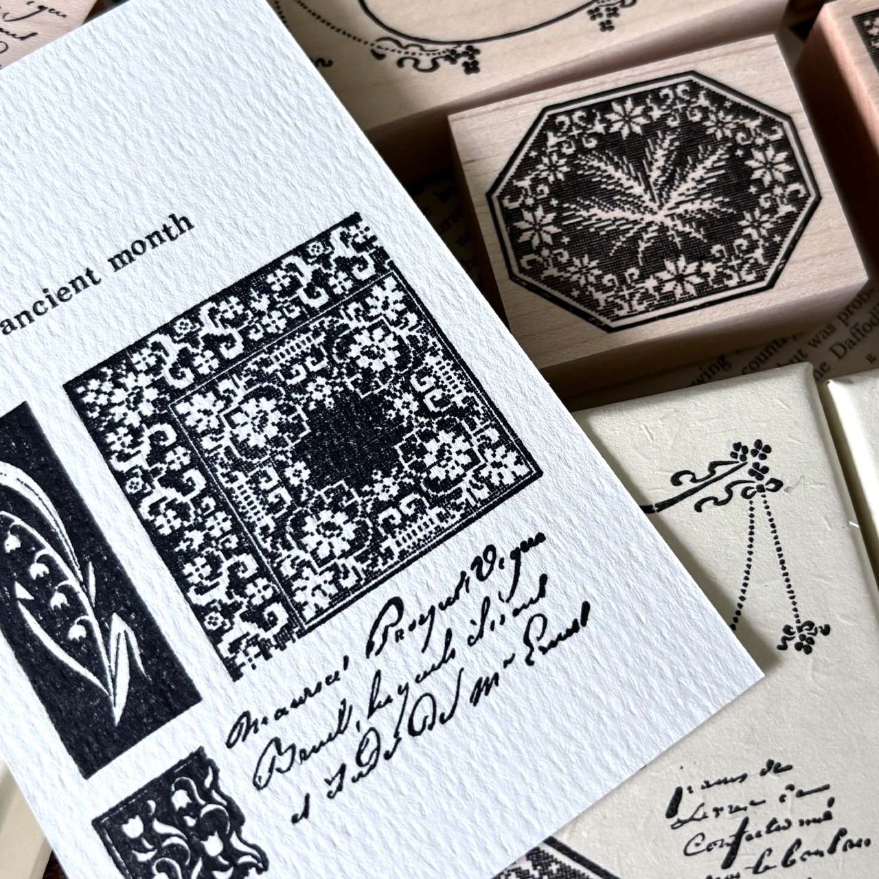 【バラ売り】オリジナルアンティーク四角い刺繍スタンプ / Original antique illustration stamp