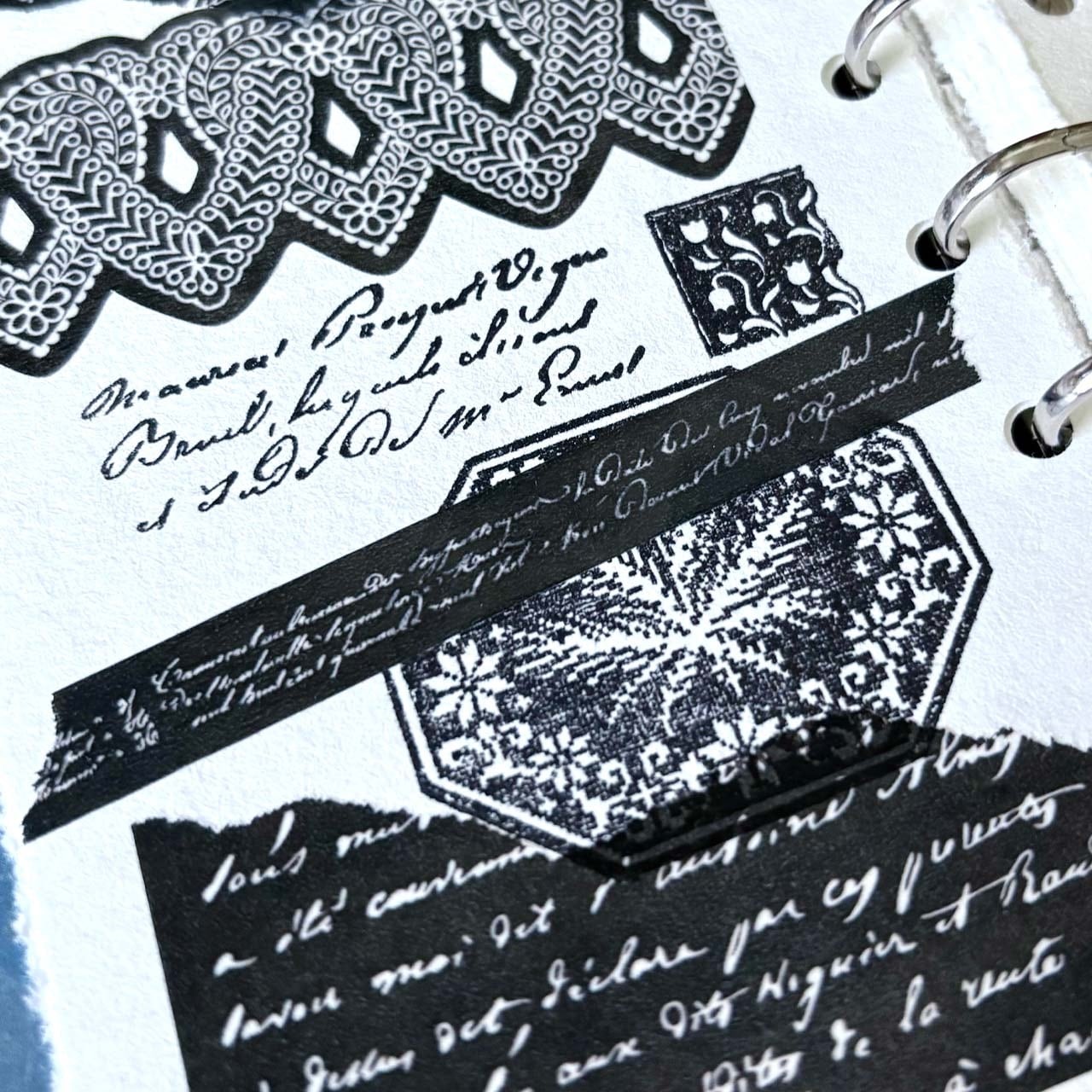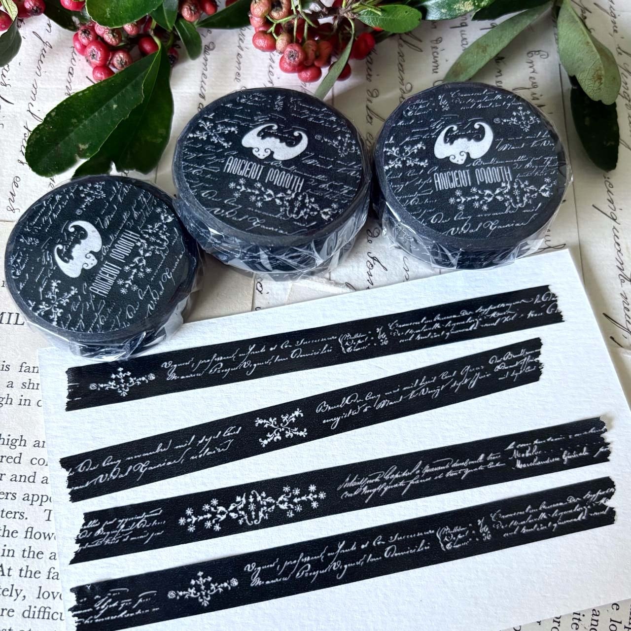 【素材】当店オリジナル アンティーク黒のテキストマスキングテープ 幅1cm / Store original Antique Black Text Masking Tape
