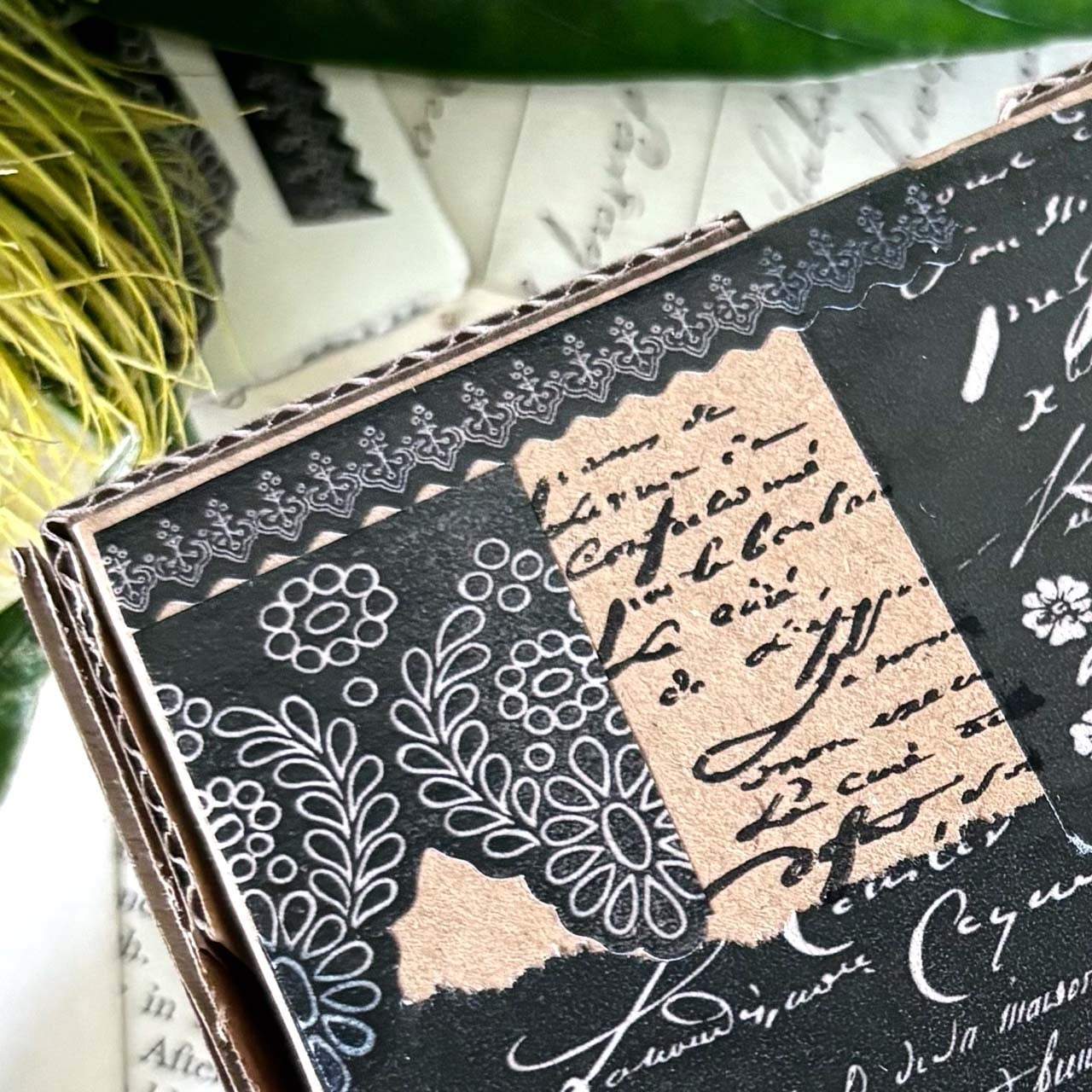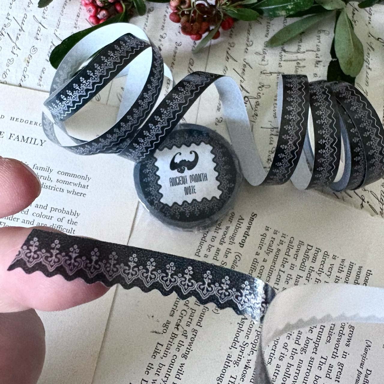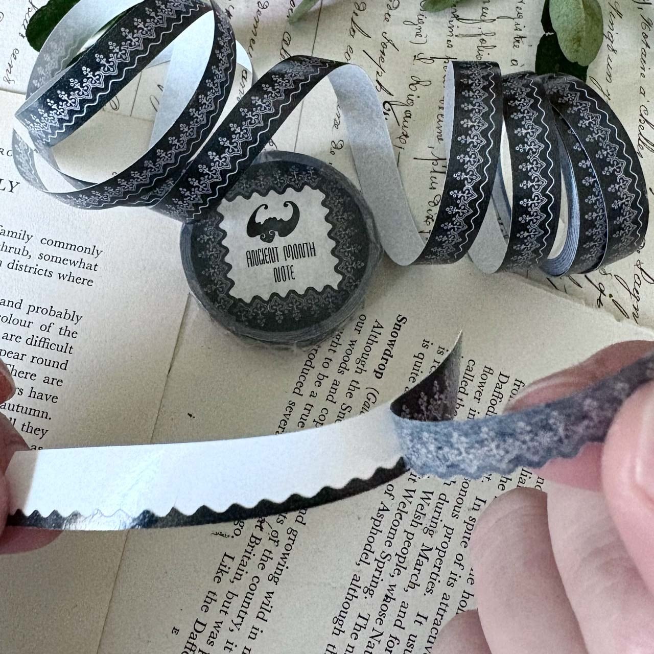 【素材】当店オリジナル 1cm幅 アンティーク黒の飾り模様シールカットマスキングテープ / Store original Antique Black lace seal cut Masking Tape