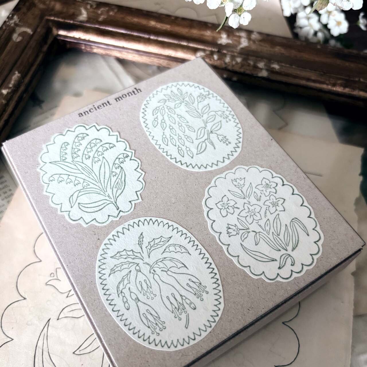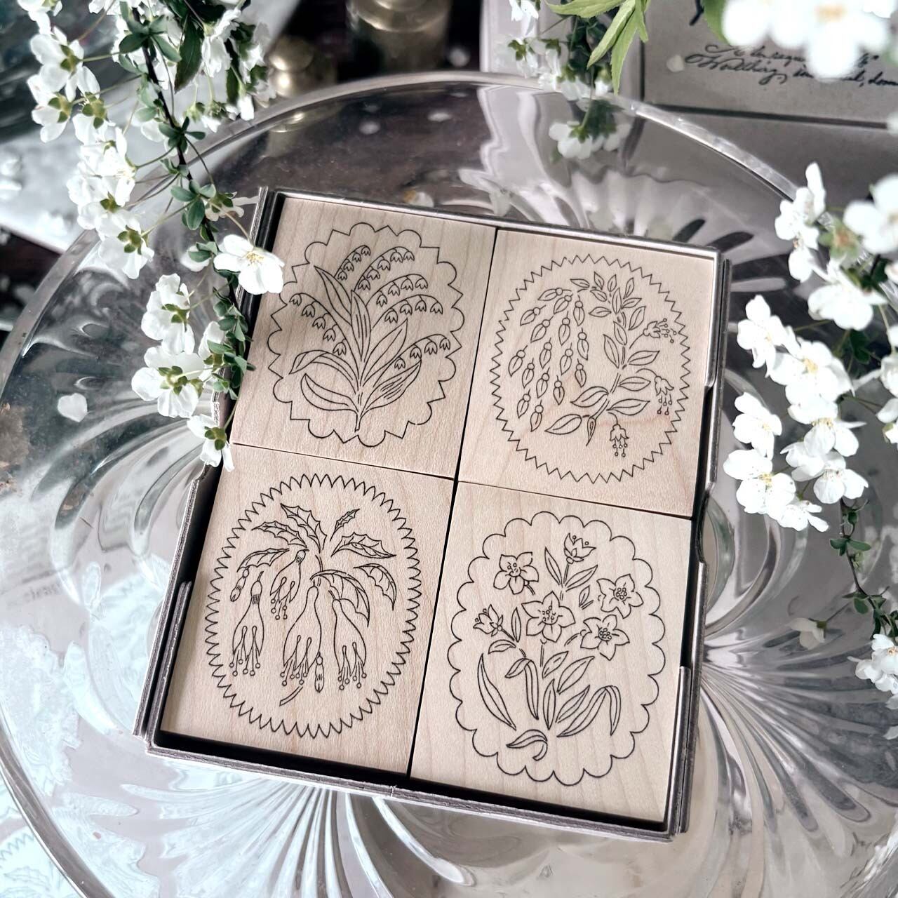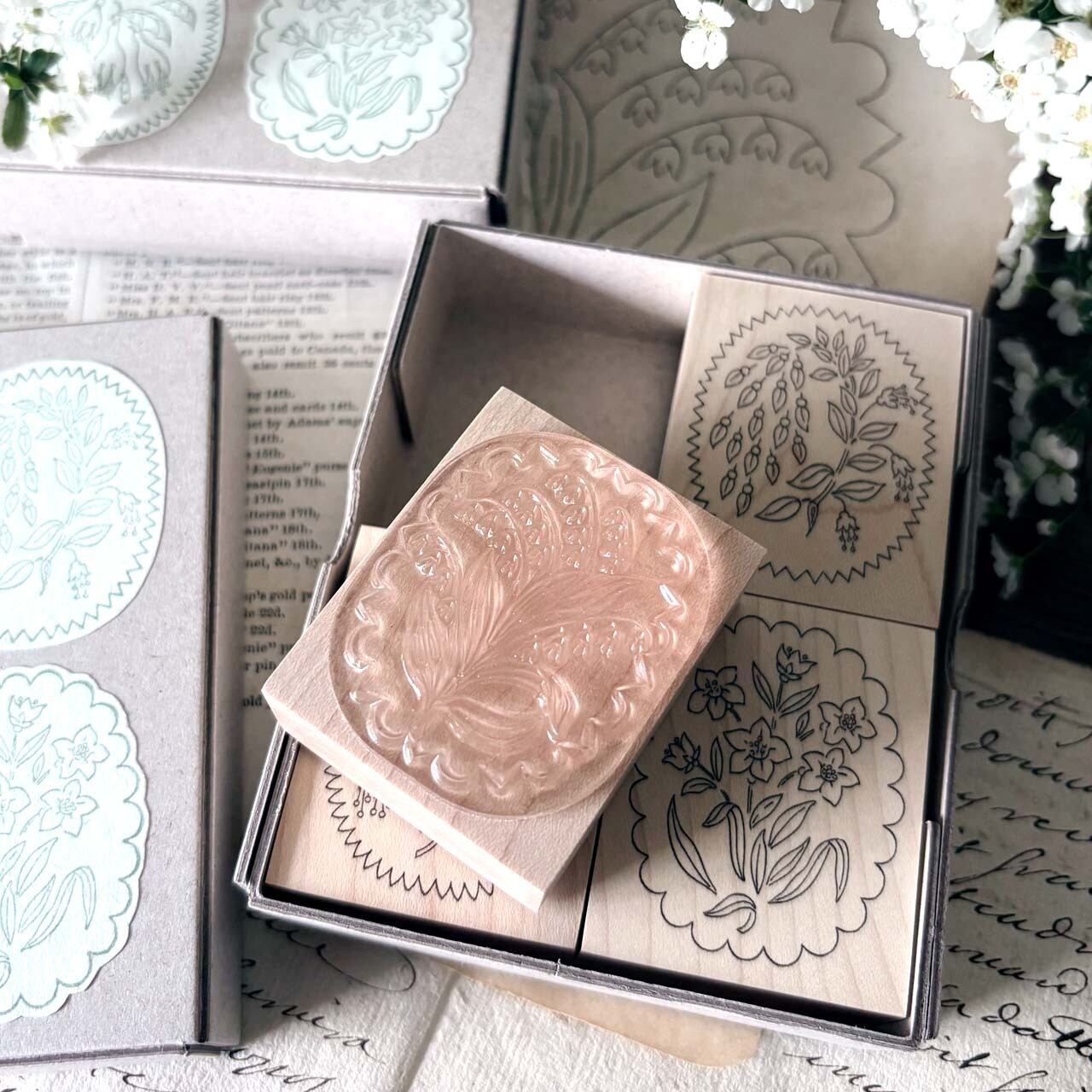 【セット】アンティークランプシェード花模様スタンプ セット / antique Lampshade illustration stamp set