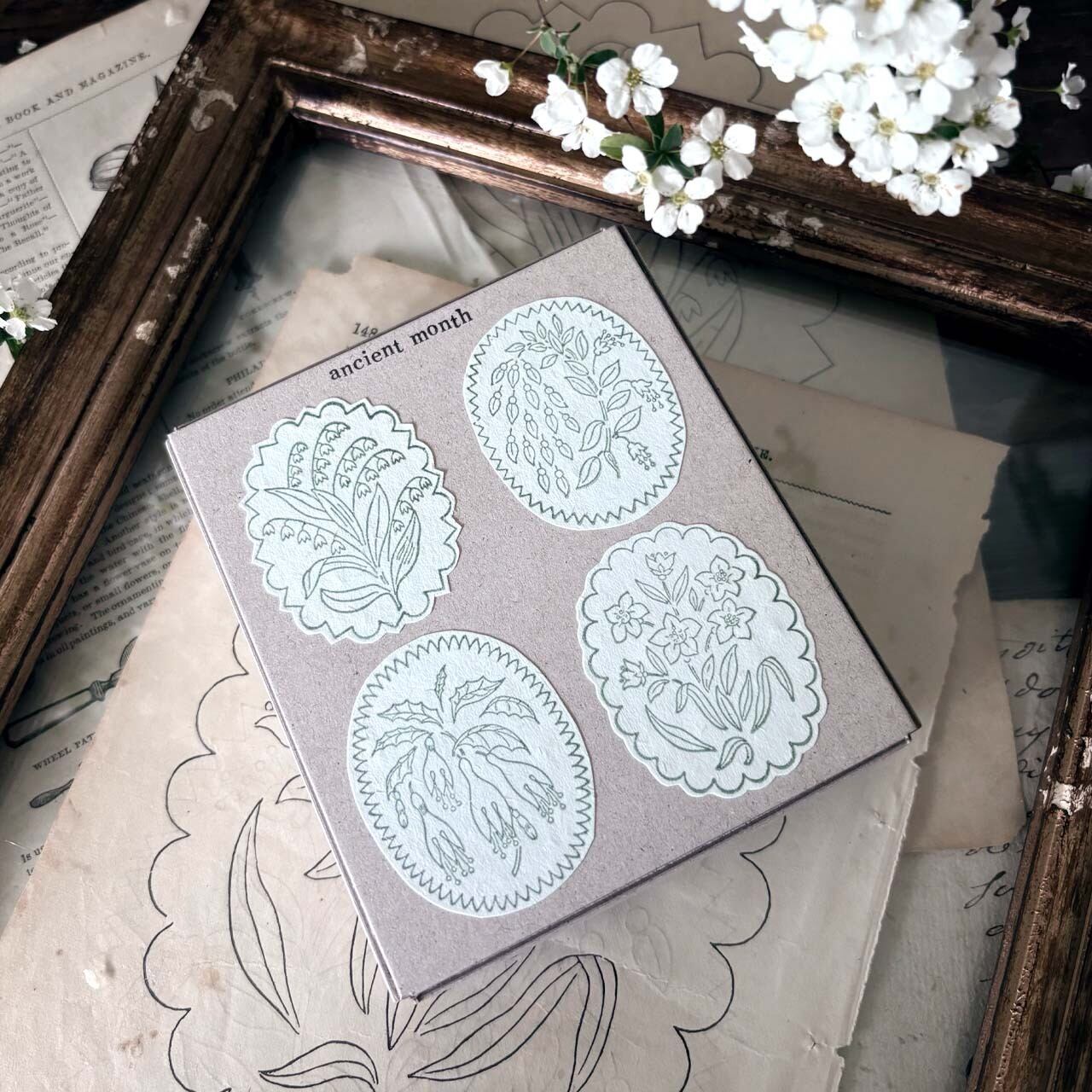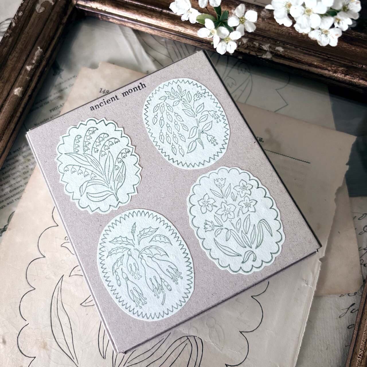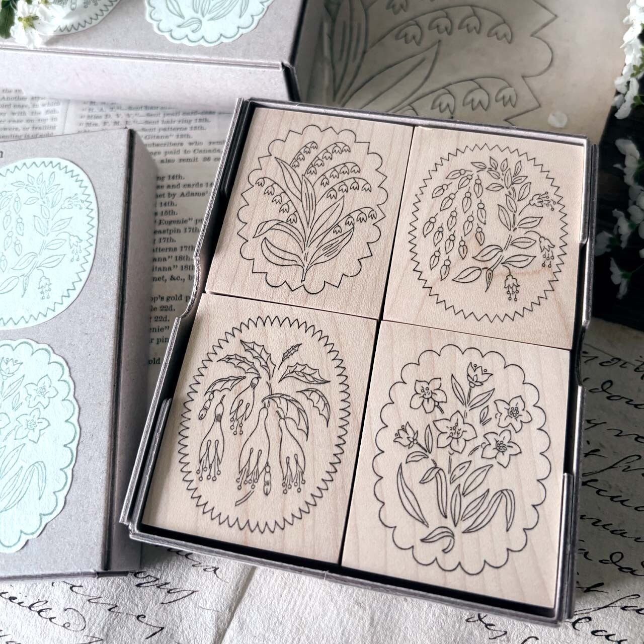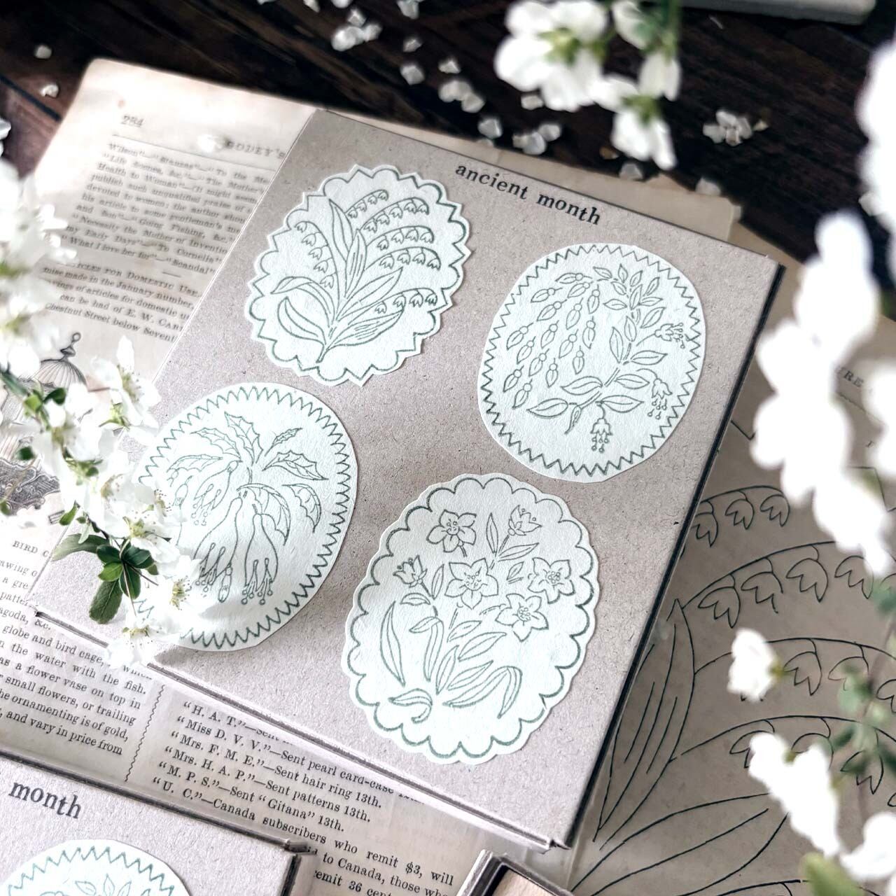 【セット】アンティークランプシェード花模様スタンプ セット / antique Lampshade illustration stamp set