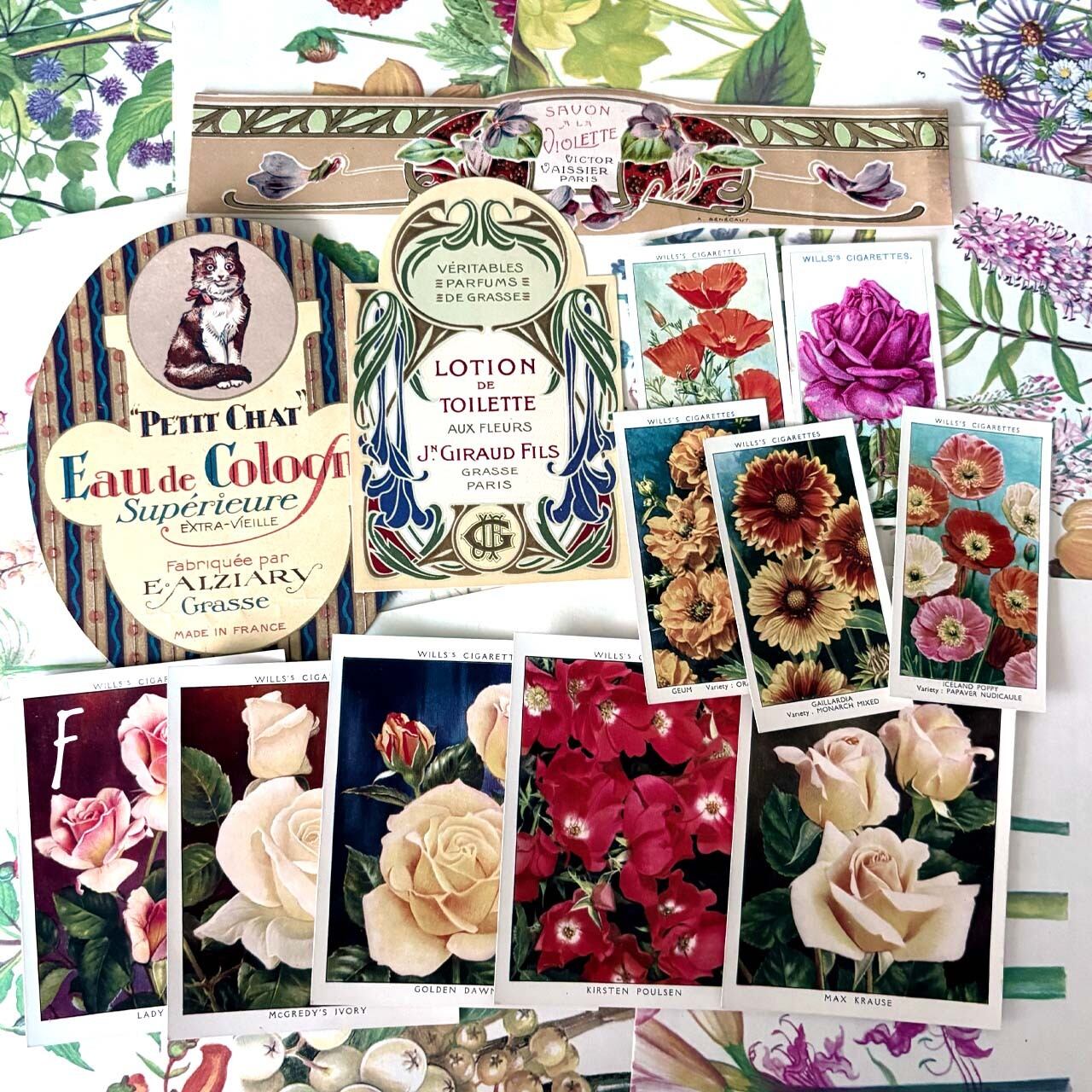 アンティーク、ヴィンテージ植物図鑑や図鑑、洋書から切り取った素材を集めました。