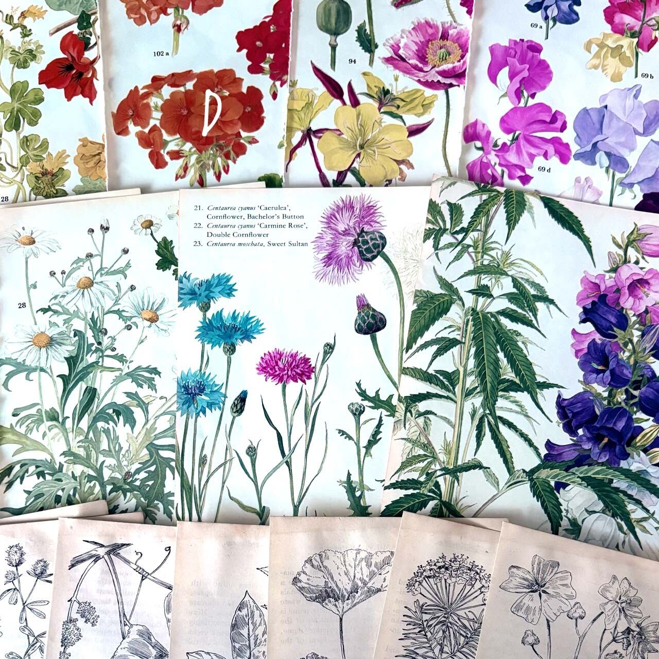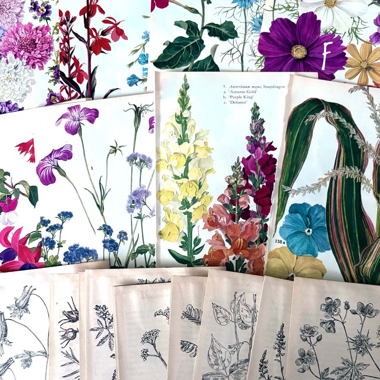 各セット:ヴィンテージ植物図鑑のカラーページ 約30枚