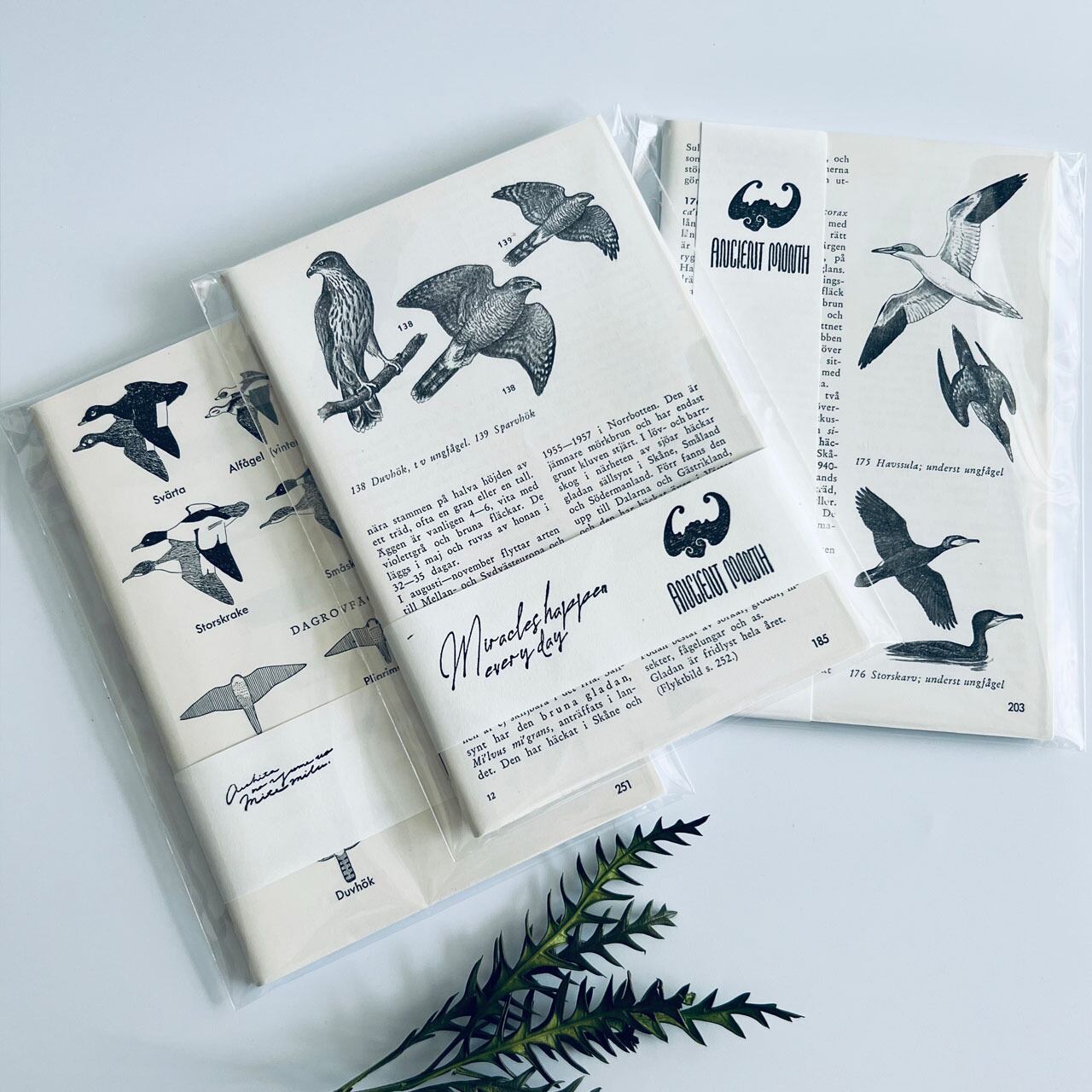アンティーク鳥類専門書をリメイクしたミドルサイズのノートブックです。