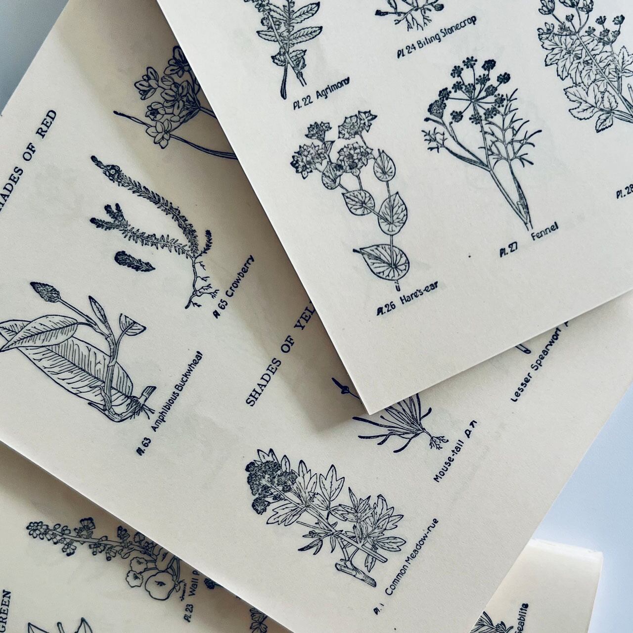 裏表4面にびっしりと可愛らしい植物が描かれています。
