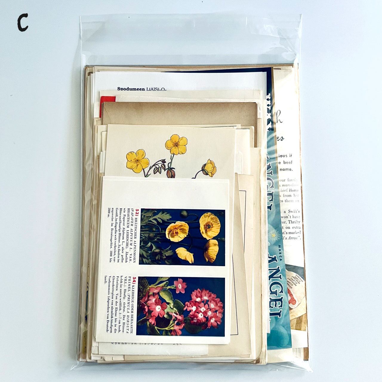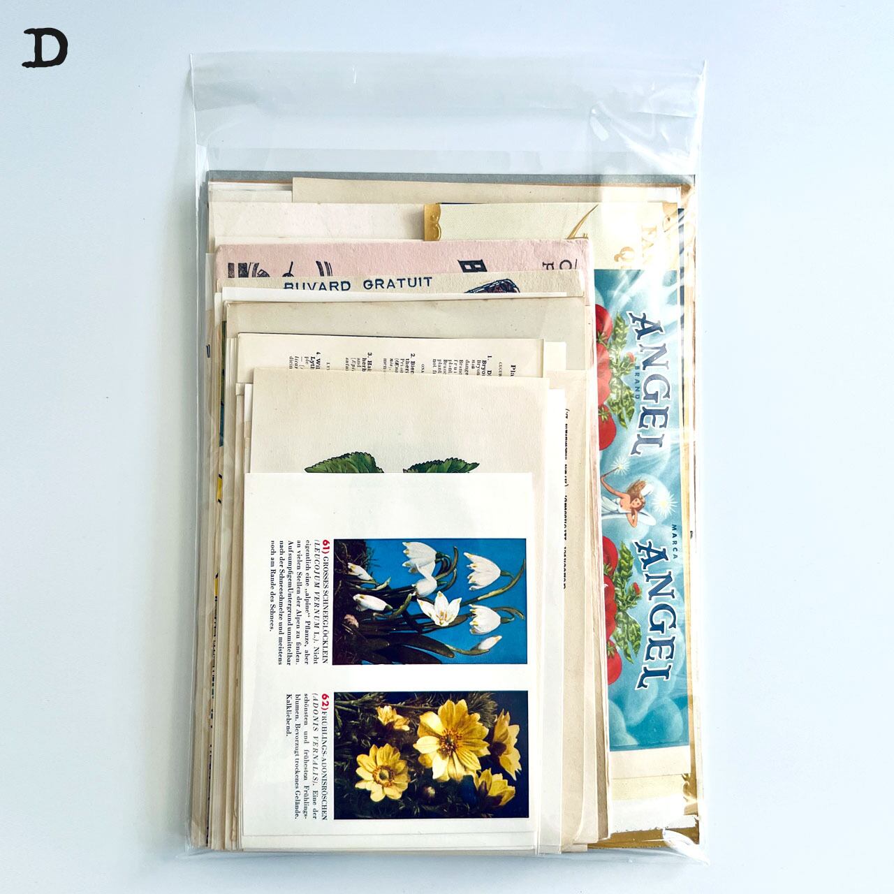 中には一枚で数千円するものや、珍しいものも入っているので、クラフトやコラージュ、お裾分けファイルの制作などにご活躍できるかと思います。
