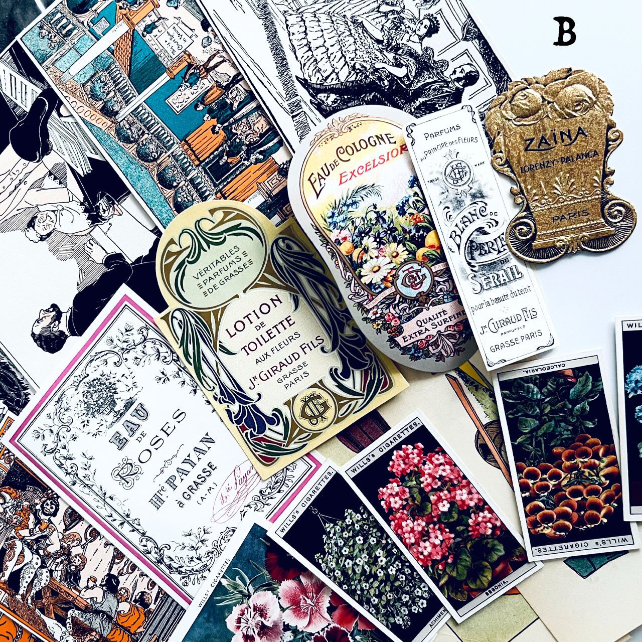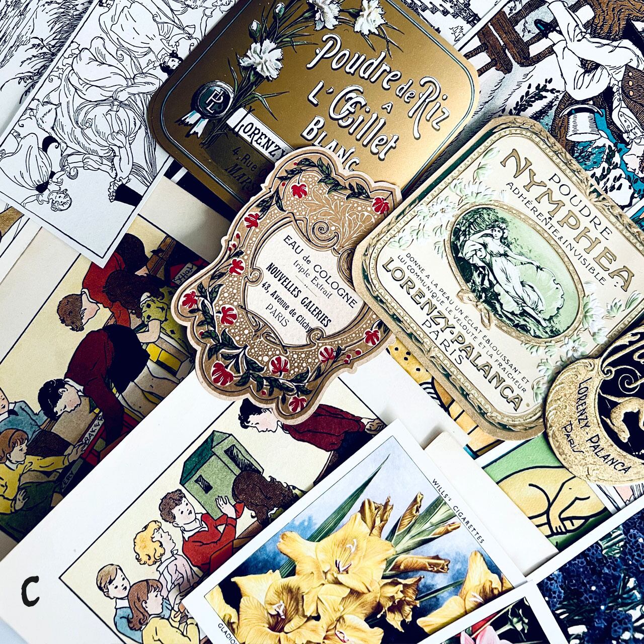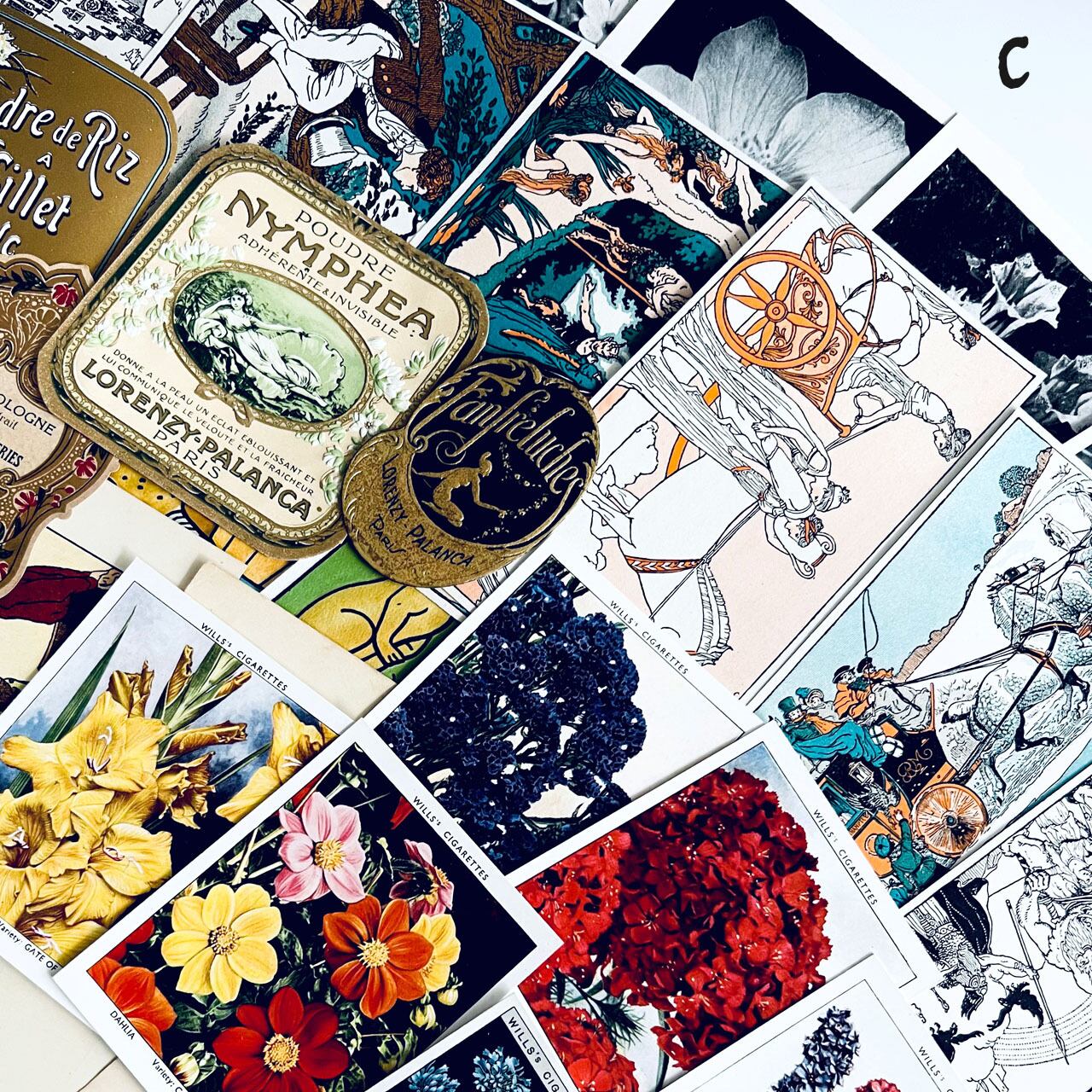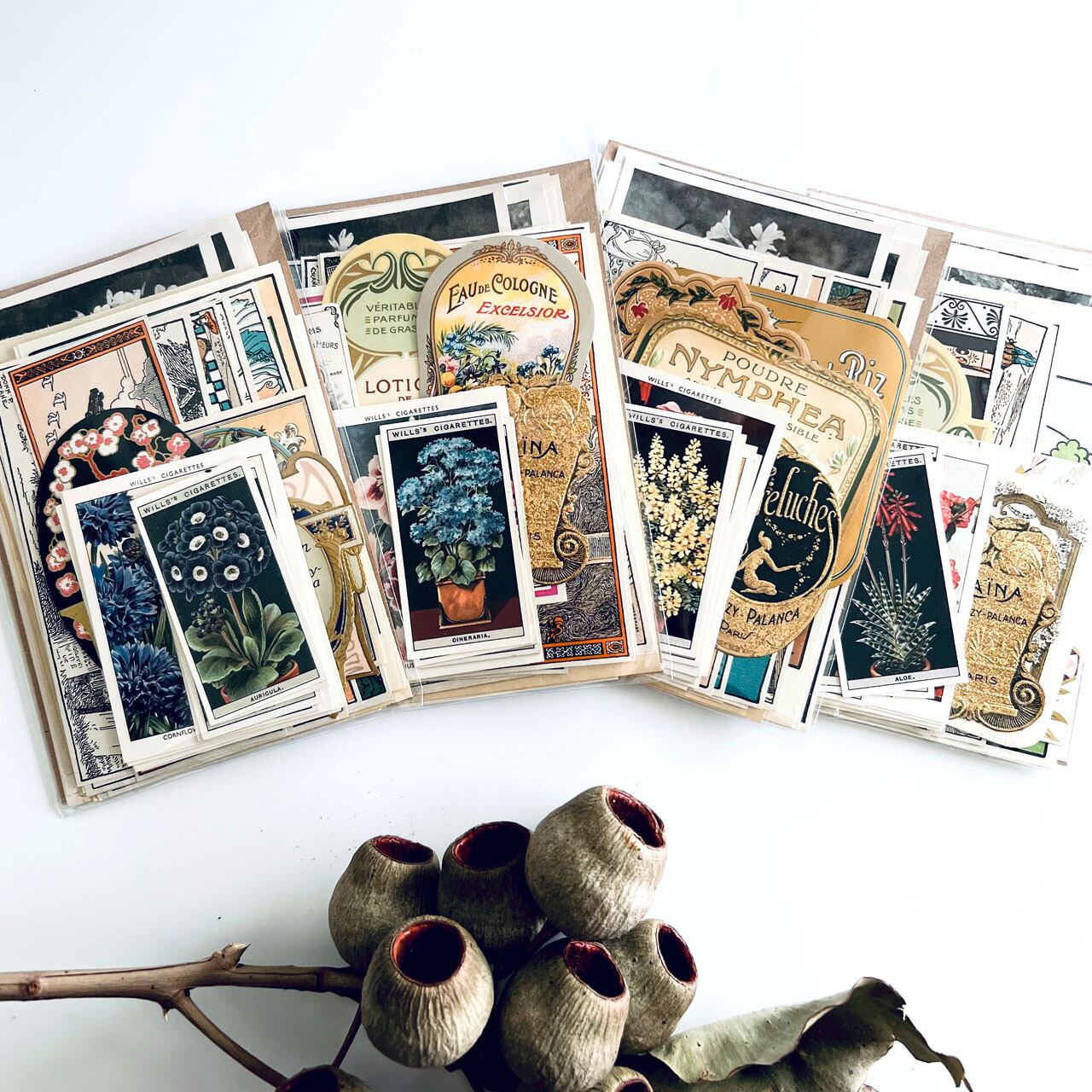 中には一枚で数千円するものや、珍しいものも入っているので、クラフトやコラージュ、お裾分けファイルの制作などにご活躍できるかと思います。