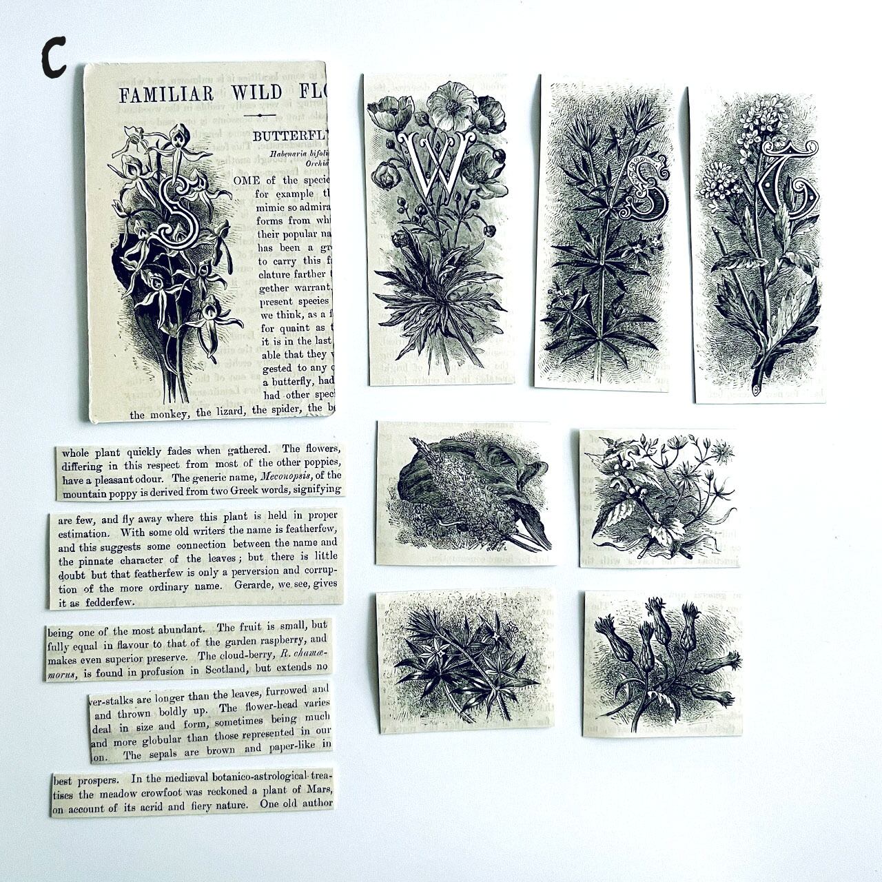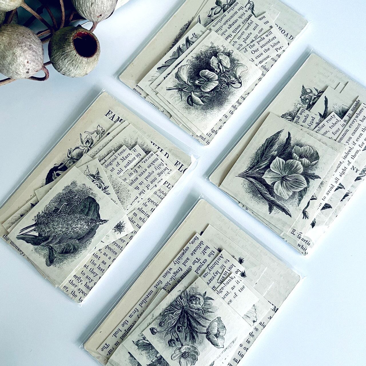 【素材】アンティーク植物素材 ステッカーセット / antique botanical materials sticker set