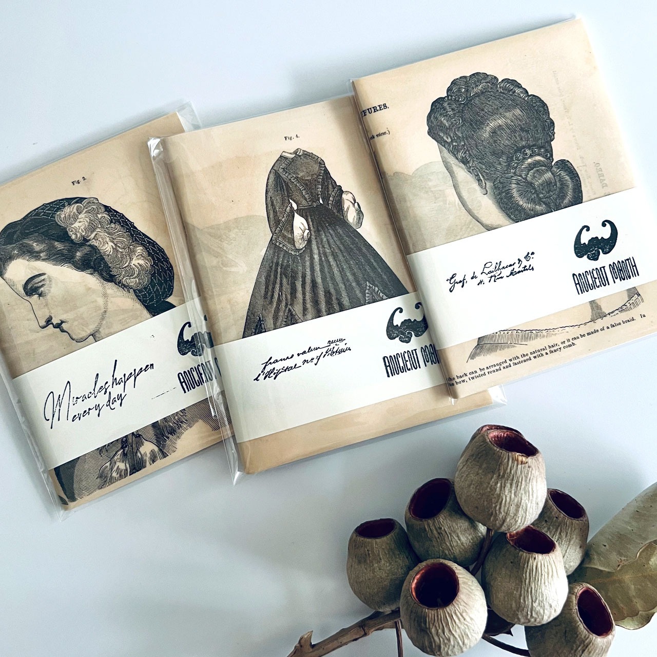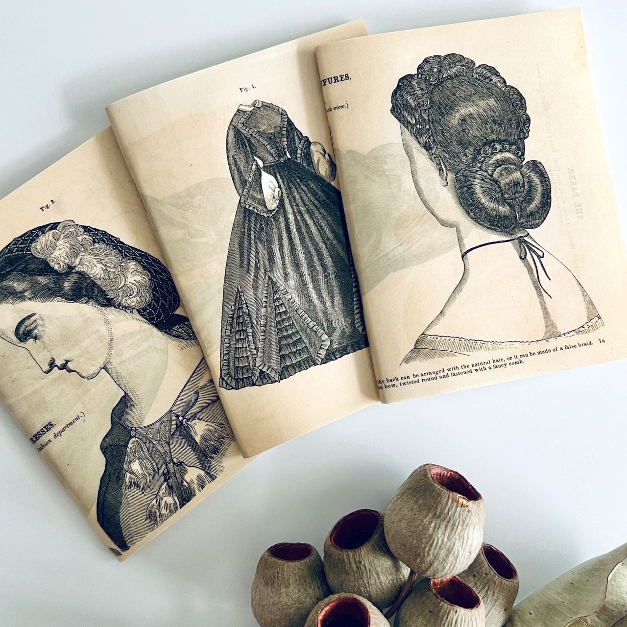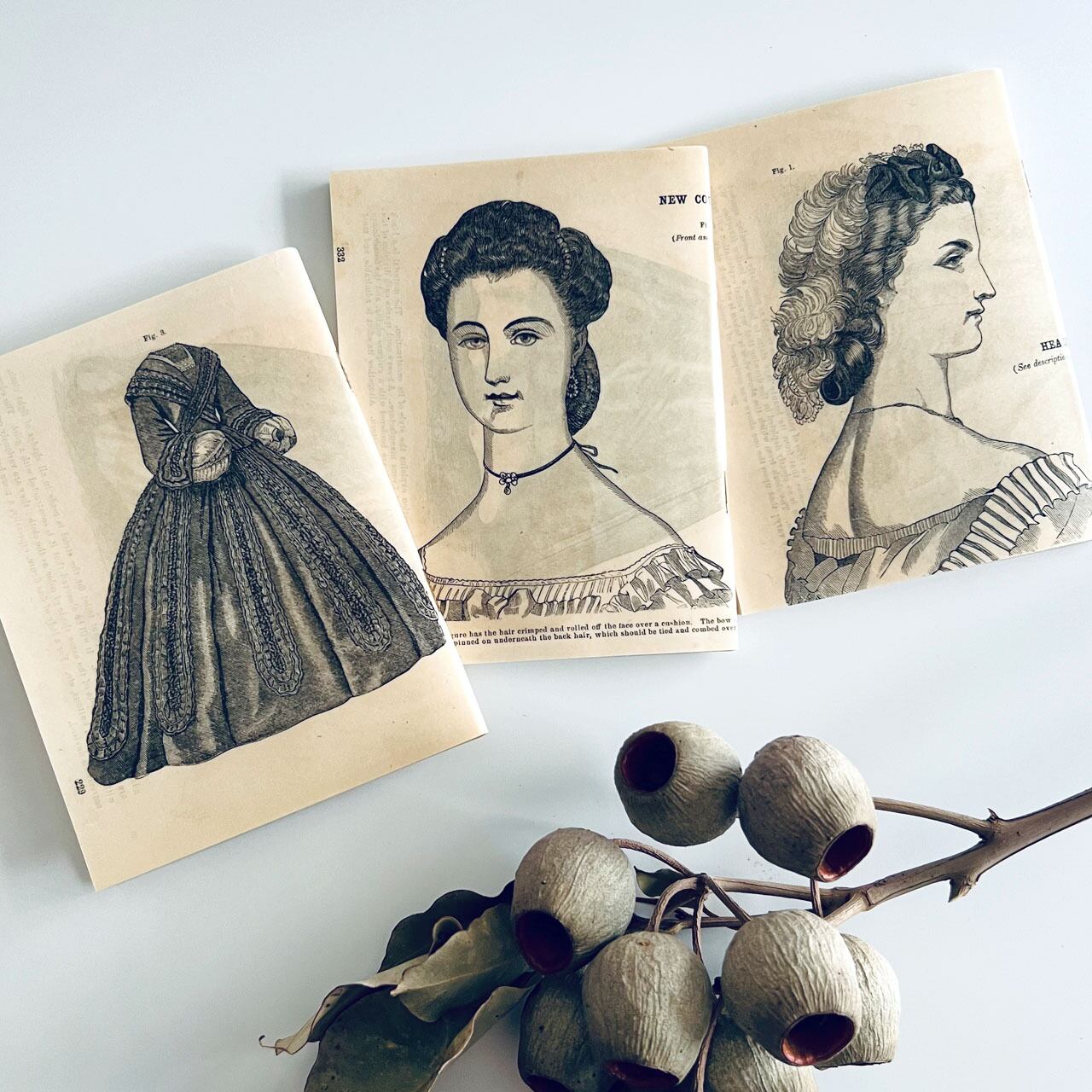 今から100年以上前のヴィクトリアン時代のファッション誌の挿絵ページをカバーにリメイクしました。