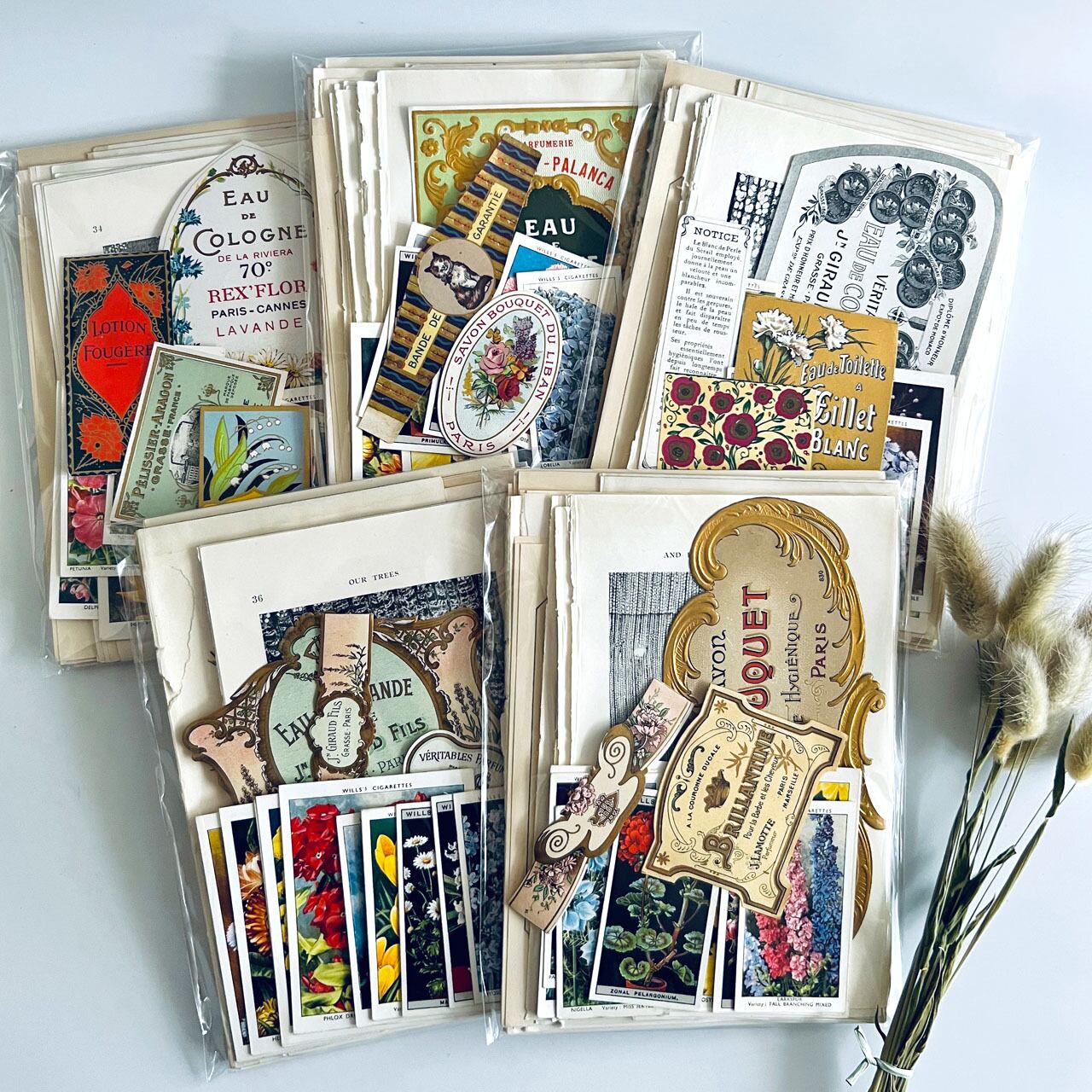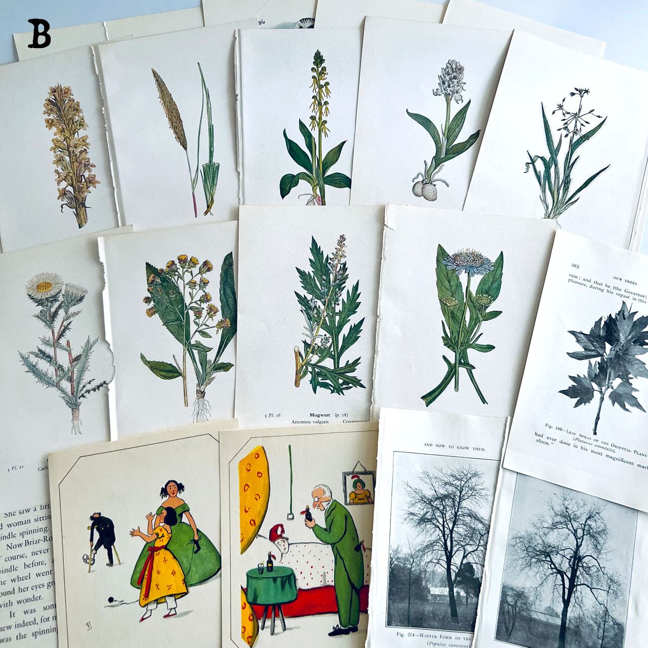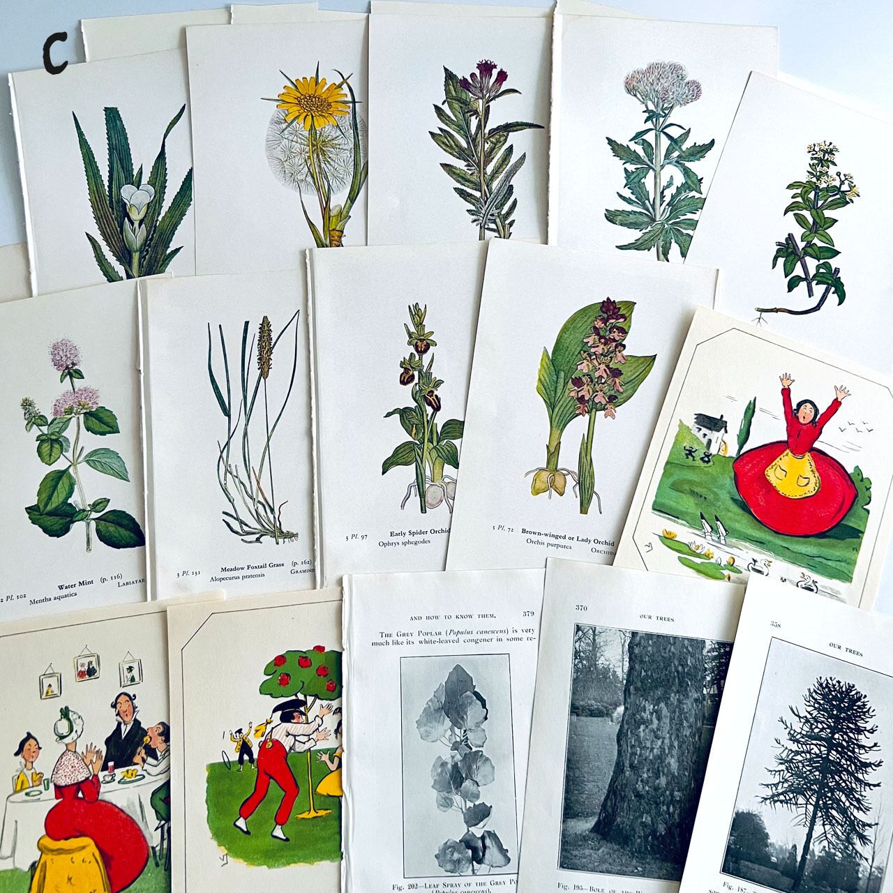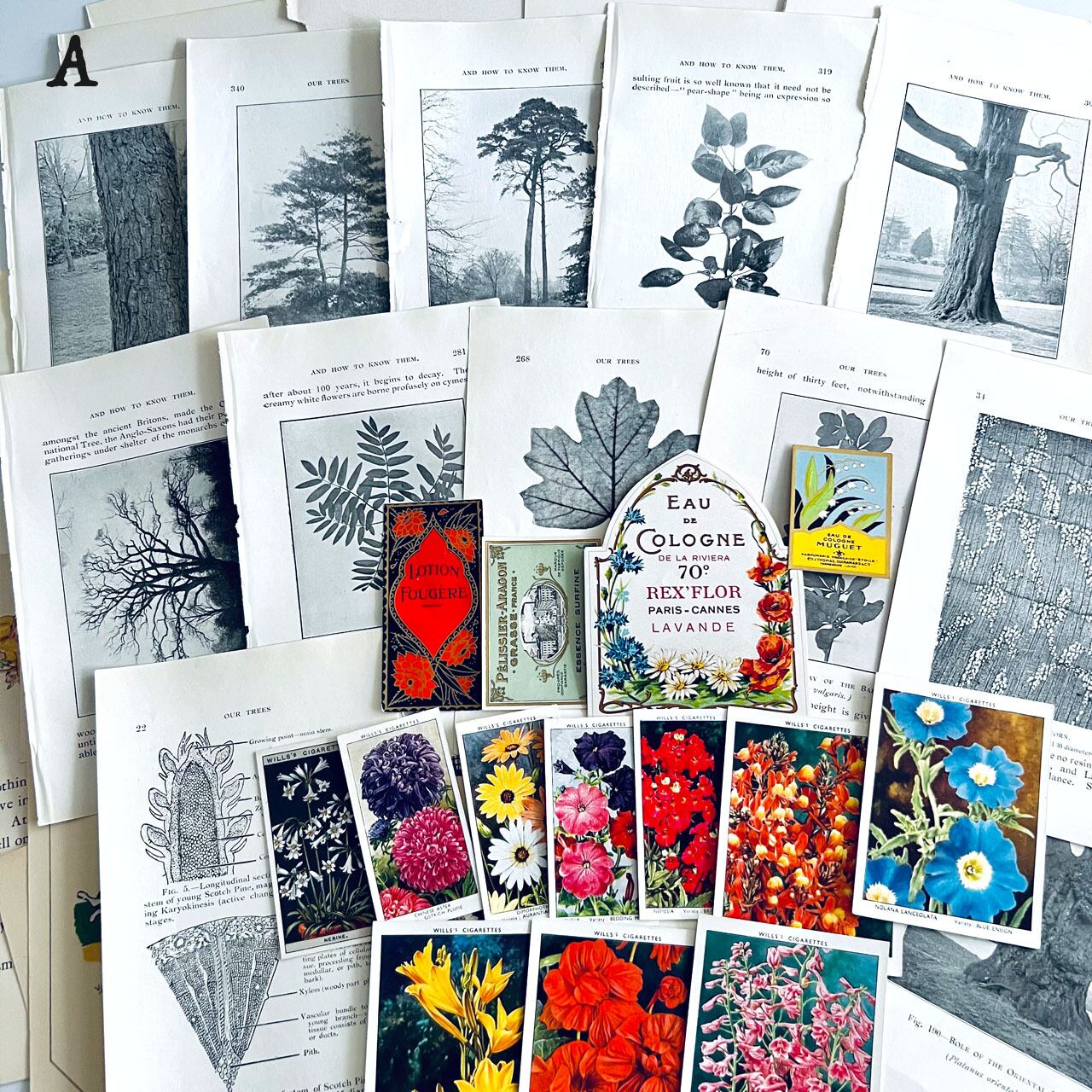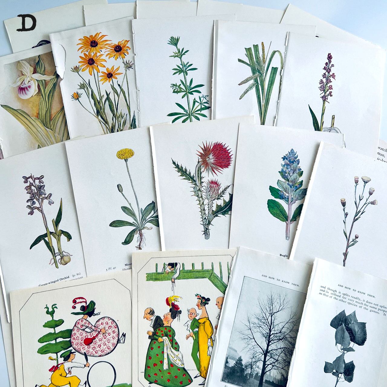 100年以上前のアンティーク、ヴィンテージ植物図鑑や児童書から切り取った素材を集めました。