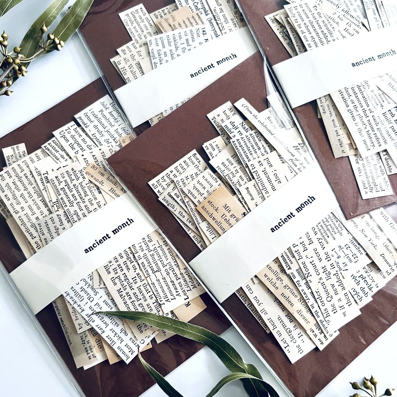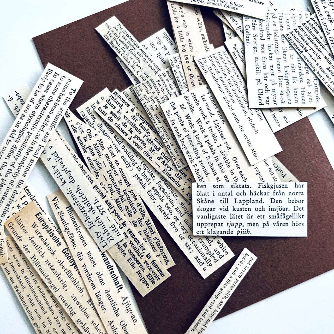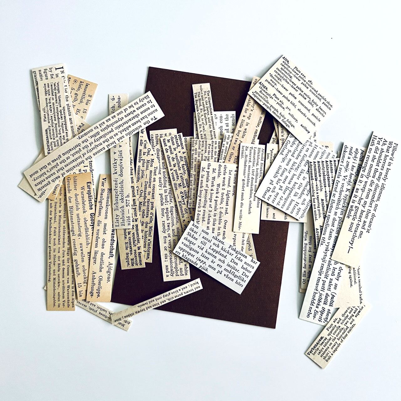 1900年前後のアンティーク洋書や辞書、色々な古書からテキストを切り取りました。