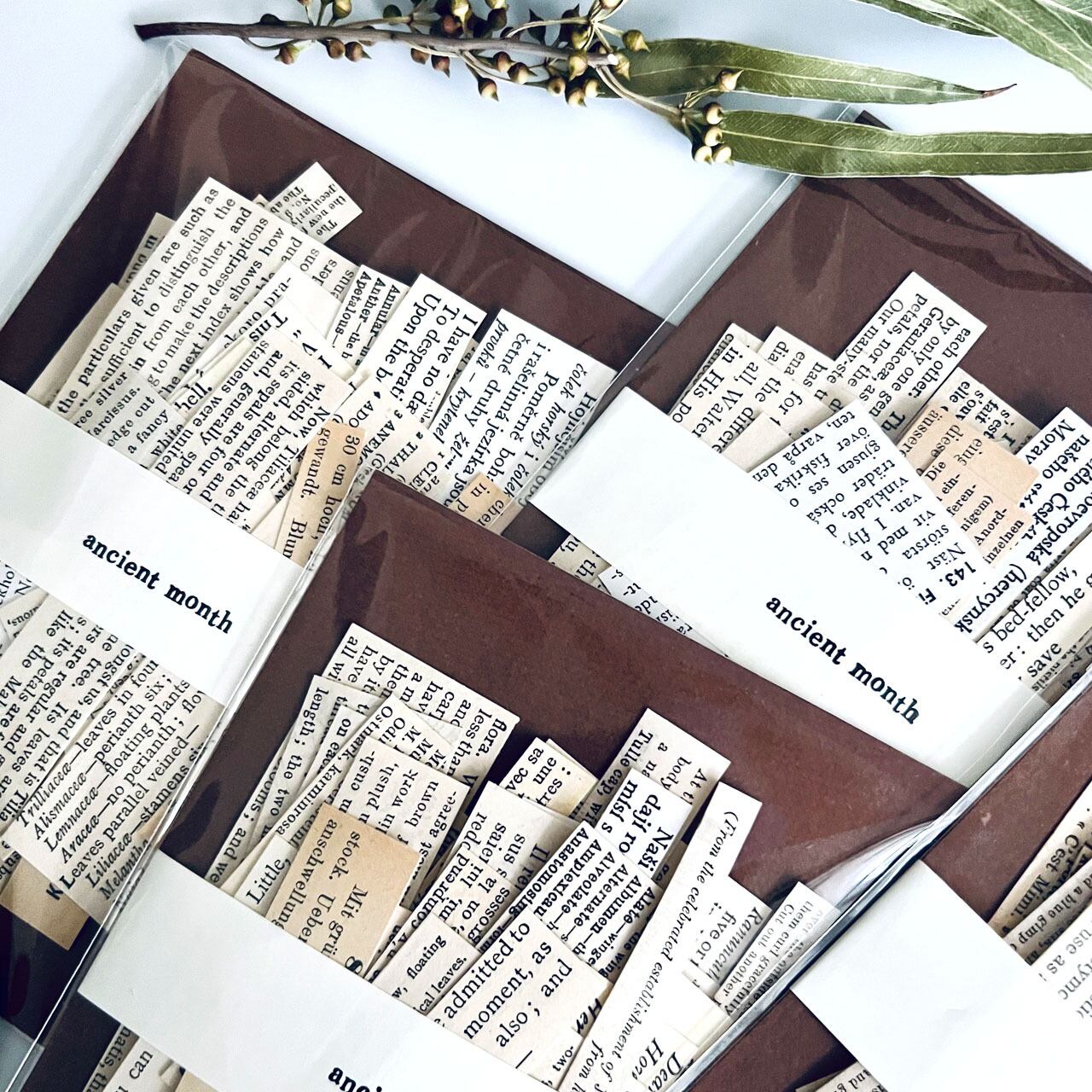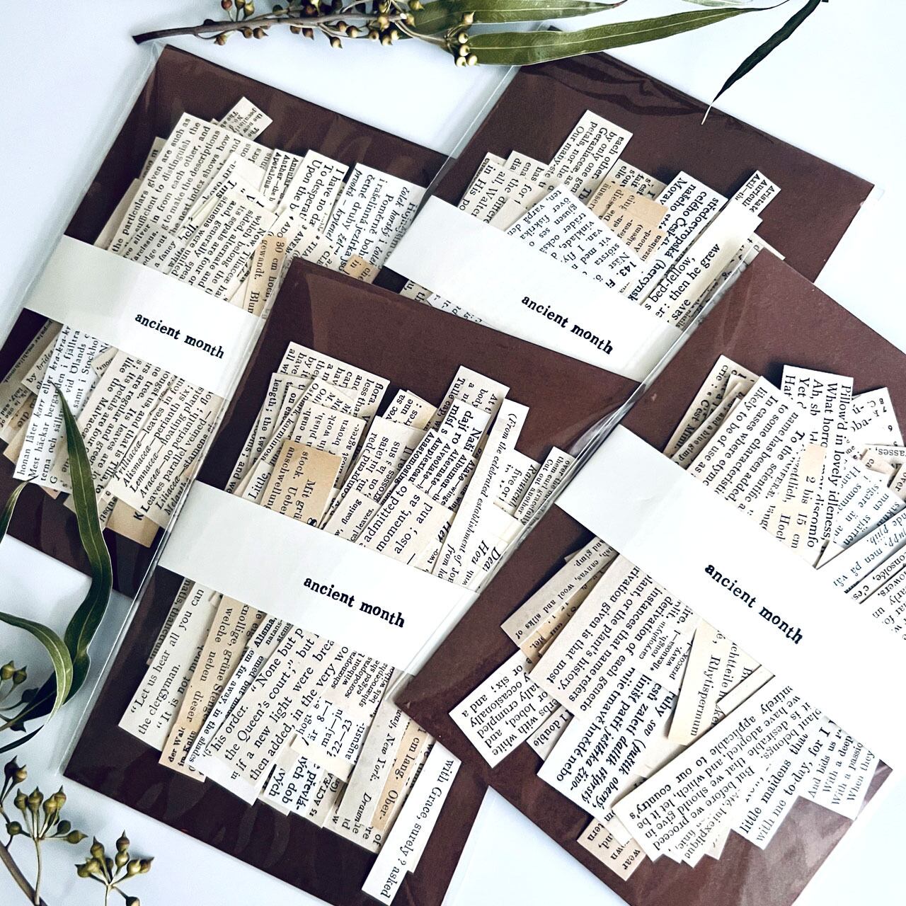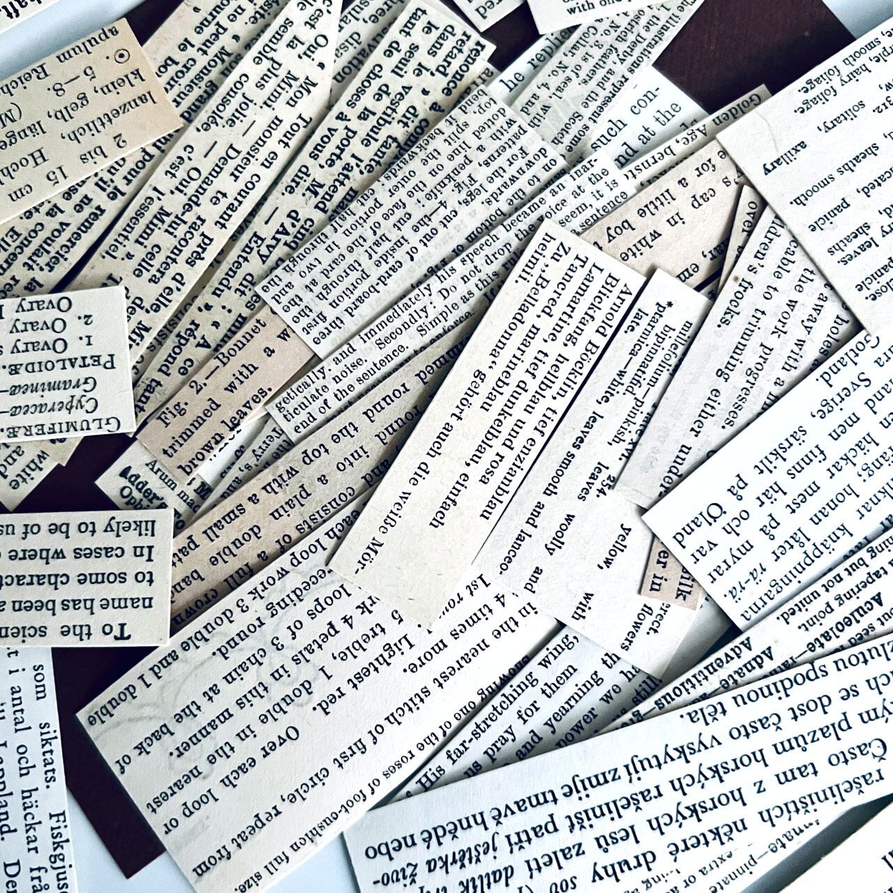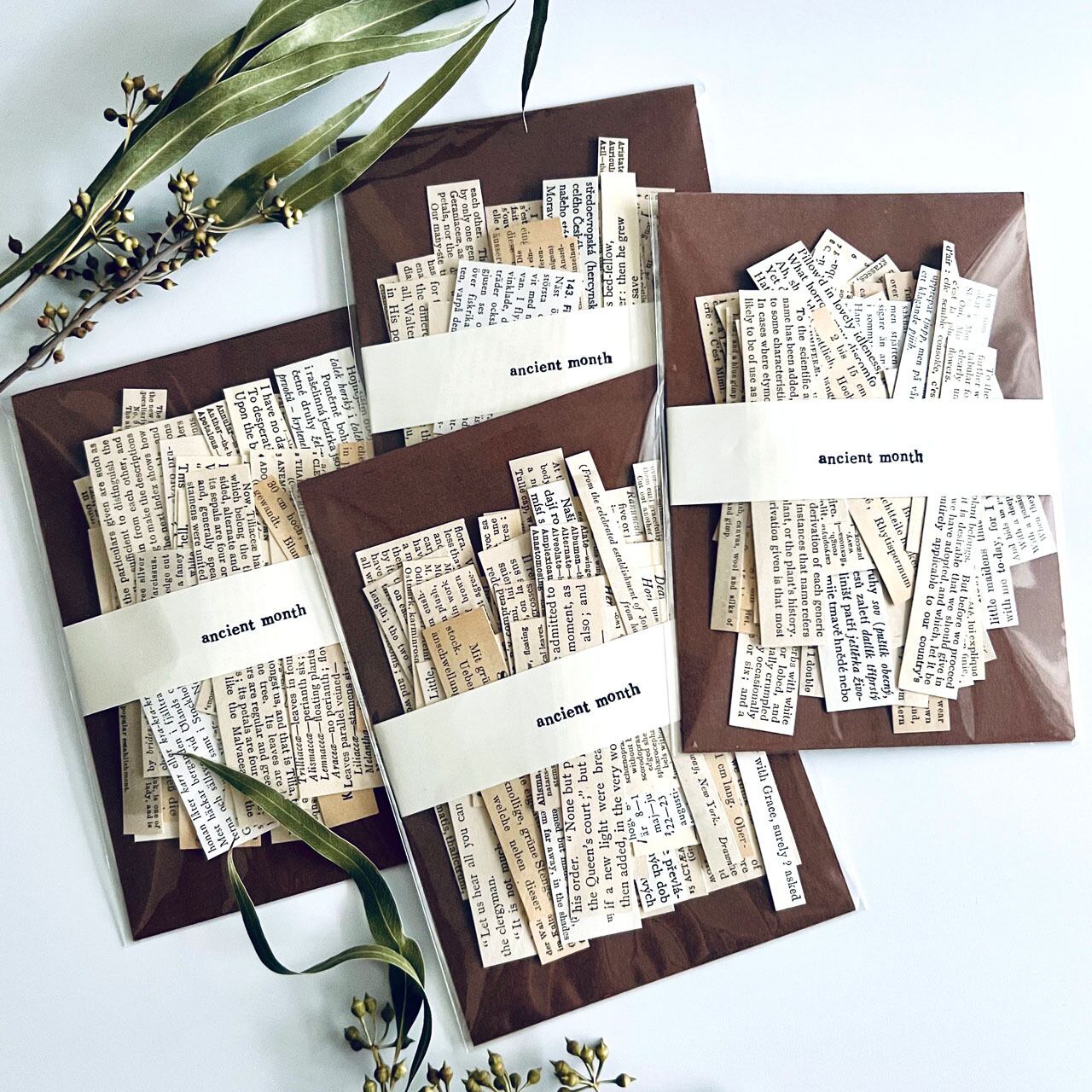 1900年前後のアンティーク洋書や辞書、色々な古書からテキストを切り取りました。