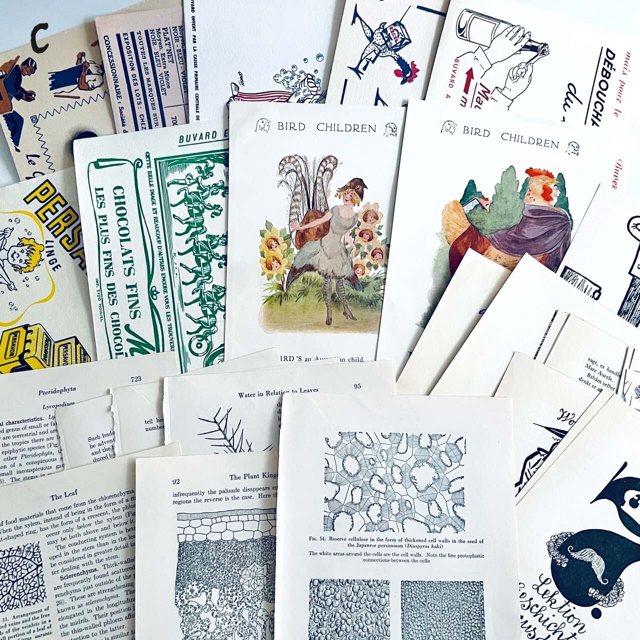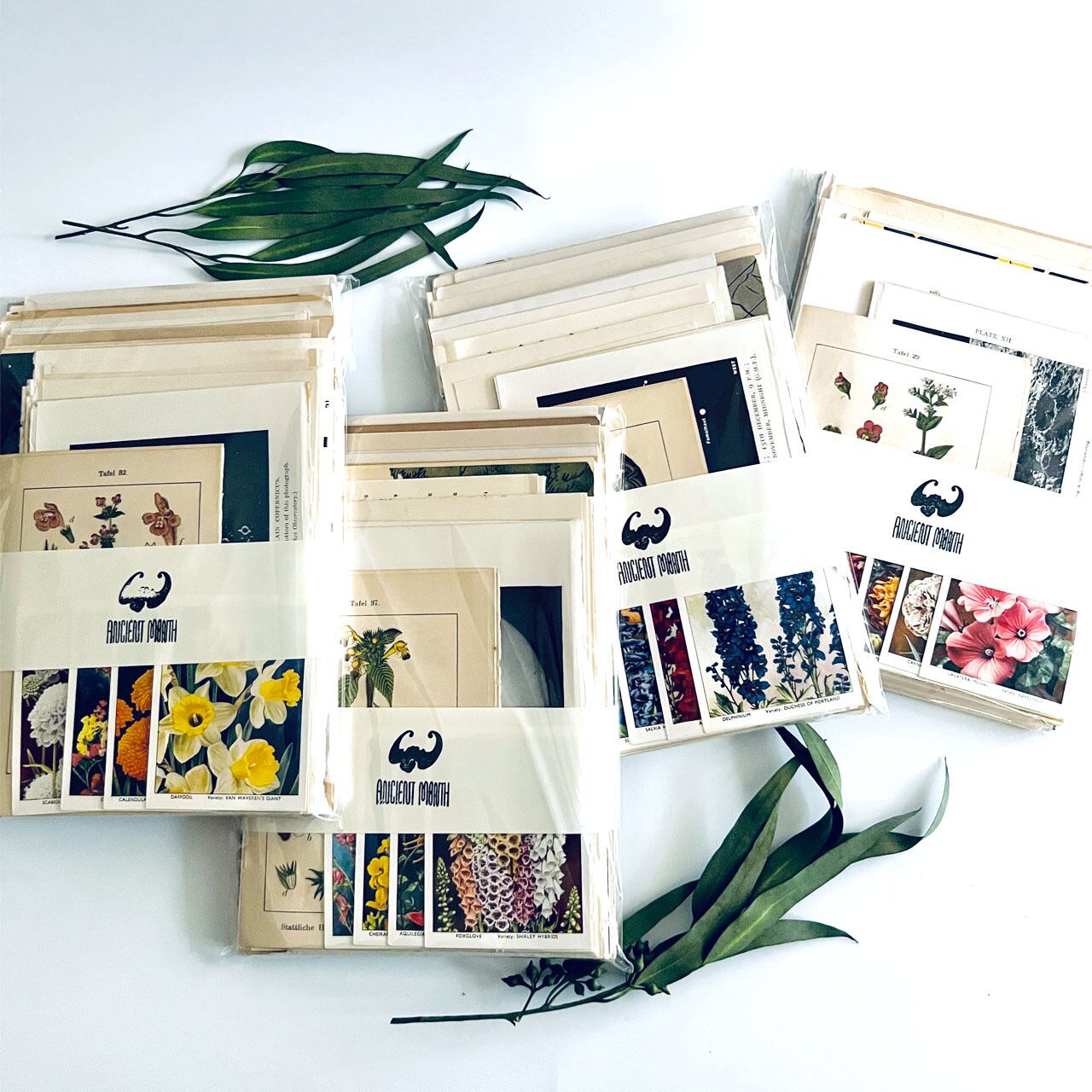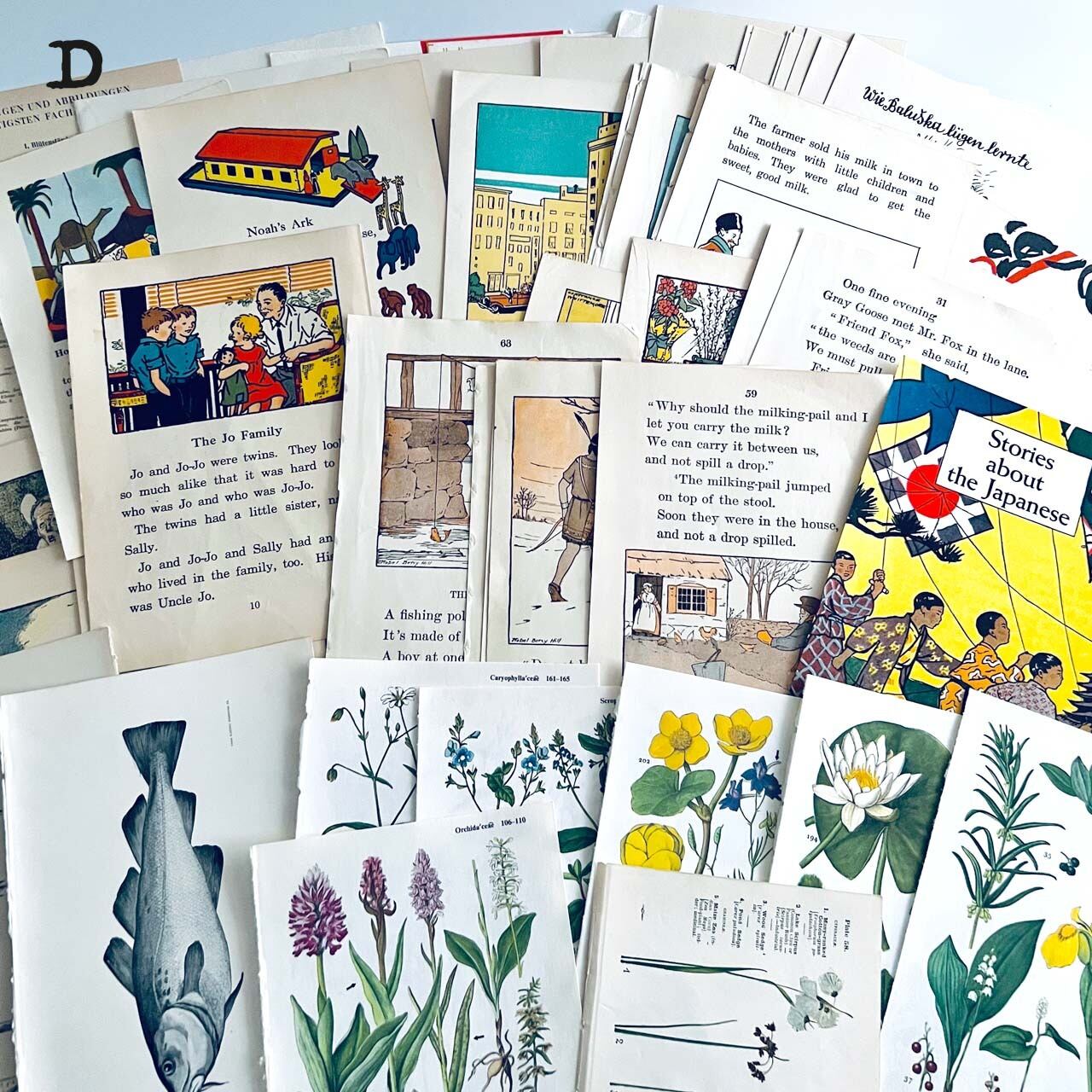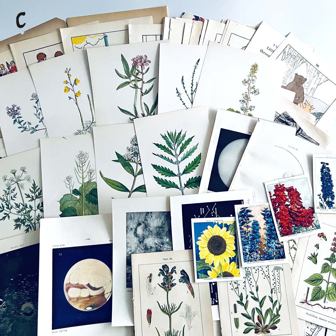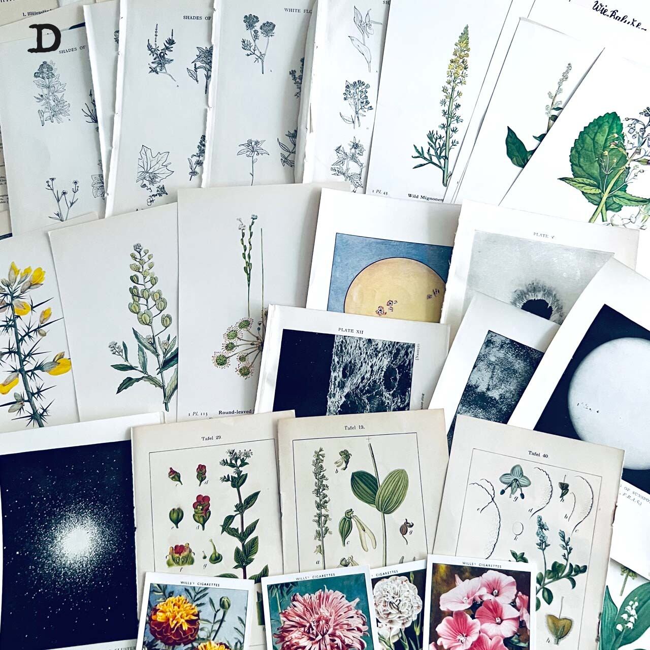100年以上前のアンティーク、ヴィンテージ植物図鑑や児童書から切り取った素材を集めました。