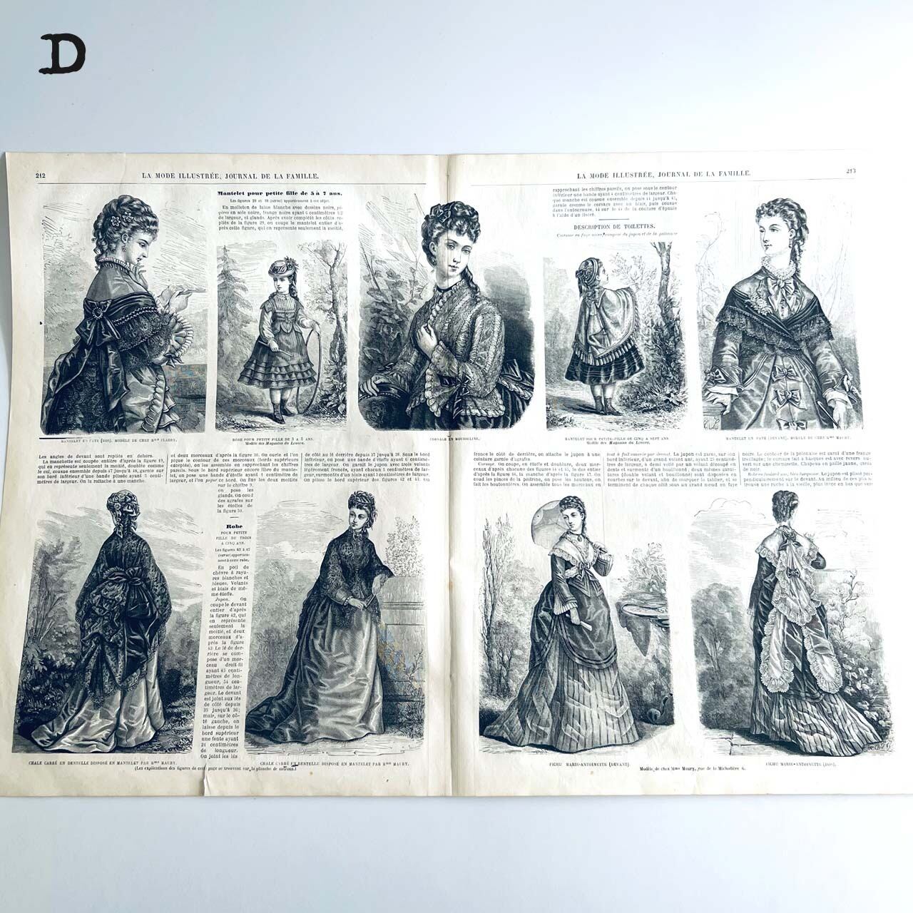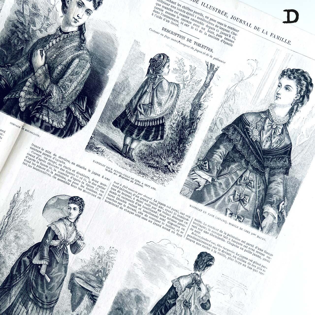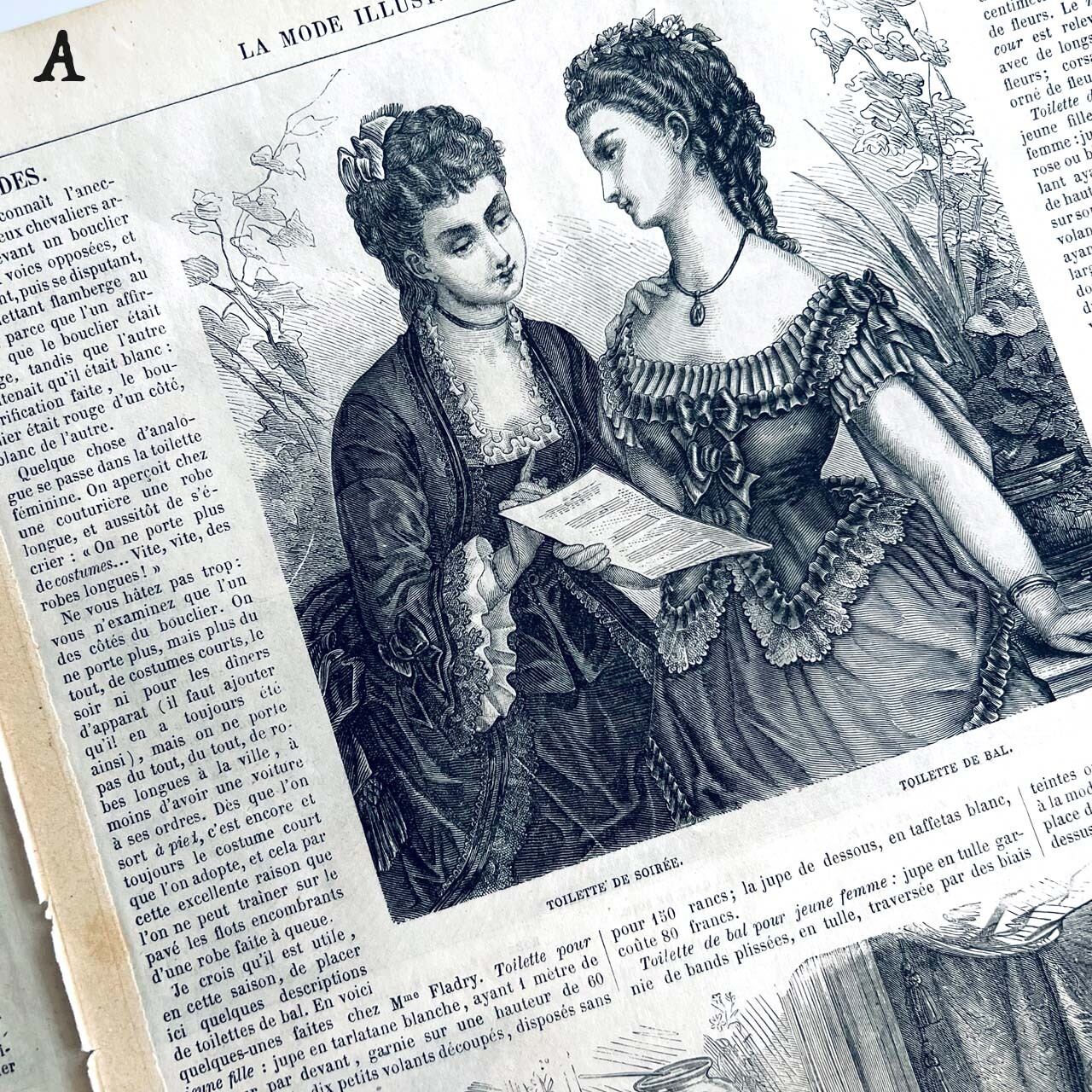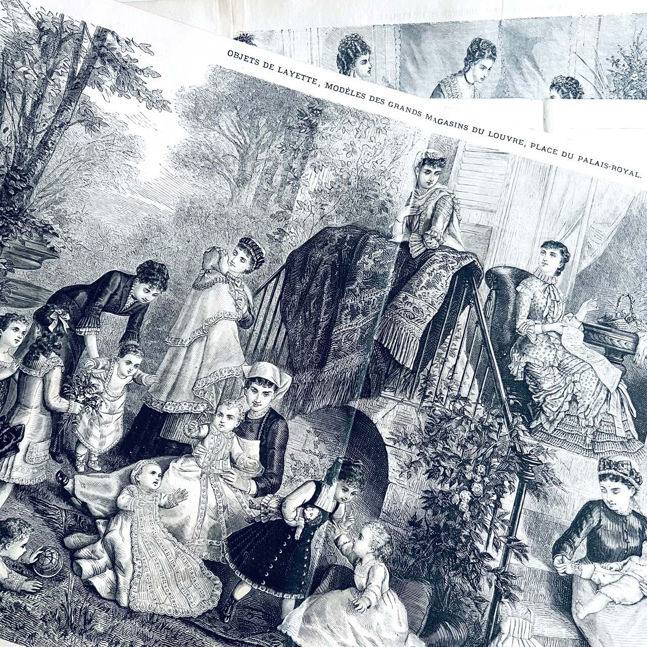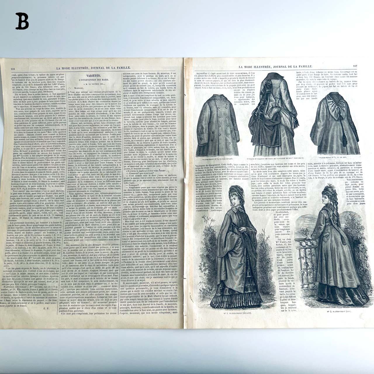 1873年ヴィクトリア時代のフランスファッション誌『 La Mode Illustree 』見開き銅版画です。