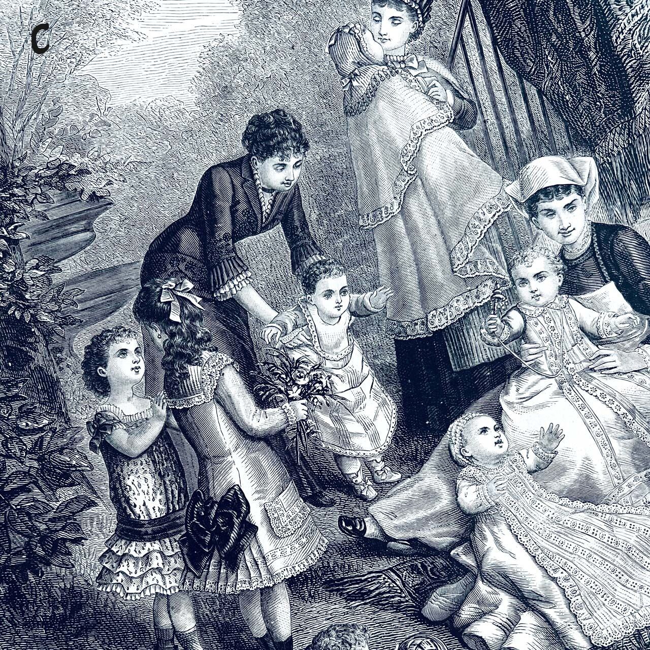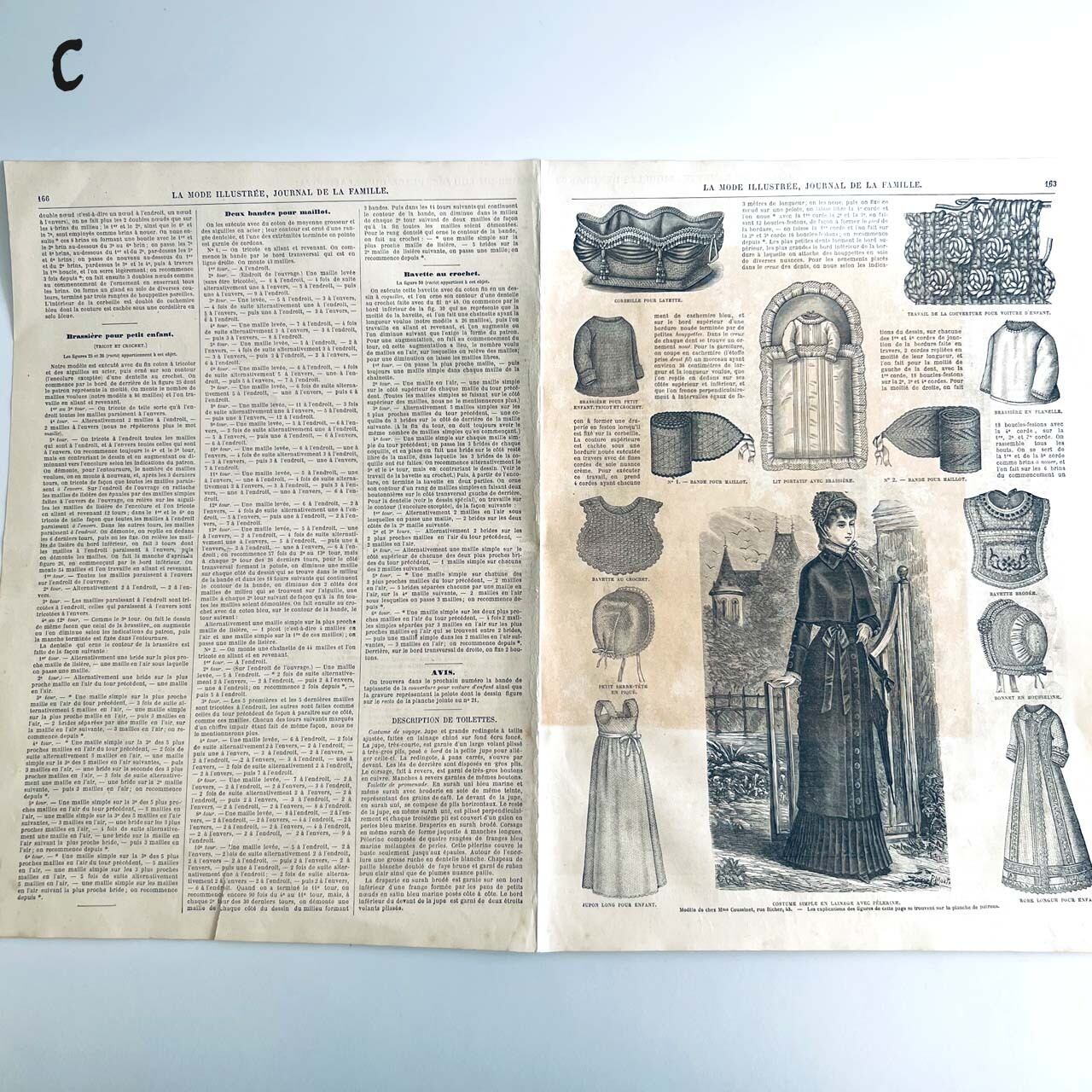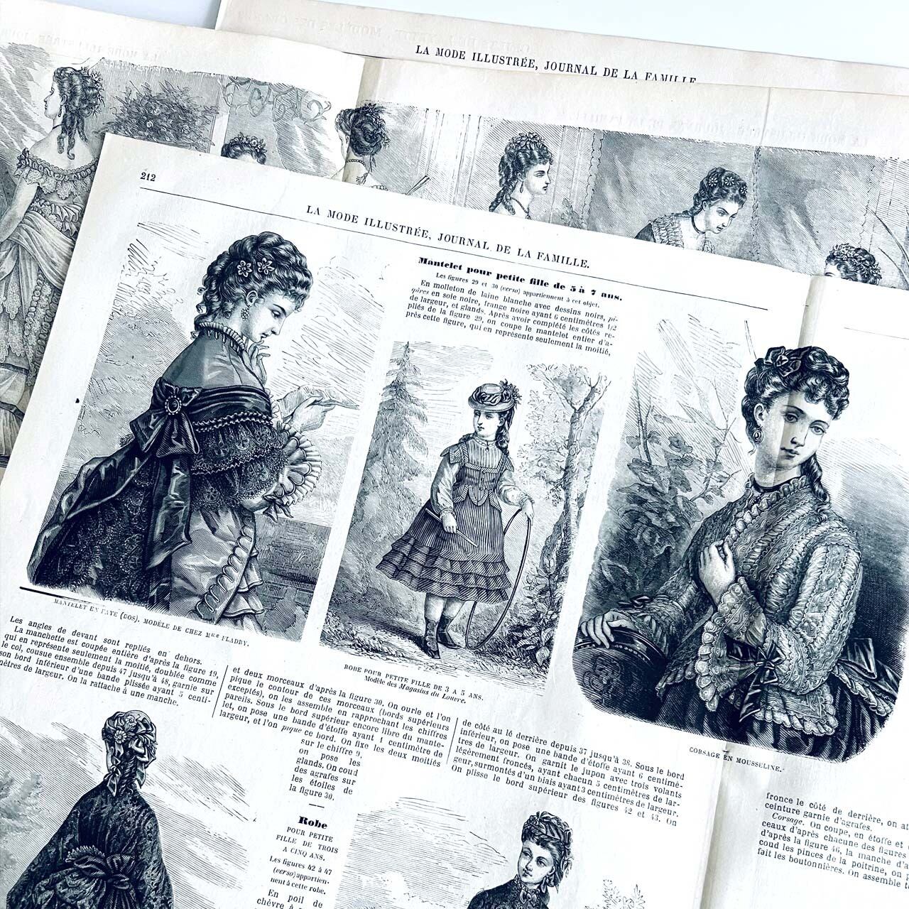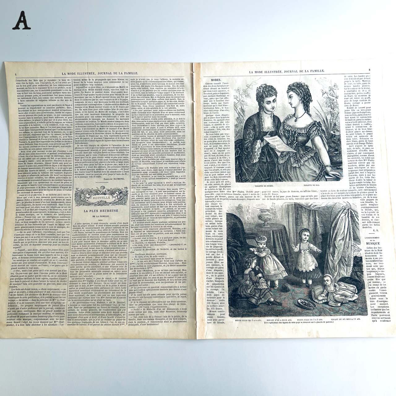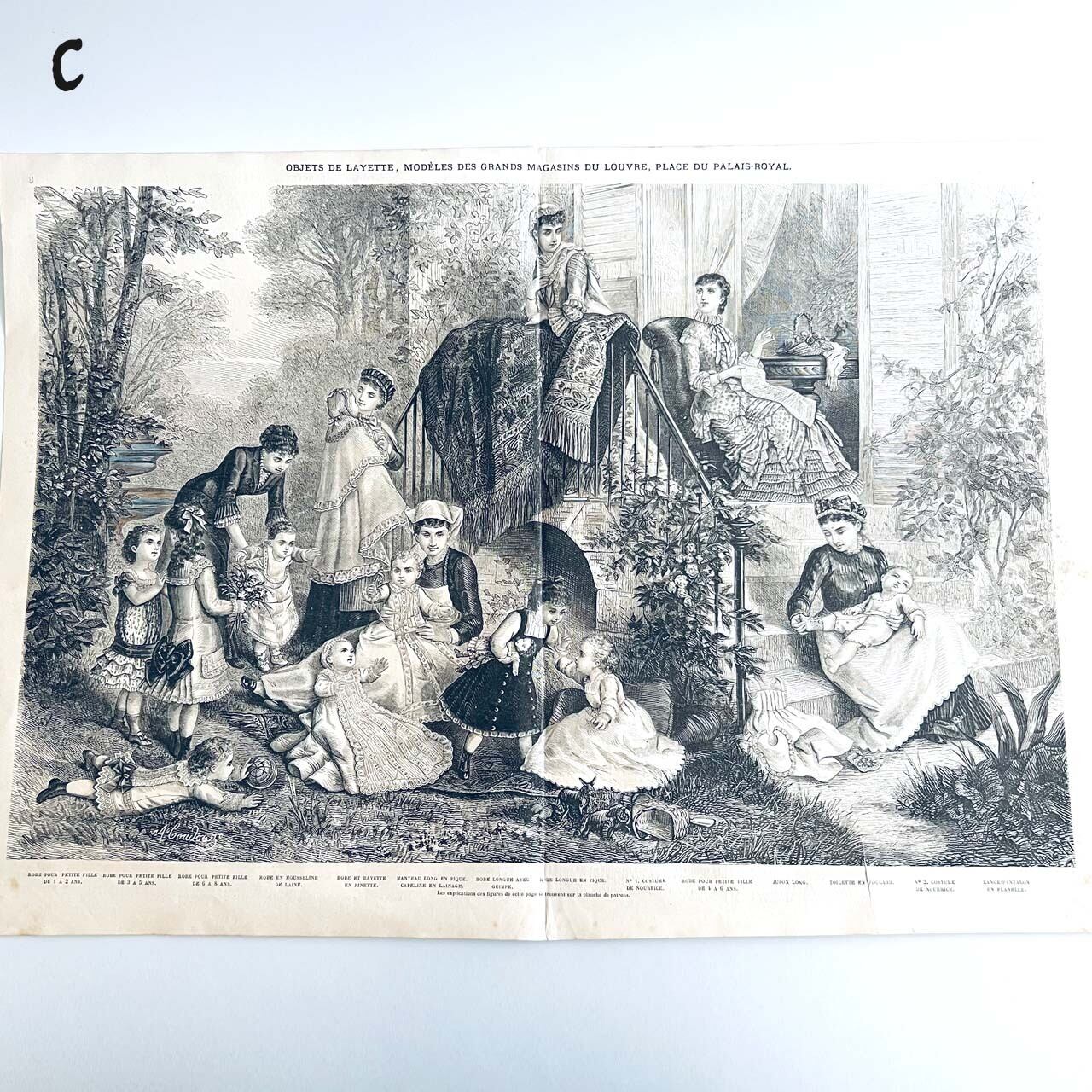 1873年ヴィクトリア時代のフランスファッション誌『 La Mode Illustree 』見開き銅版画です。