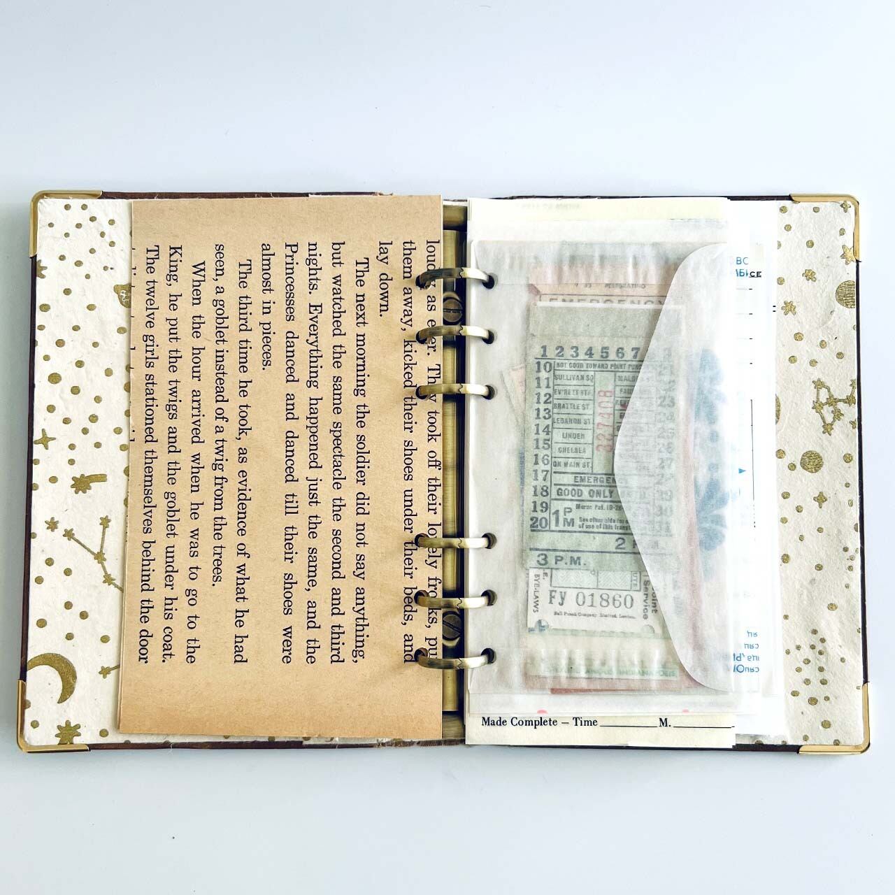 中身のアンティーク素材や紙ものやファイルポケットもついています。