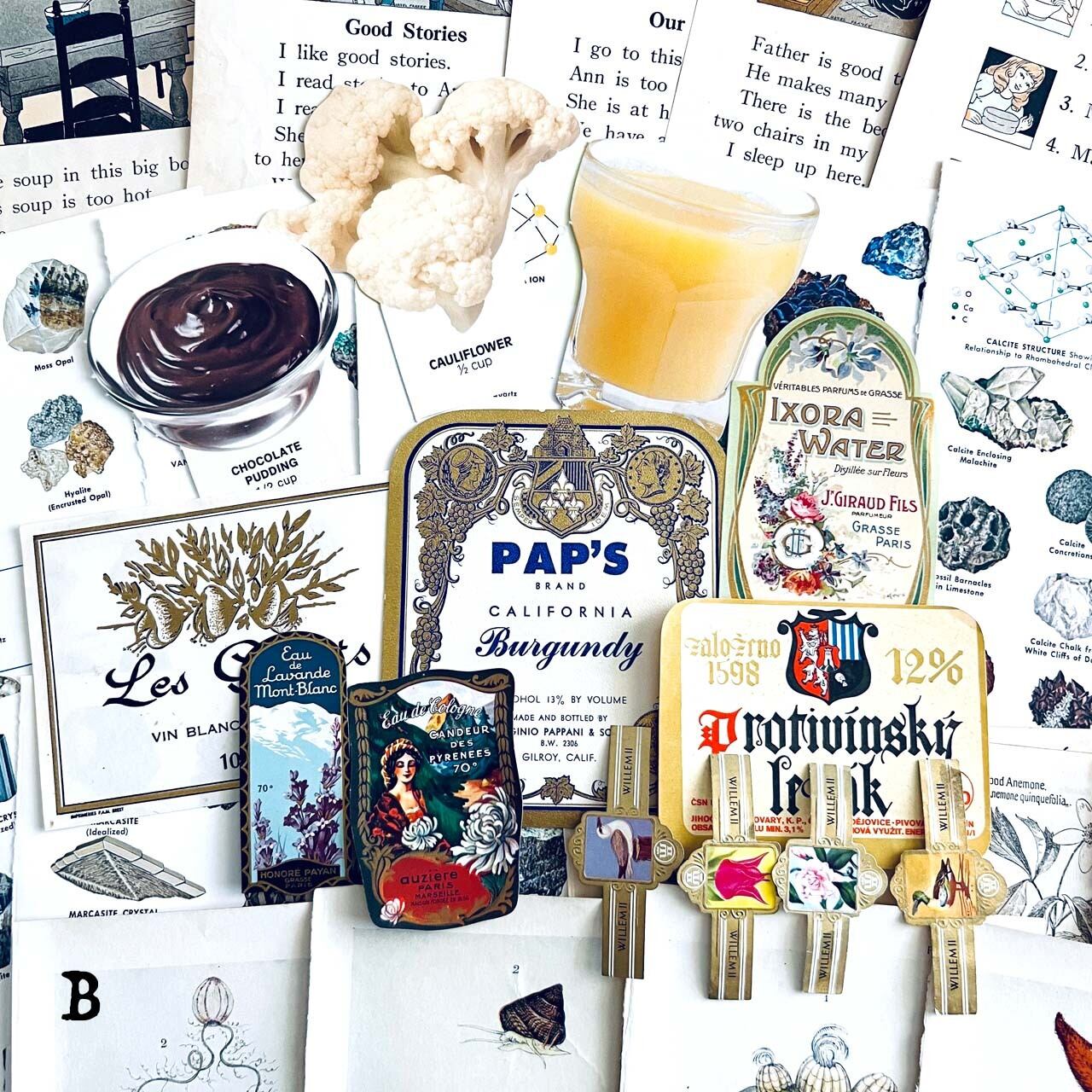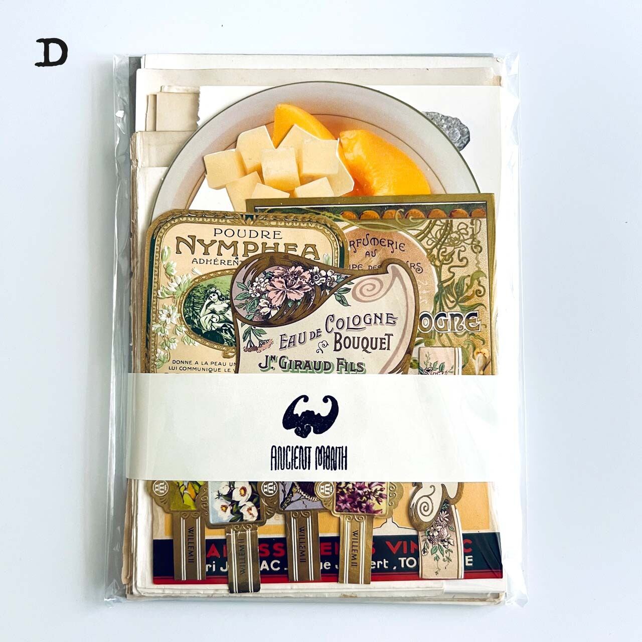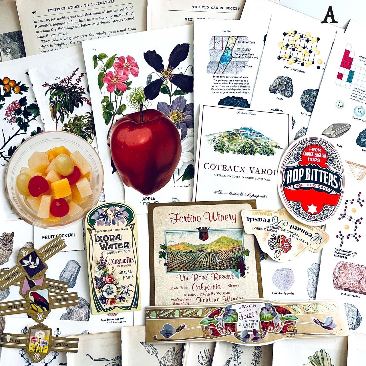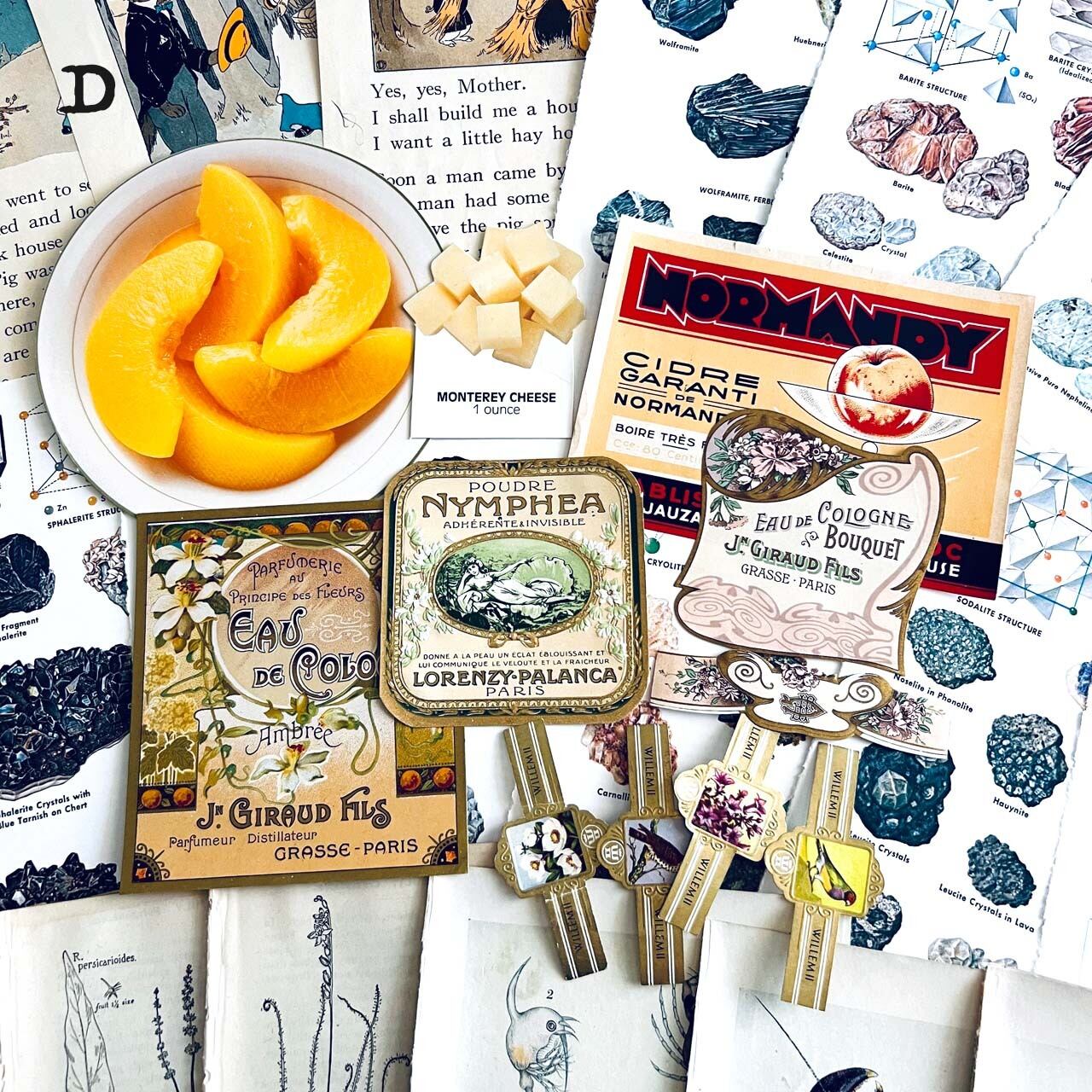 大変珍しいヴィンテージスクールフードカードや豪華な香水ラベル、シガレットラベル、ワインラベルなど一枚で数千円する素材も入っております。