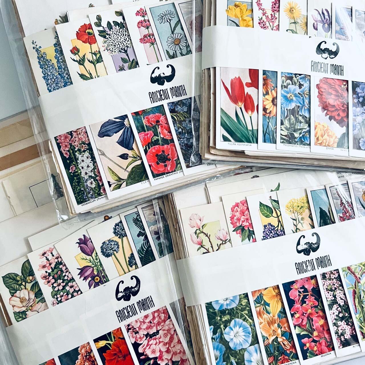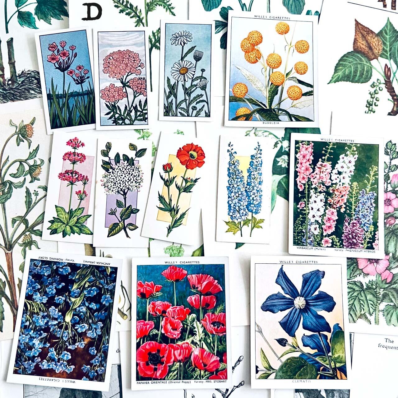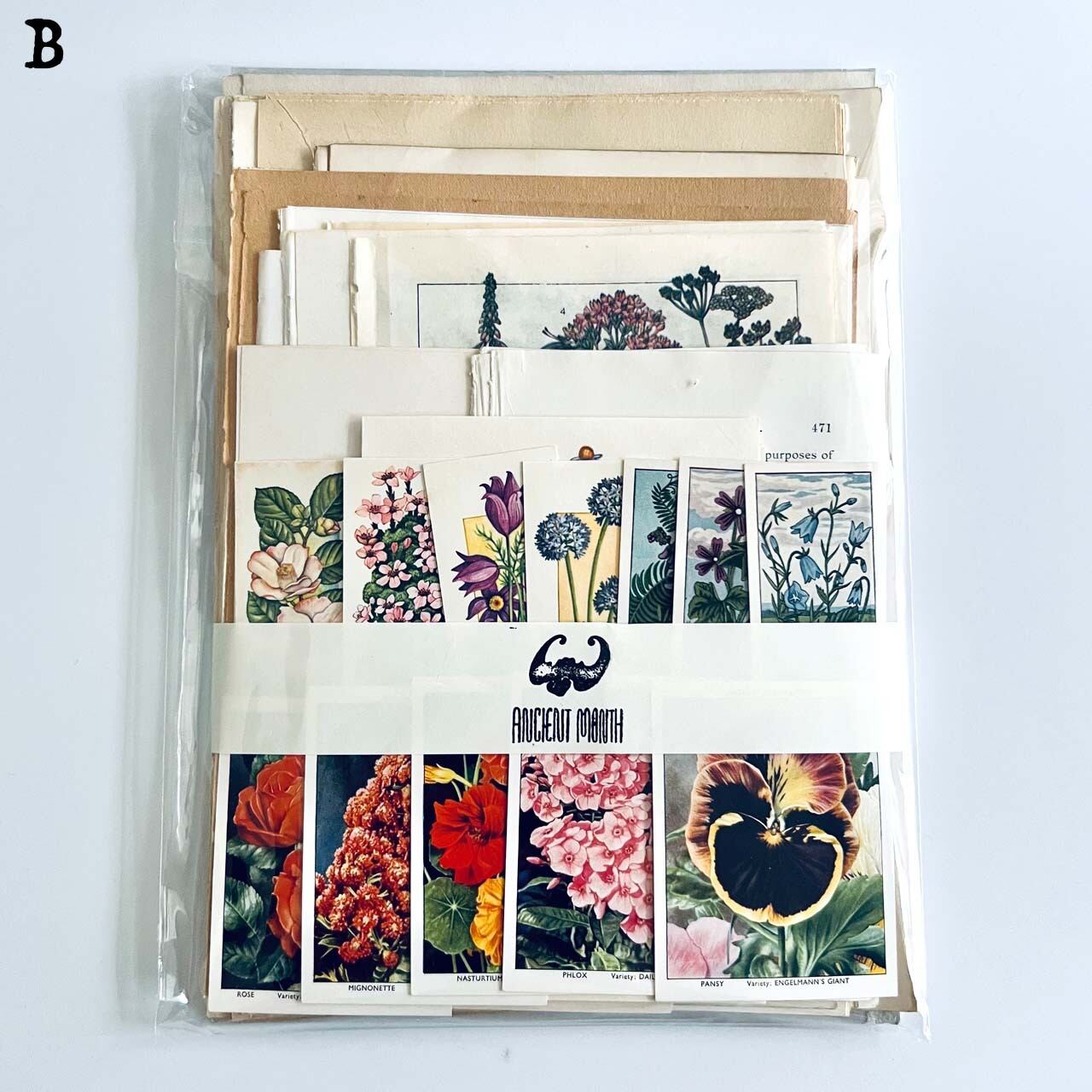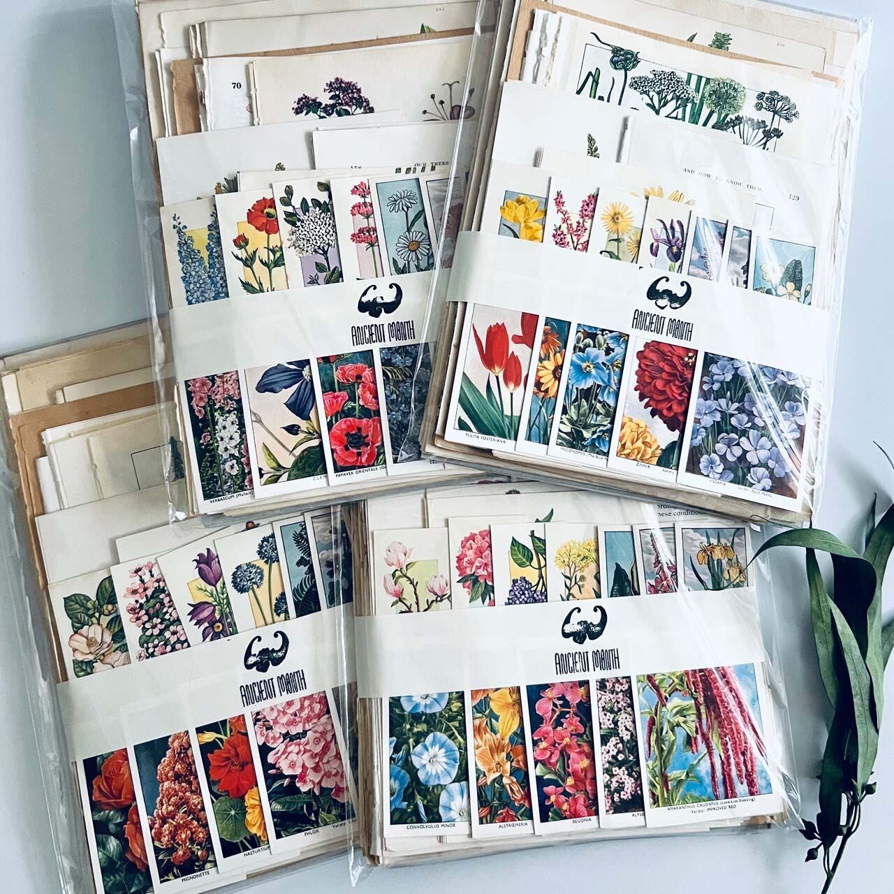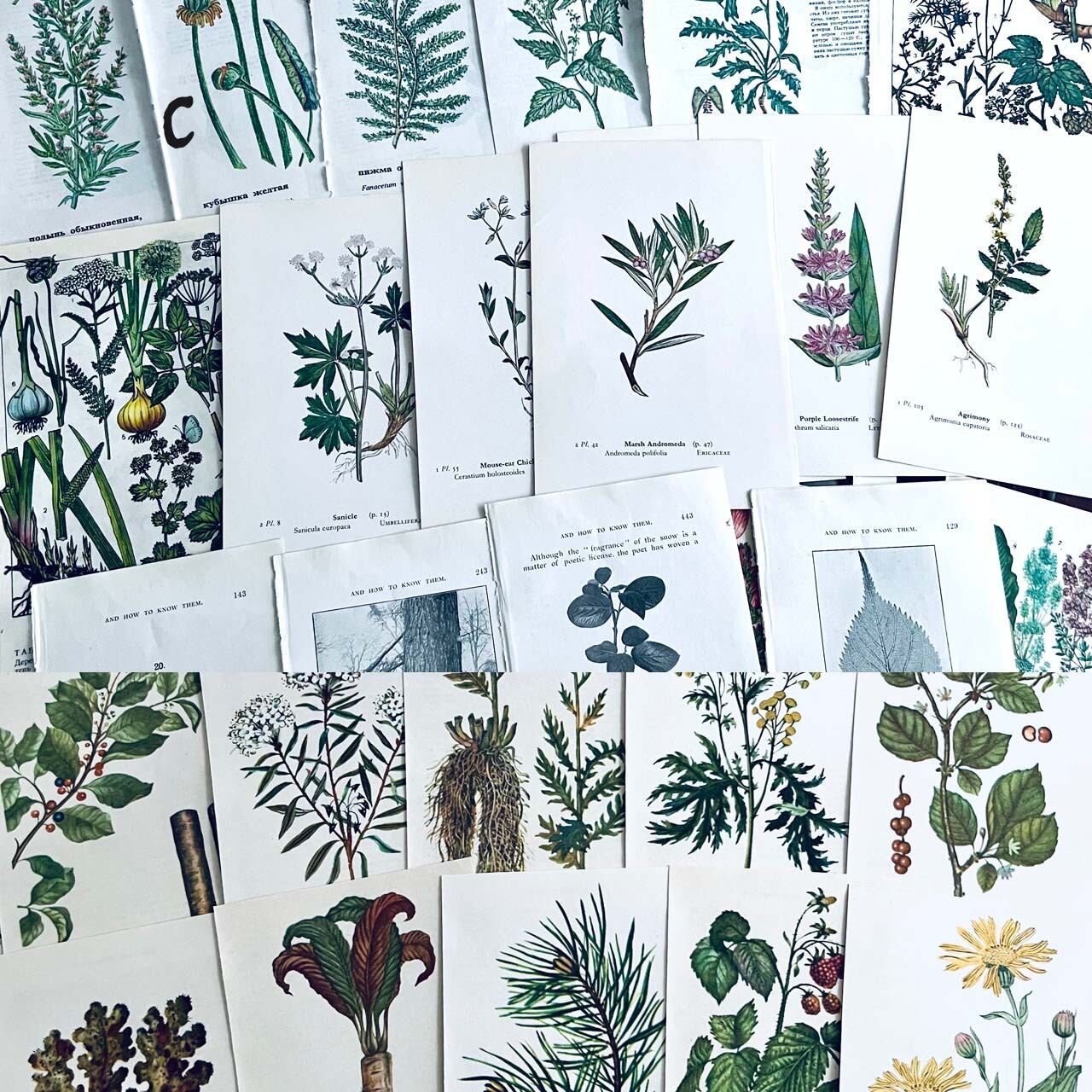 ヴィクトリアン時代のファッション誌や児童書の美しい大判挿絵、銅版画、アンティーク植物図鑑の貴重なカラープレートなど一枚で数千円する素材も入っております。