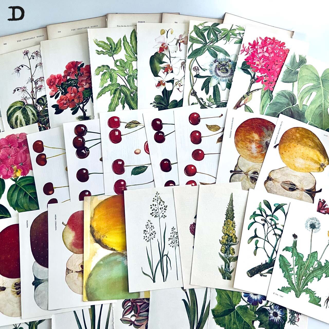 50年以上前の植物図鑑からの切り抜きをメインに集めました。