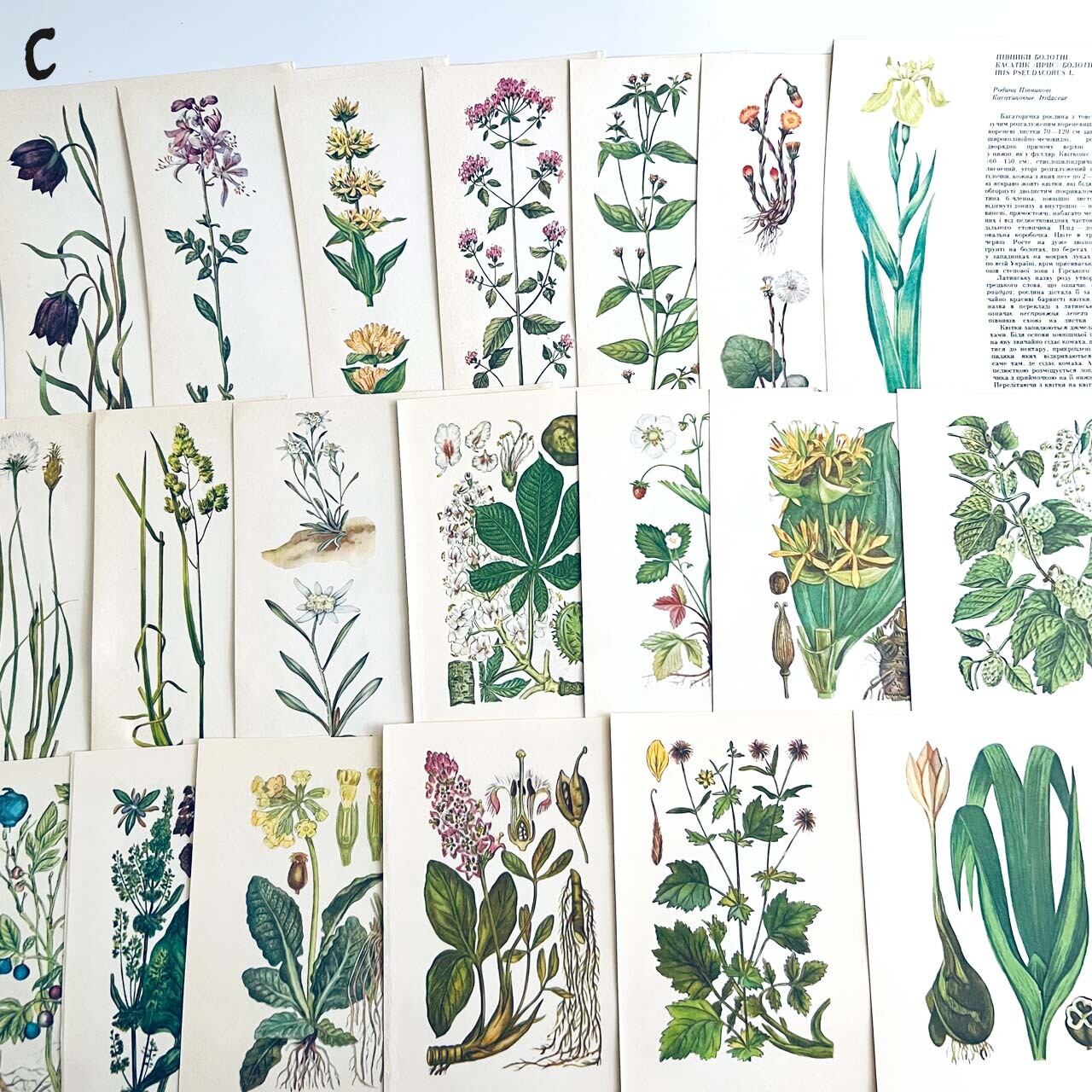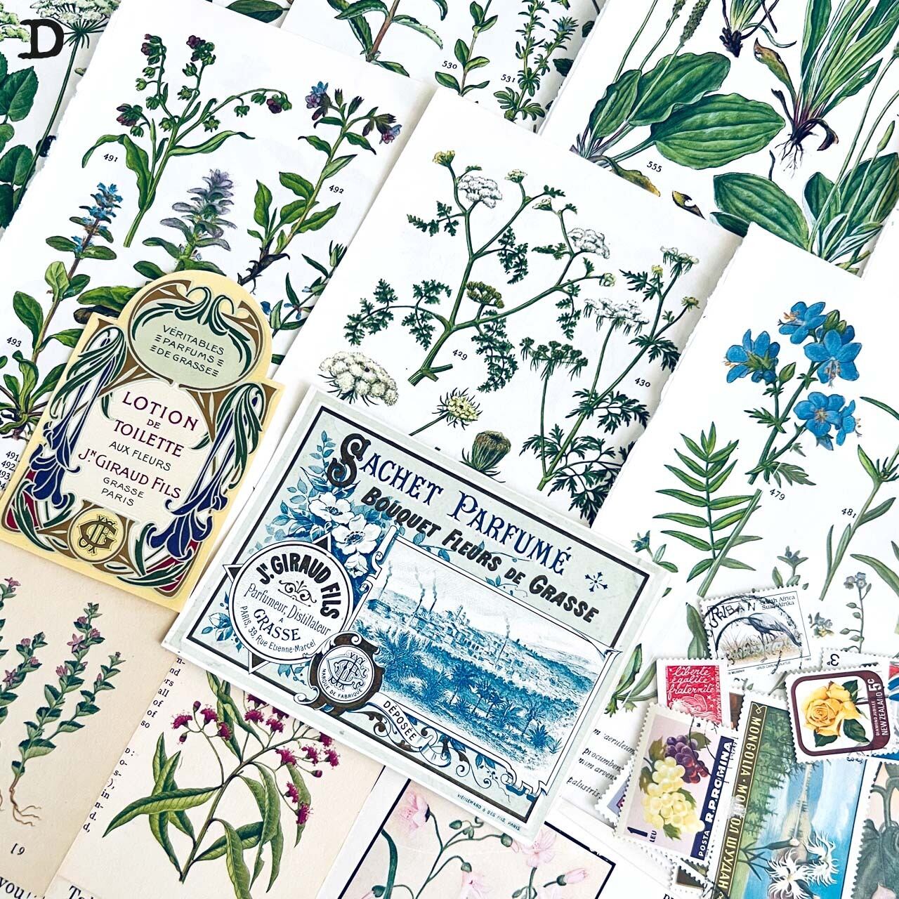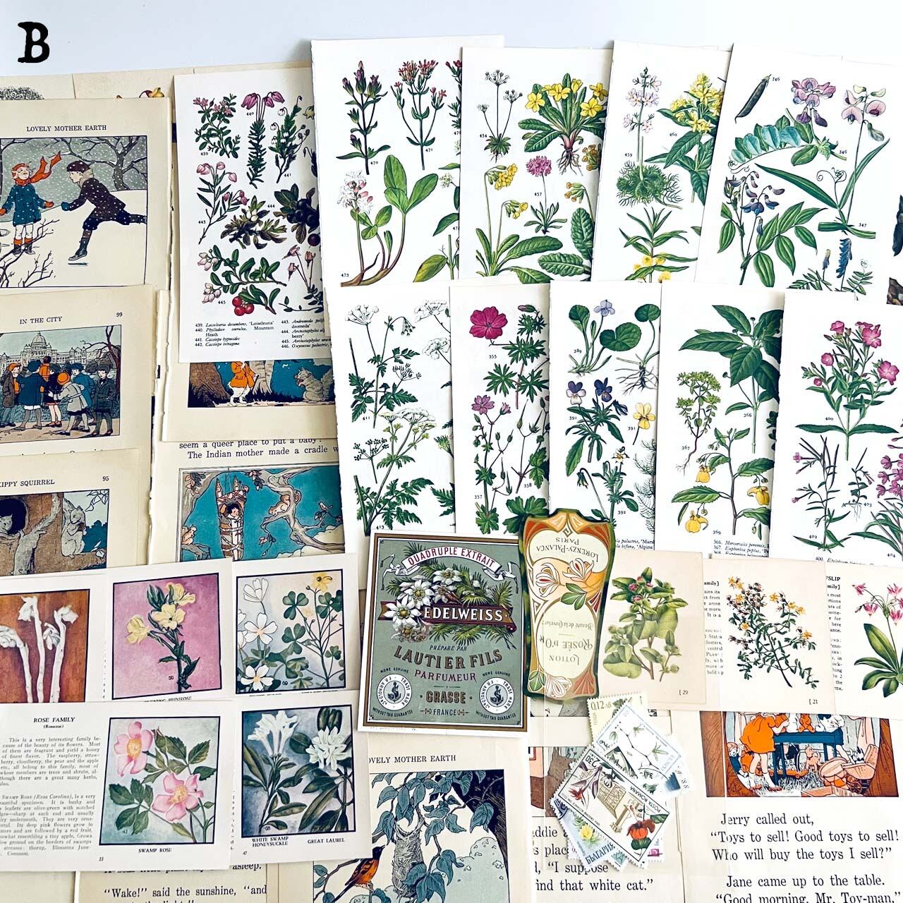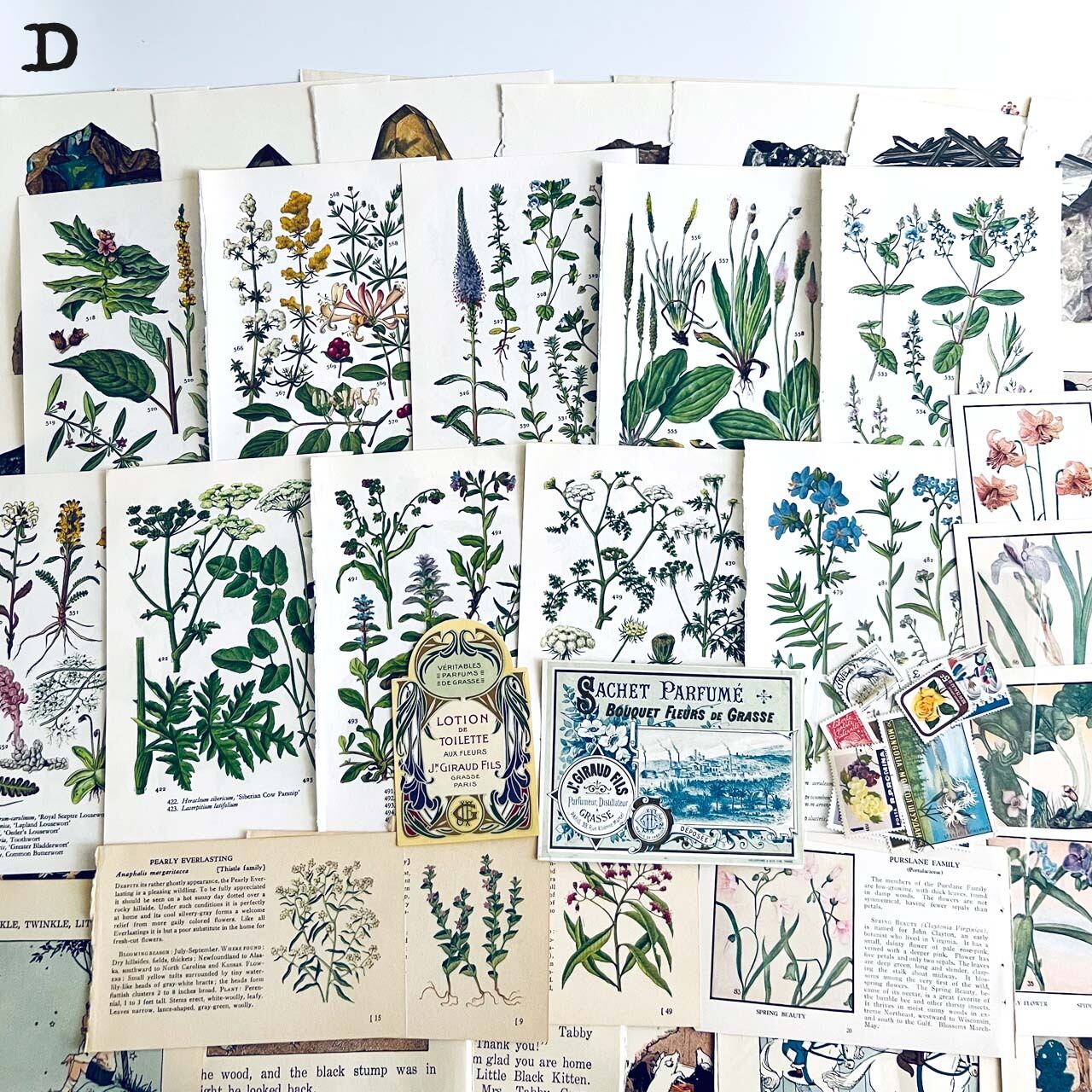 アンティークヴィンテージ植物図鑑や鉱石図鑑、児童書などから集めました。