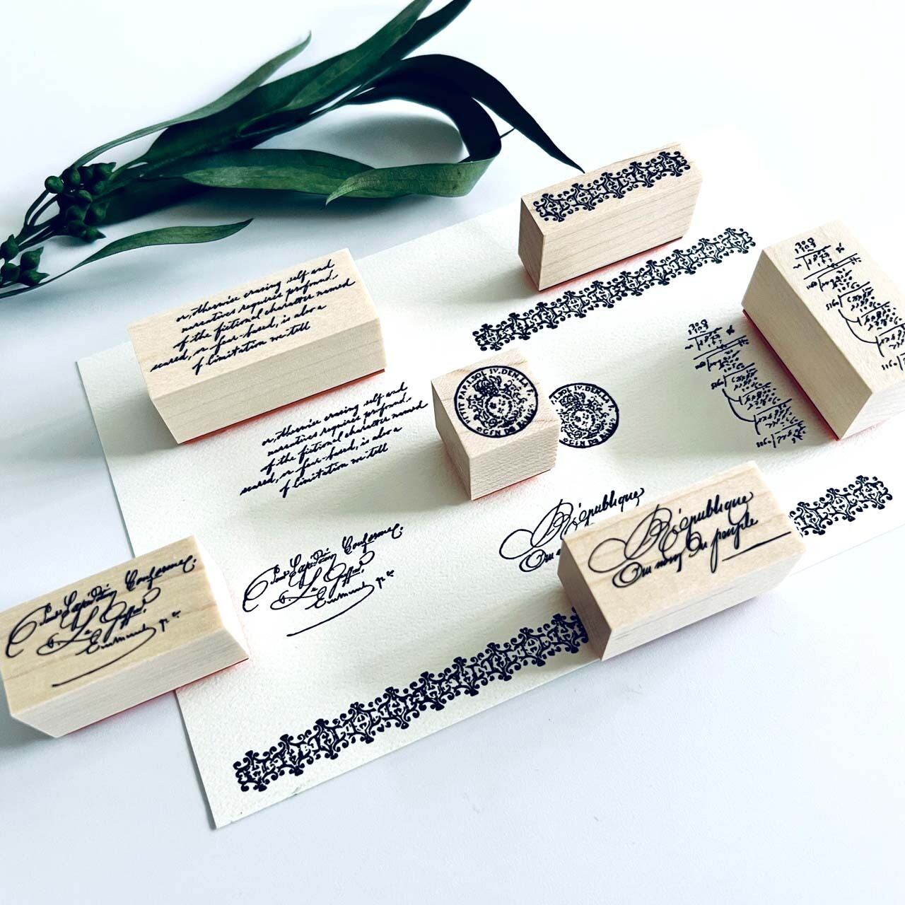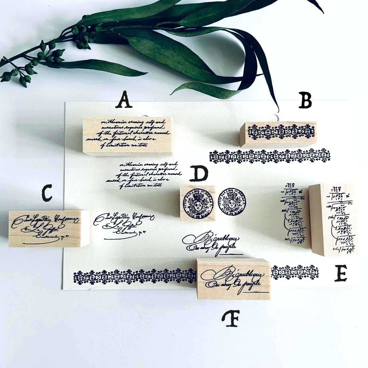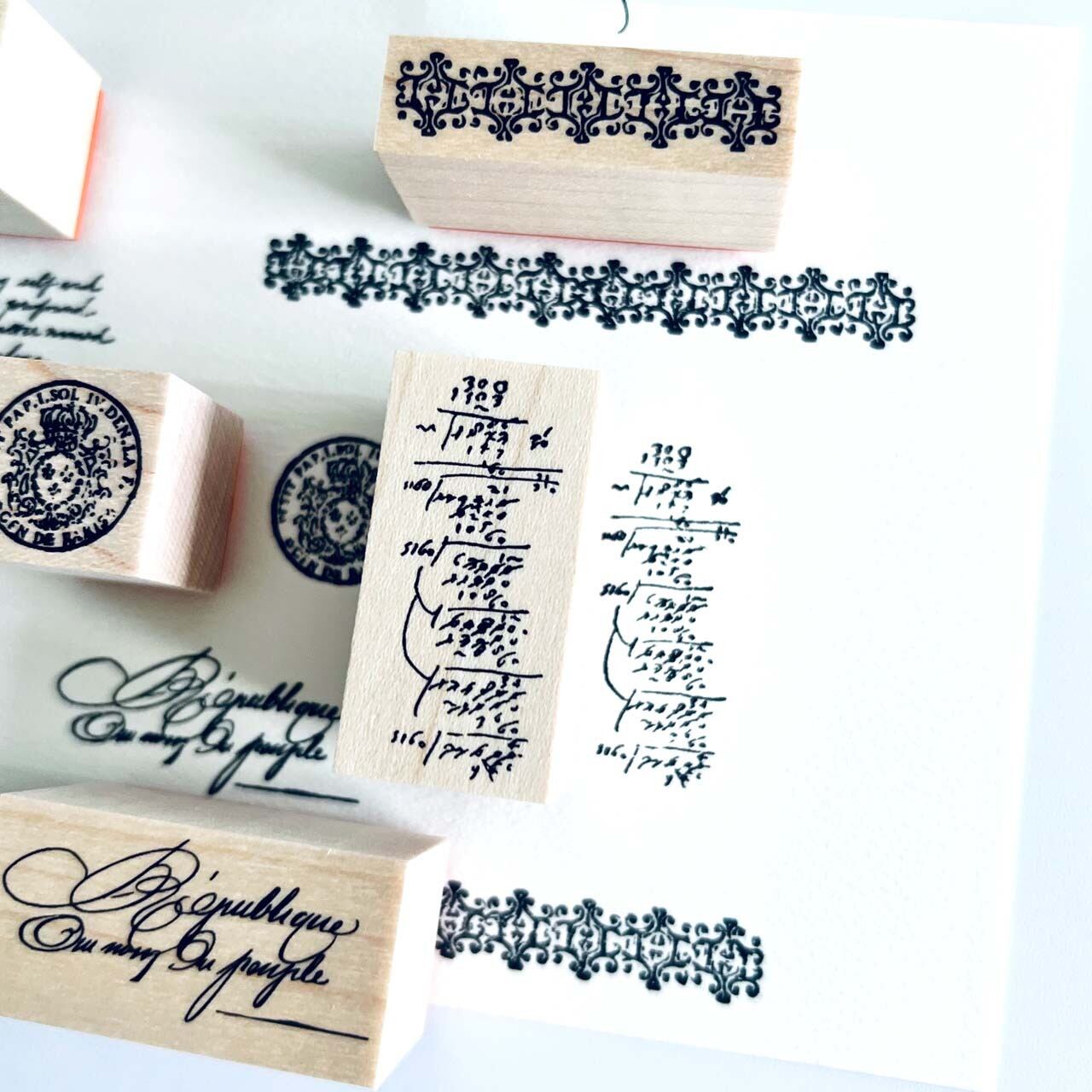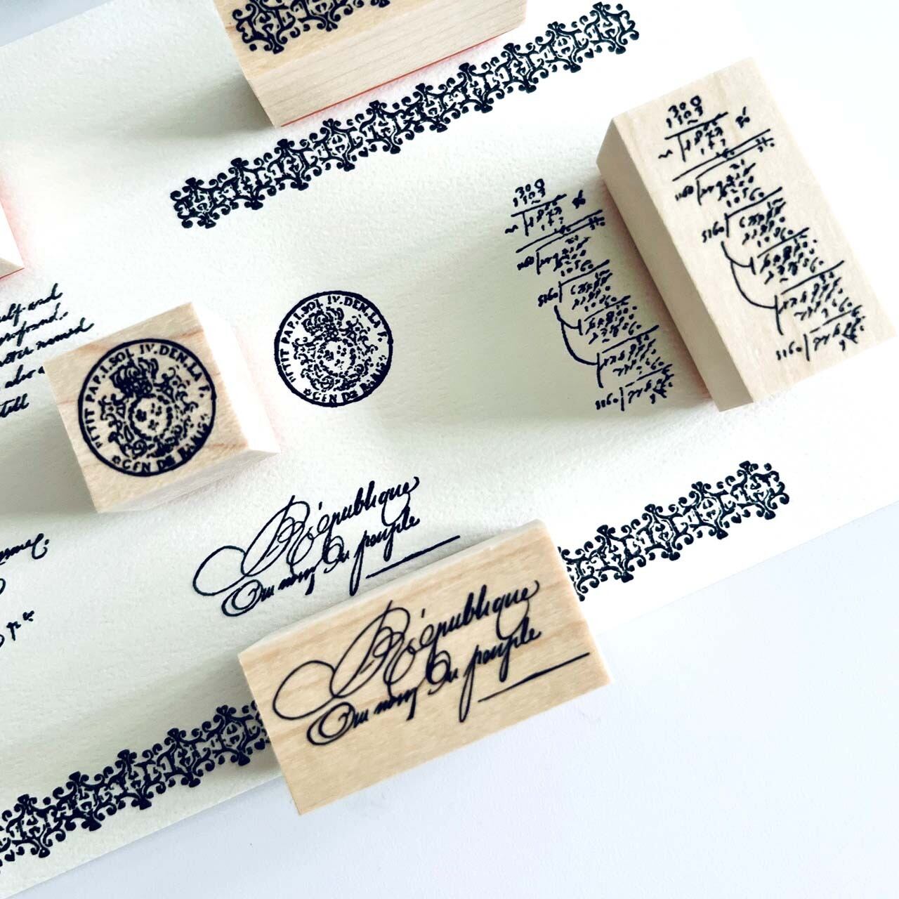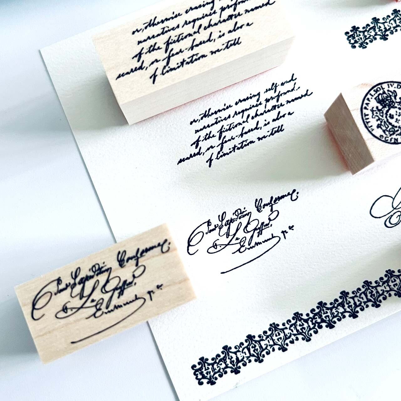 18世紀から19世紀にかけての公文書や手記のテクストから制作した当店オリジナルのスタンプです。