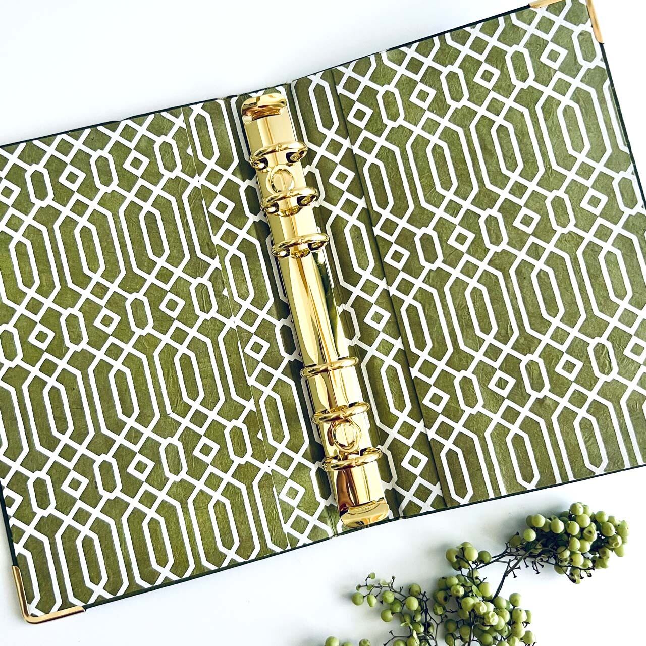 裏地は表に合うようなオリーブ色の模様紙を使用しております。