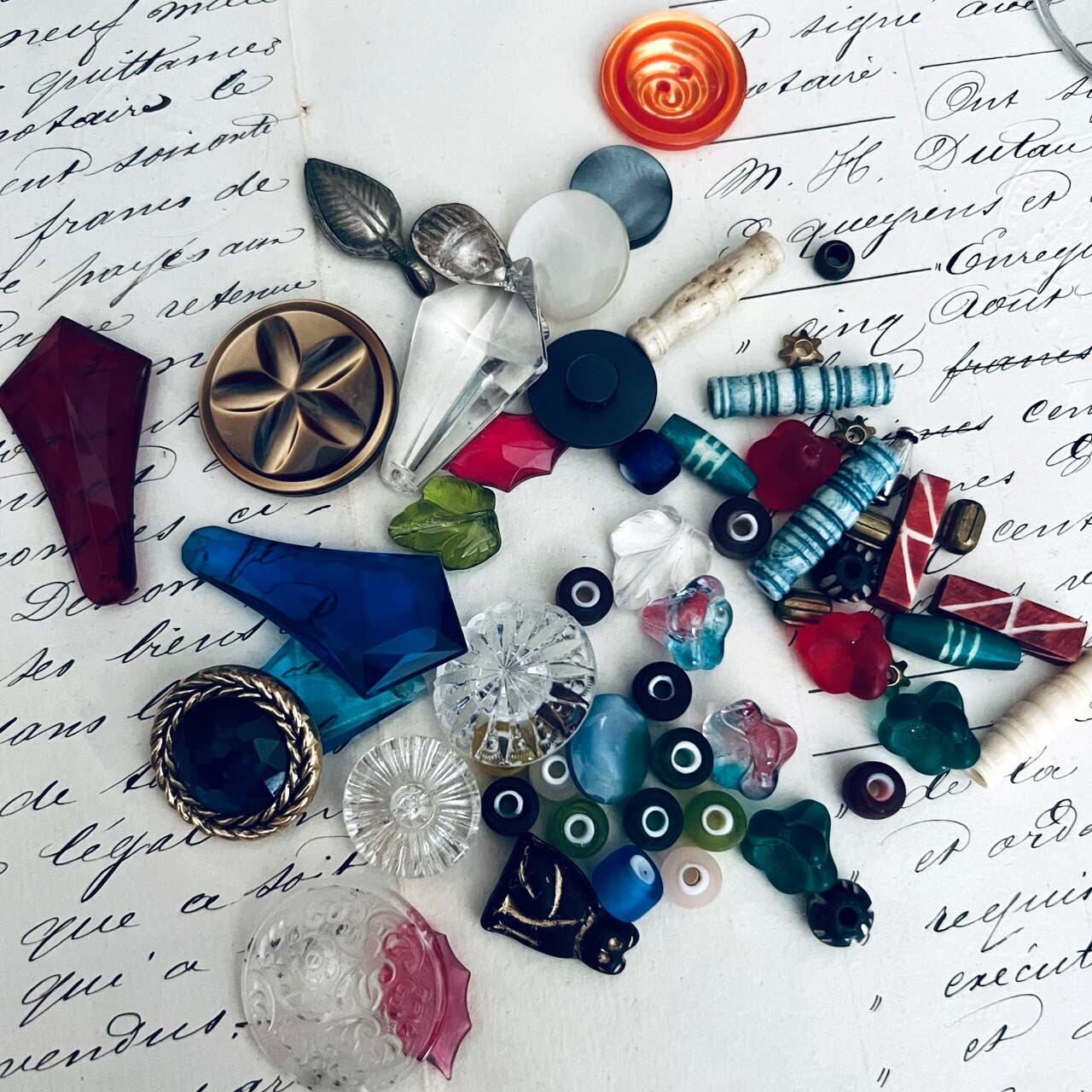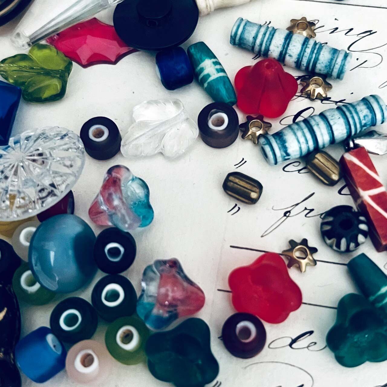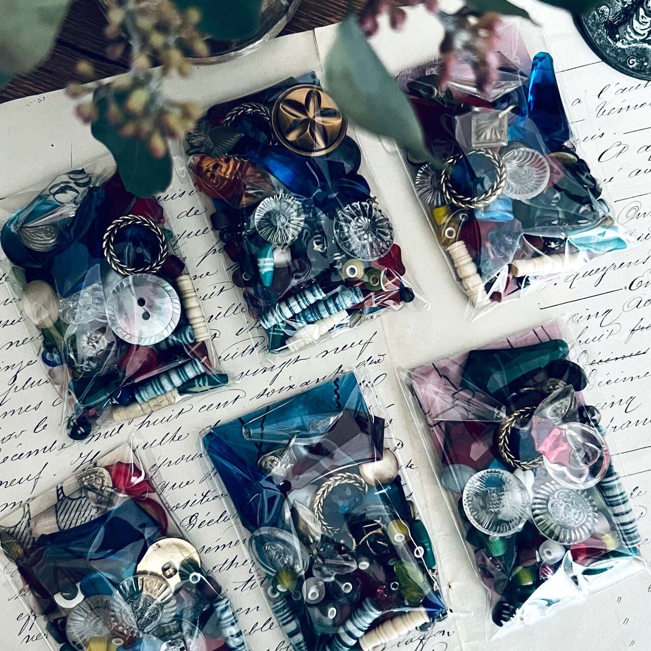ボーンビーズやヴィンテージボタン、ガラスパーツ、樹脂パーツなどの詰め合わせです。