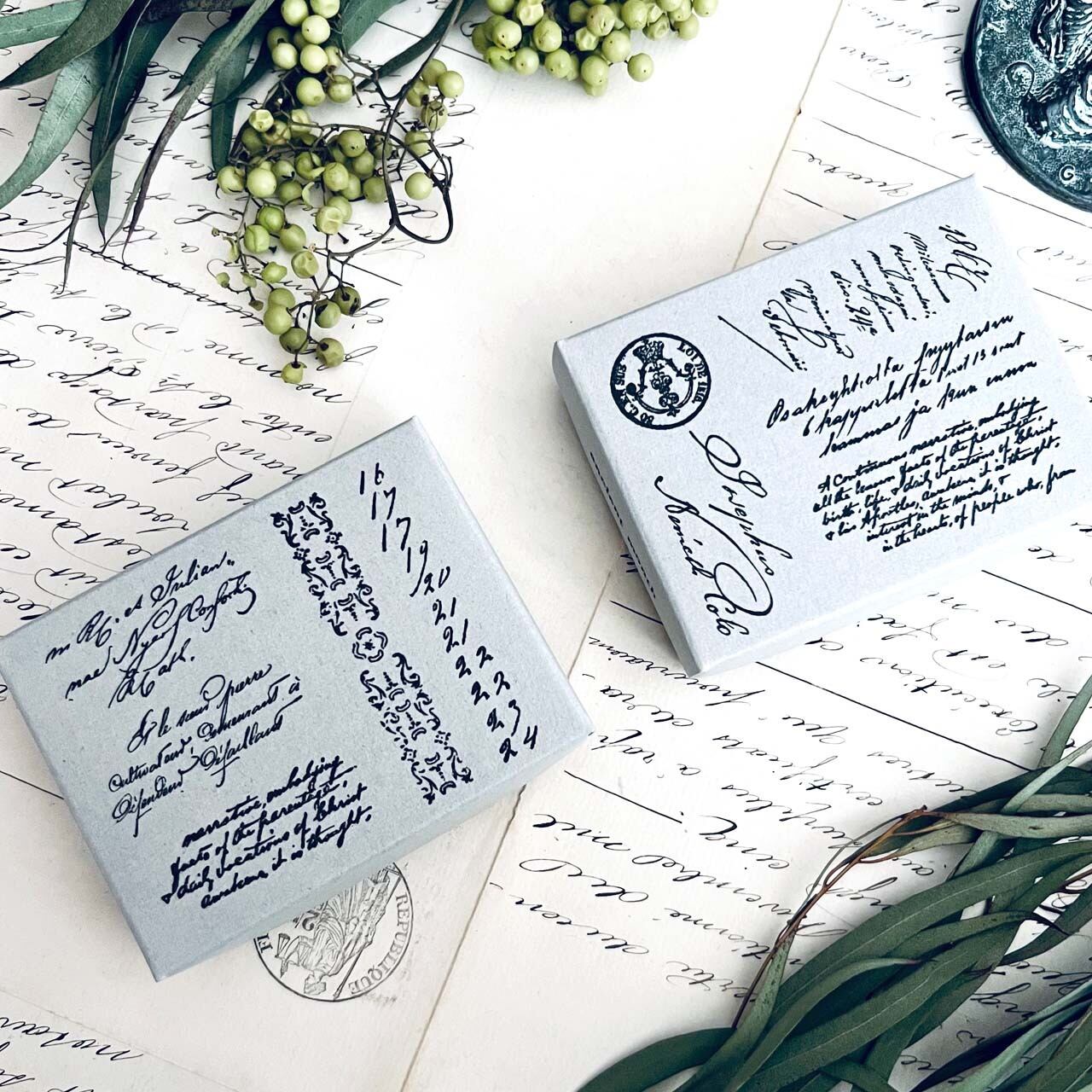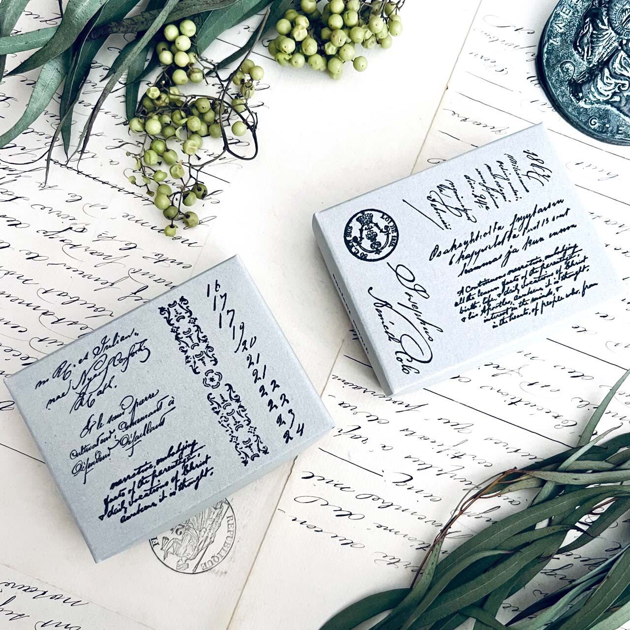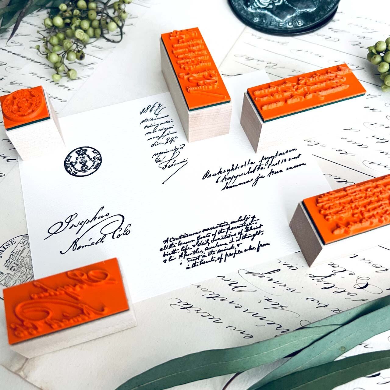18世紀から19世紀にかけての公文書、手記などをモチーフに制作した当店オリジナルのスタンプです。
