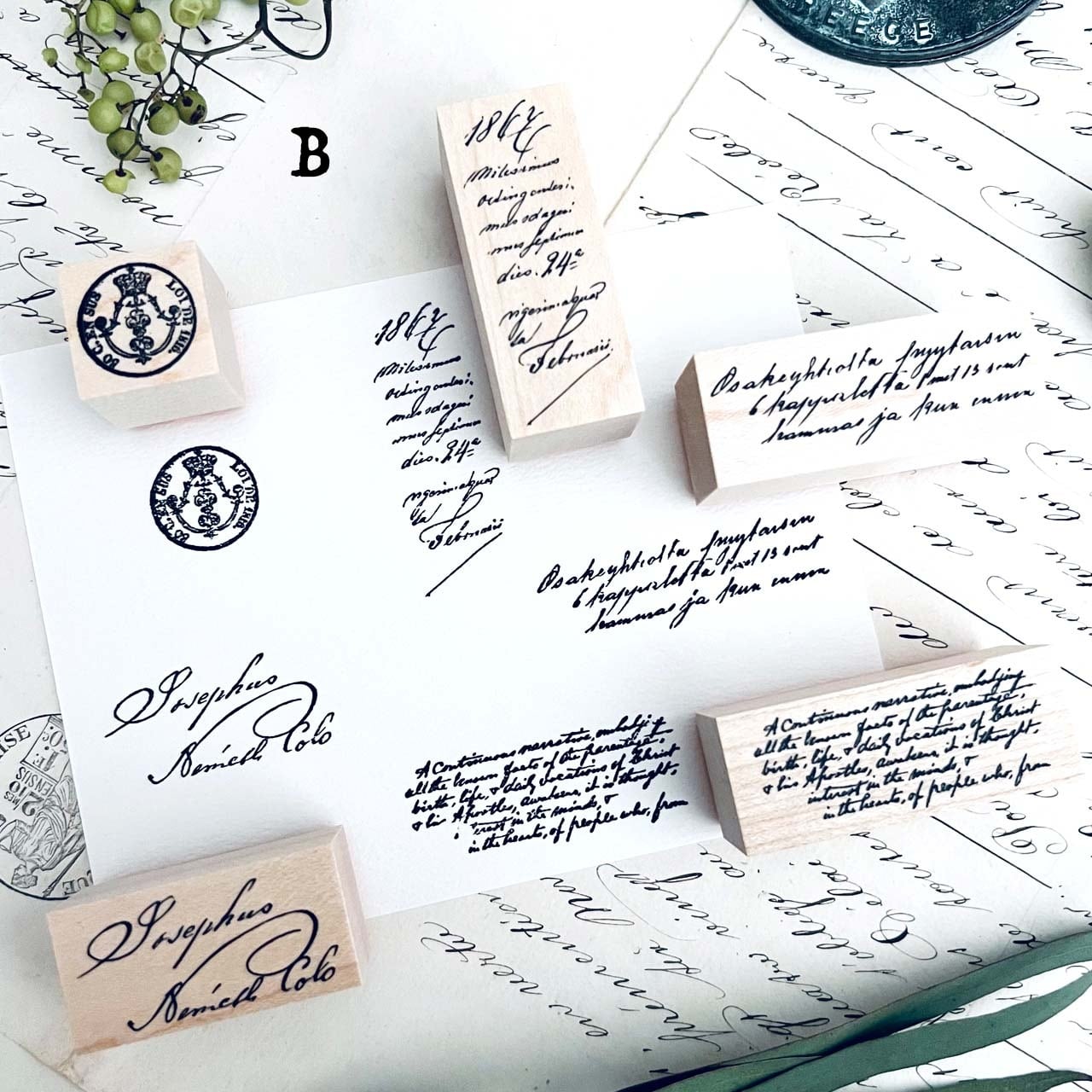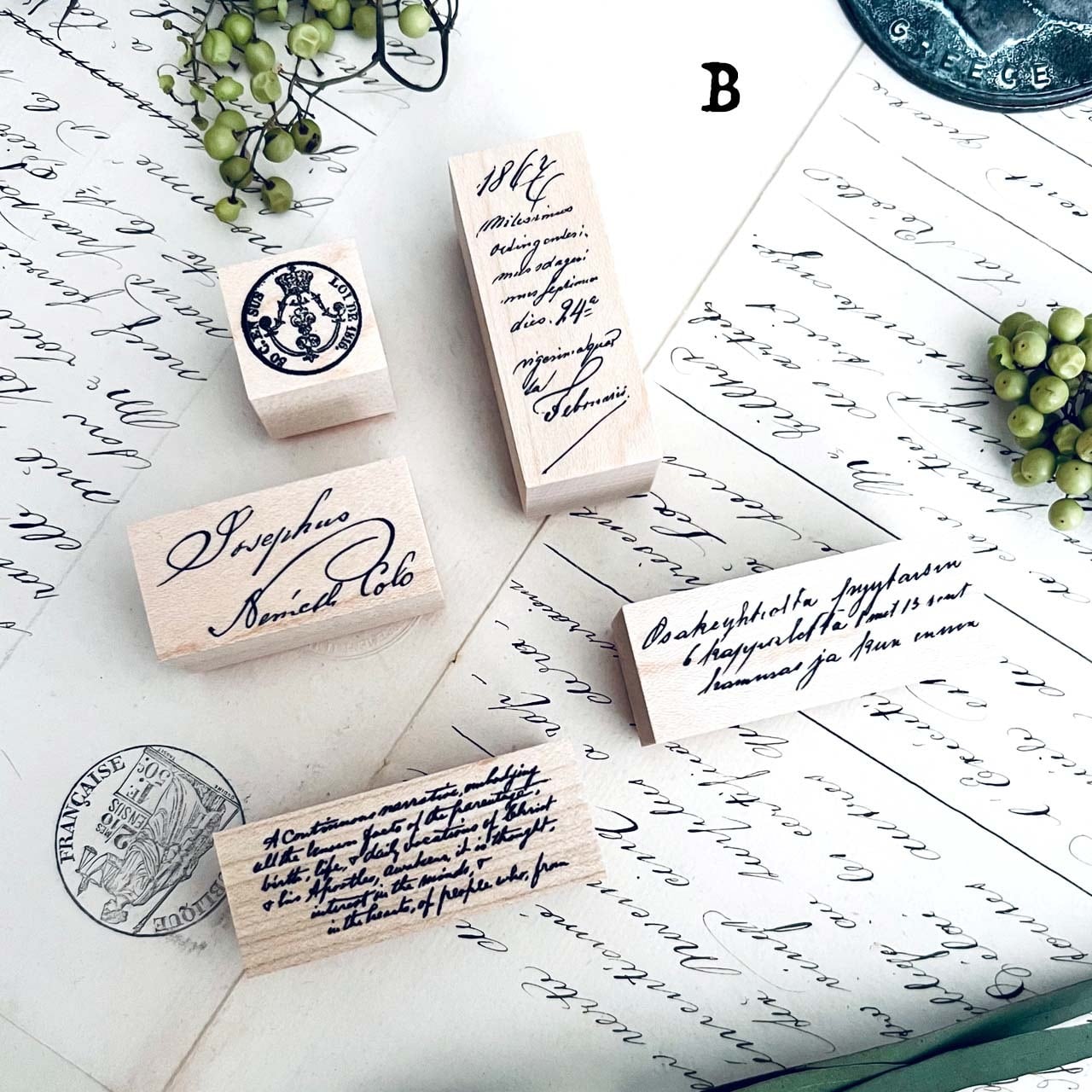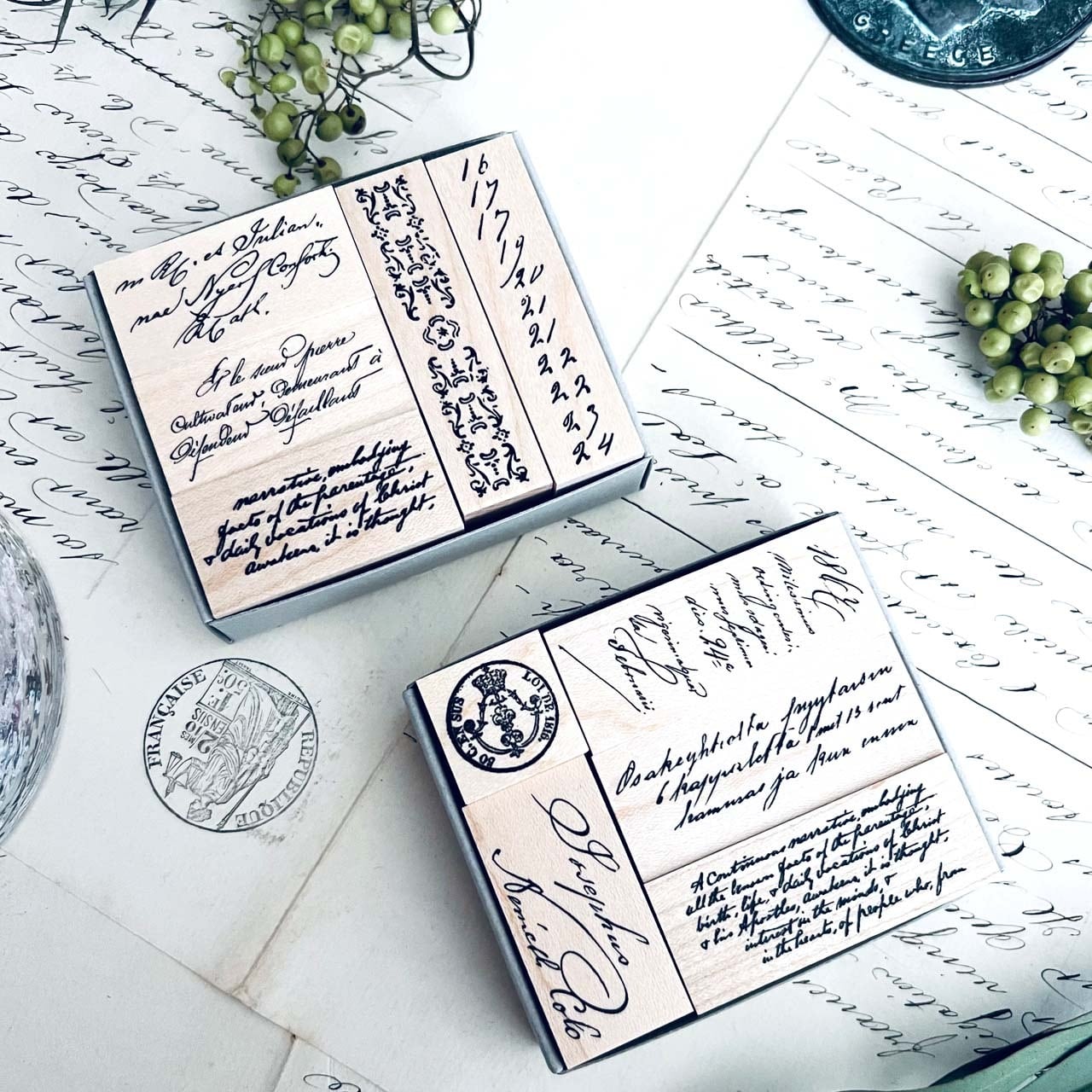 18世紀から19世紀にかけての公文書、手記などをモチーフに制作した当店オリジナルのスタンプです。