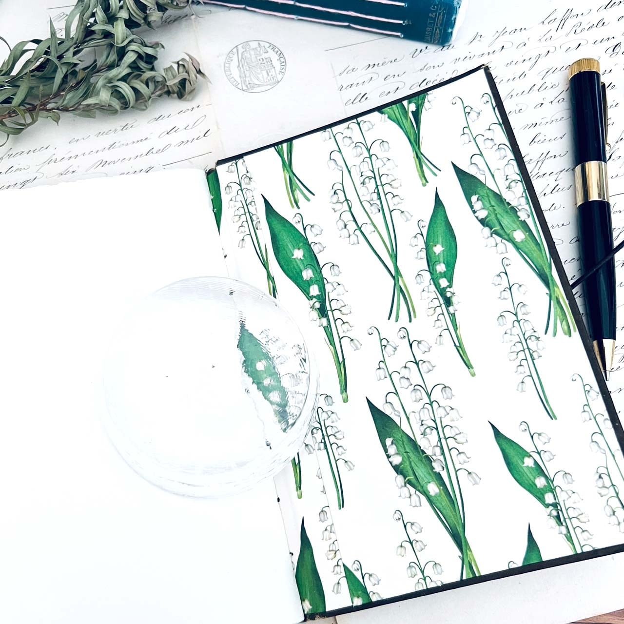 裏表紙も表紙に合わせて鈴蘭の装飾紙を使用しております。