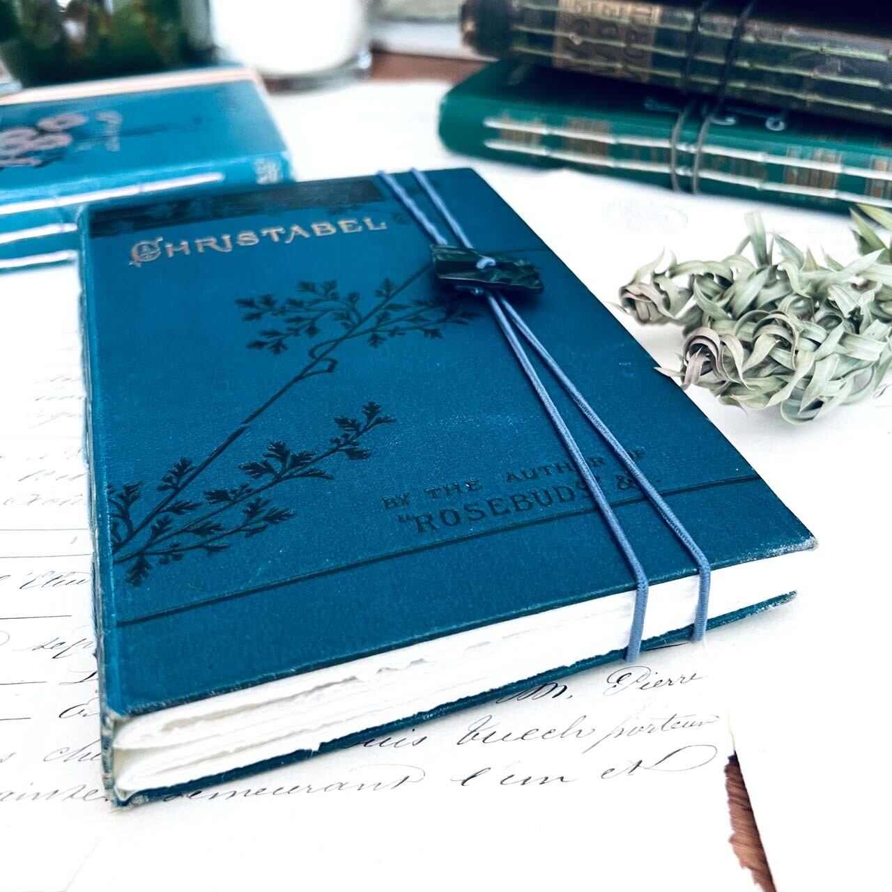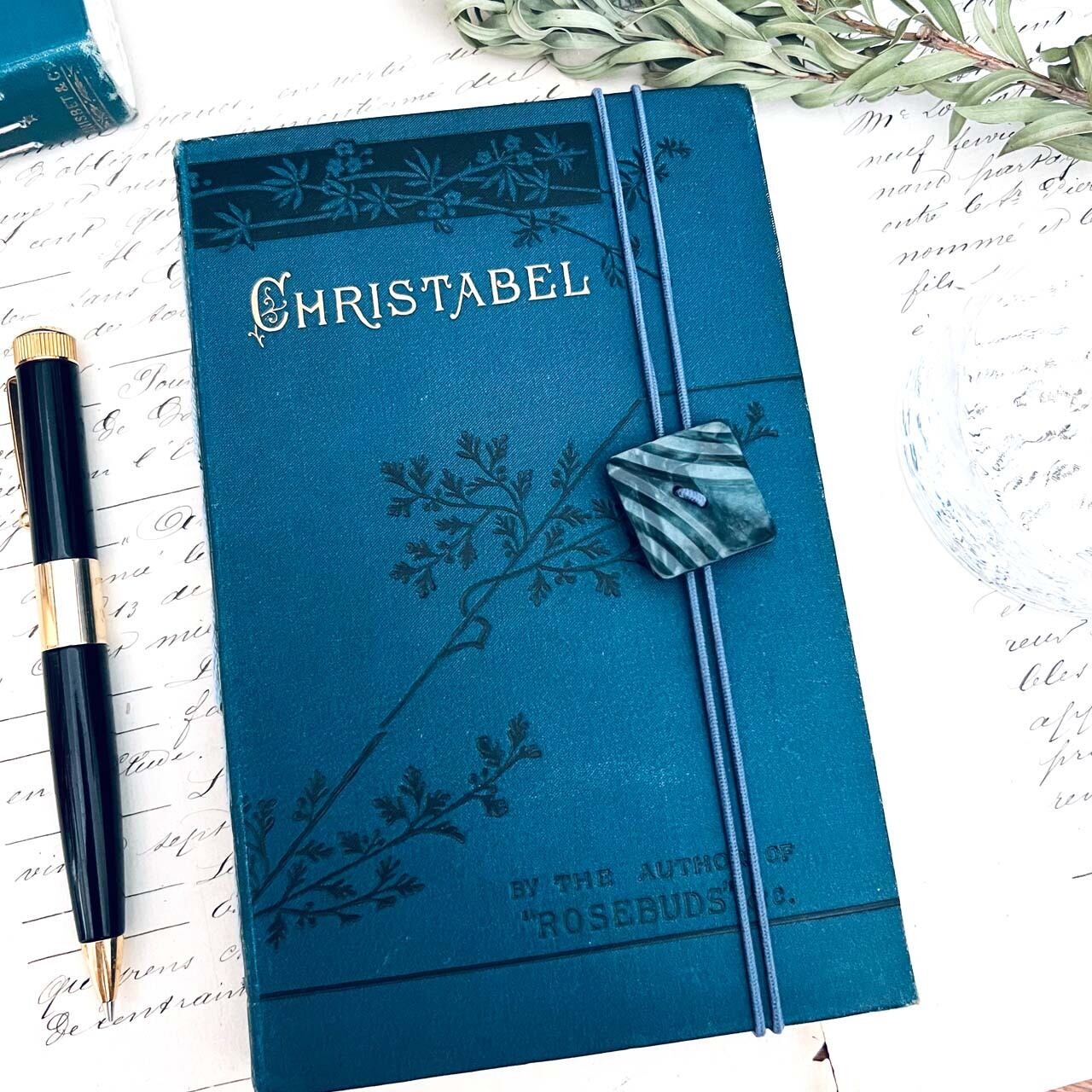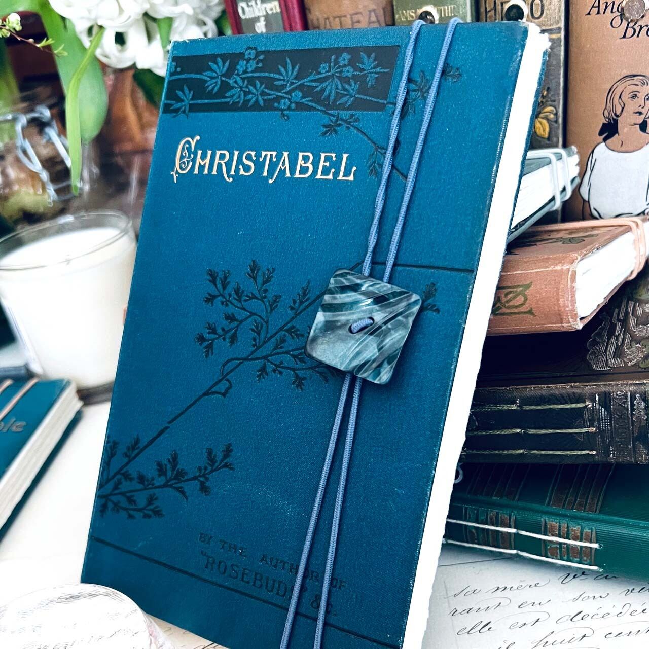 バンドのアンティークボタンは洋書の雰囲気に合うものを選びました。