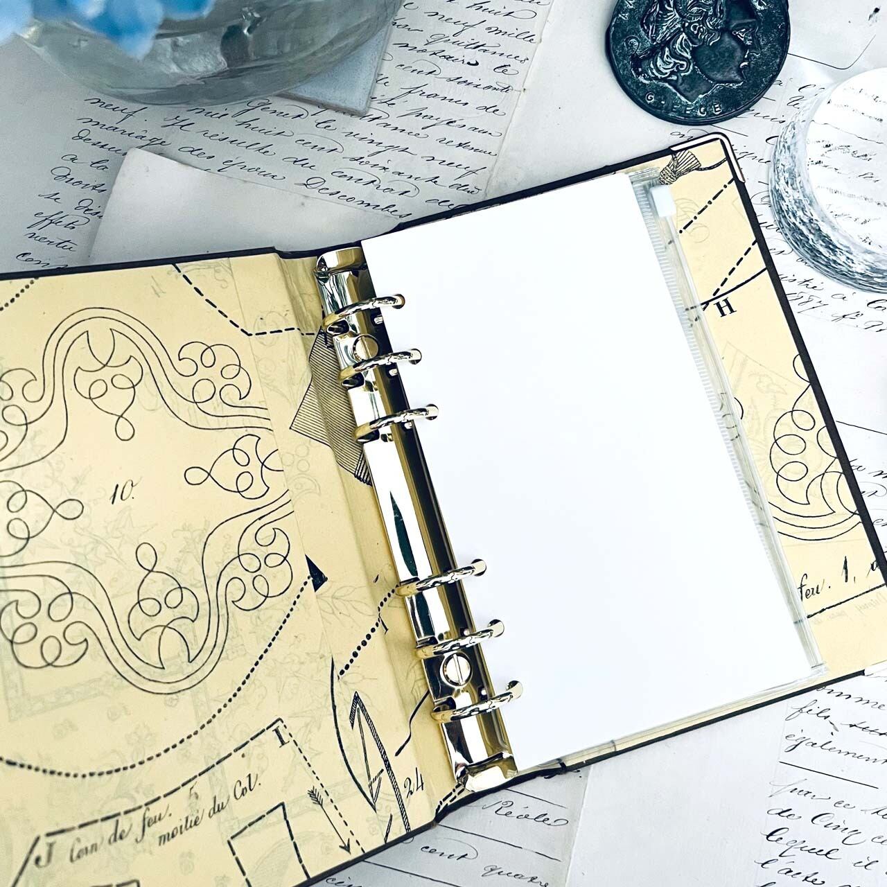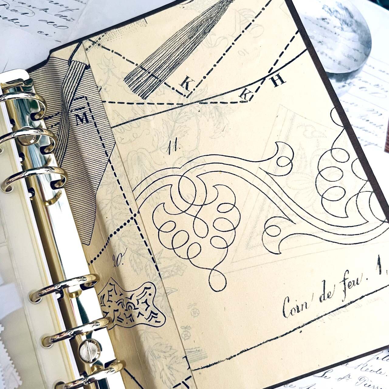 アンティーク洋書リメイク バインダーノート/ Antique foreign book remake binder notebook