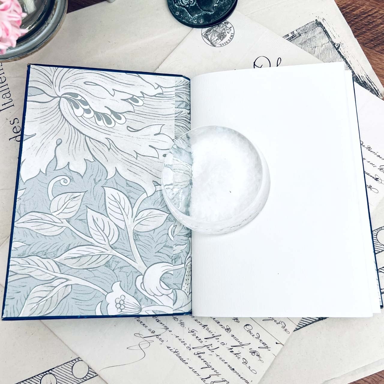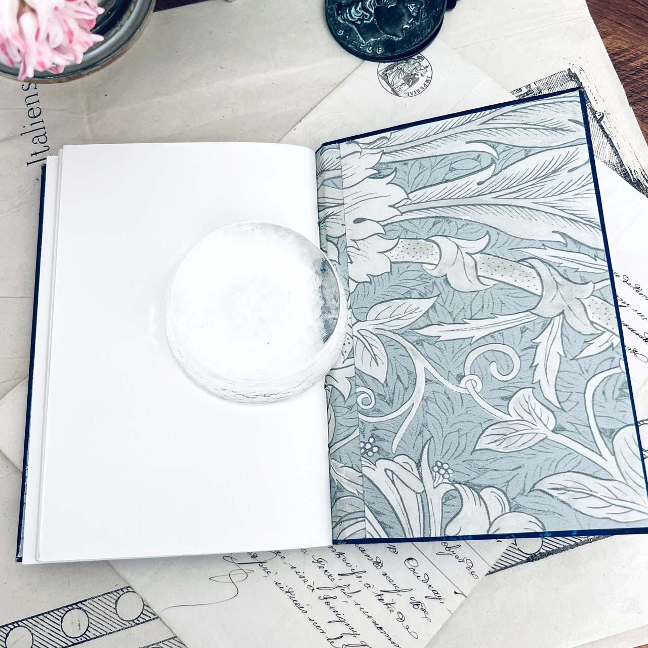 裏表紙も表紙に合わせてウィリアムモリスの装飾紙を使用しております。