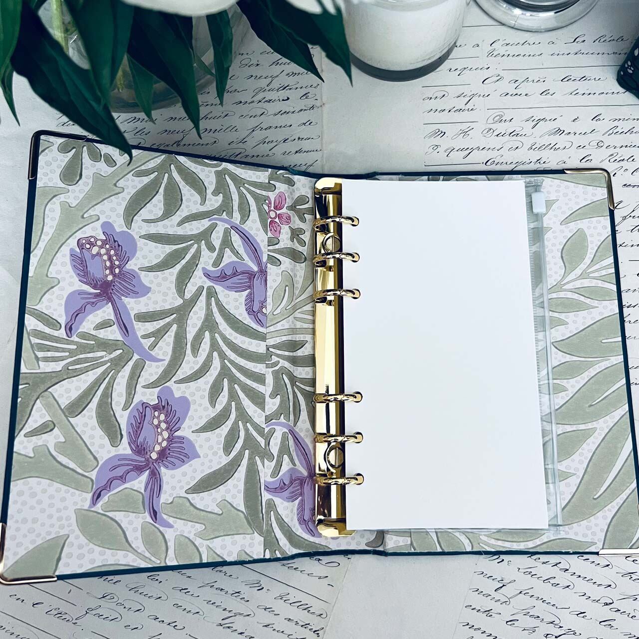 裏地は表紙に合わせたウィリアムモリスの装飾紙を使用しております。
