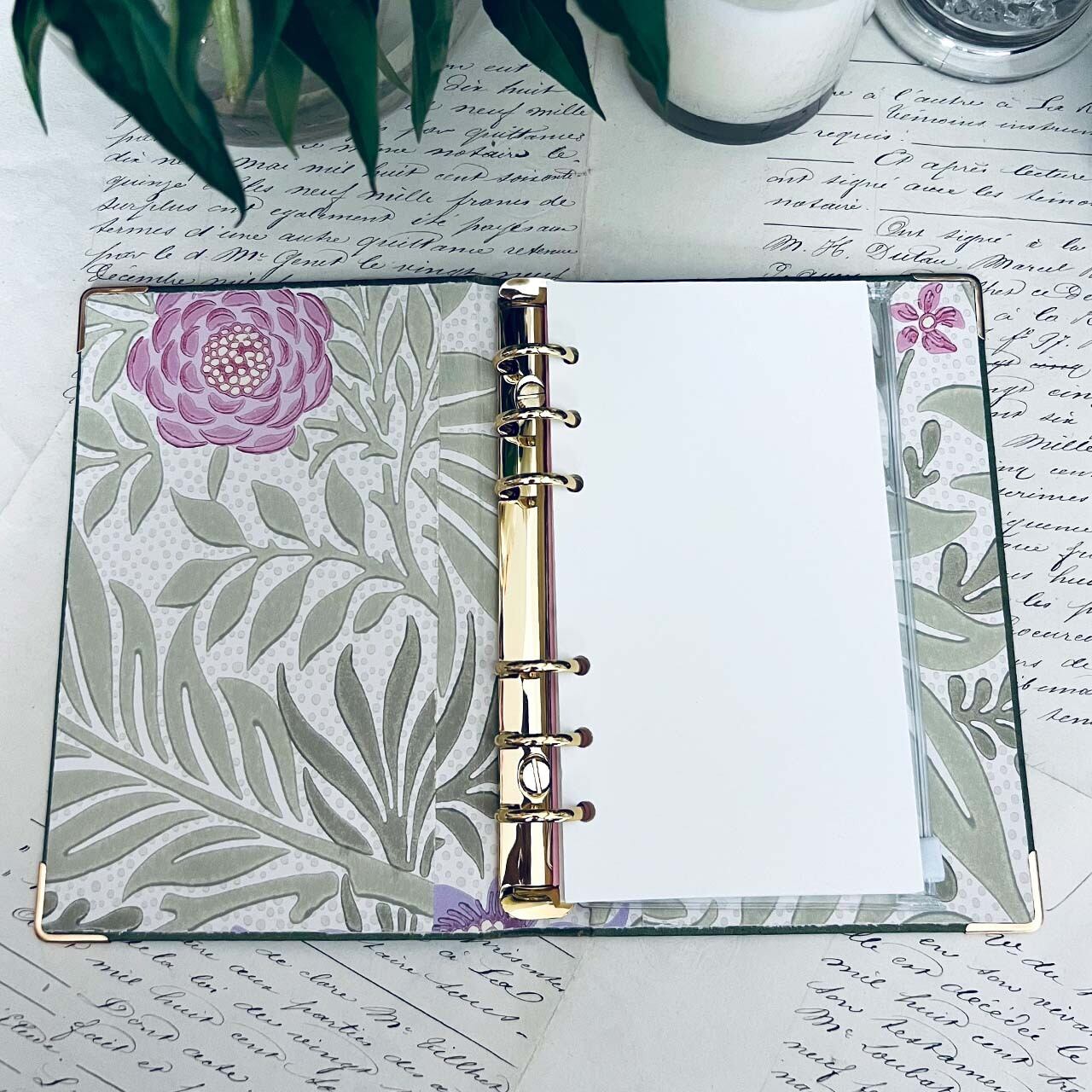 裏地は表紙に合わせたウィリアムモリスの装飾紙を使用しております。