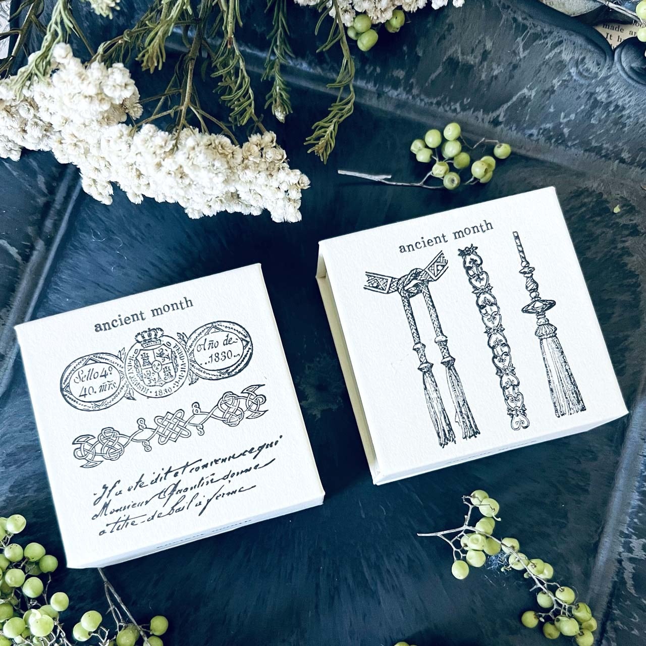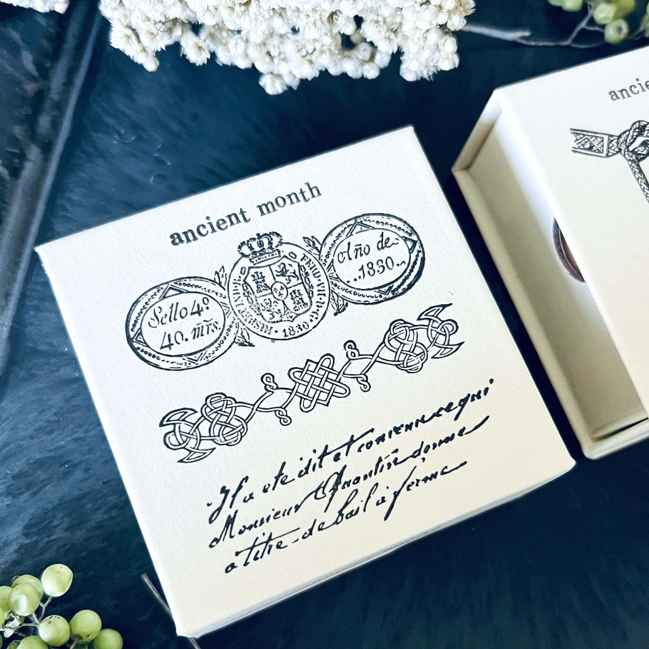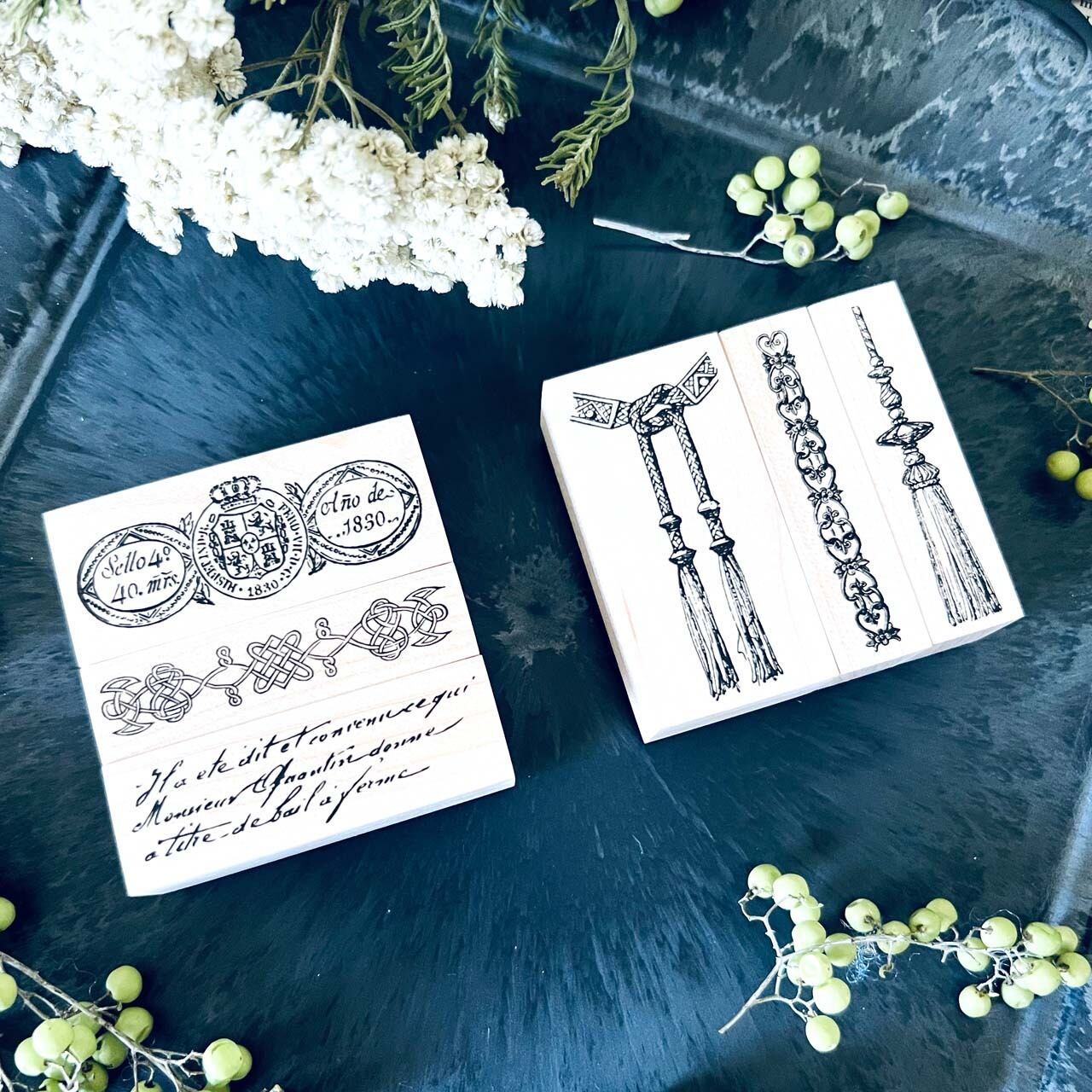 18世紀から19世紀にかけての飾り模様、手記、小説、公文書などから制作した当店オリジナルのスタンプです。