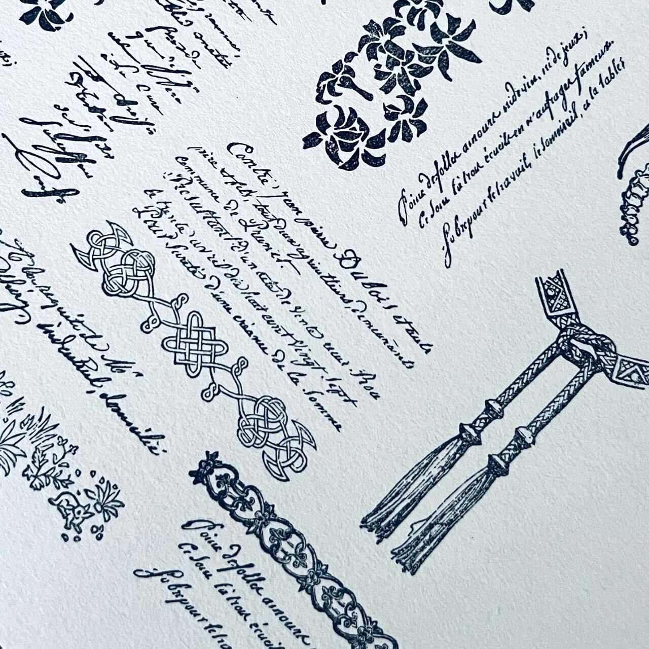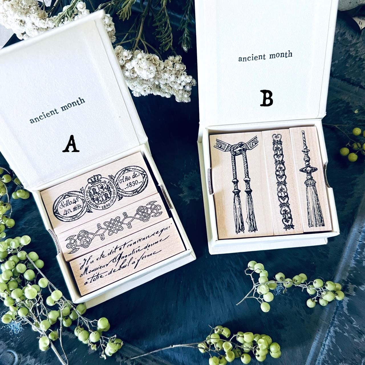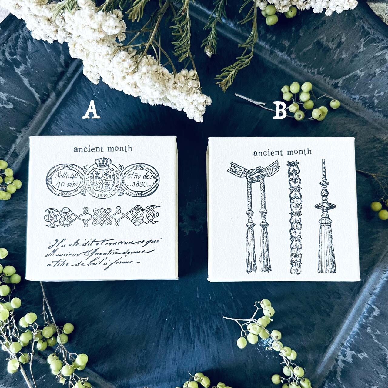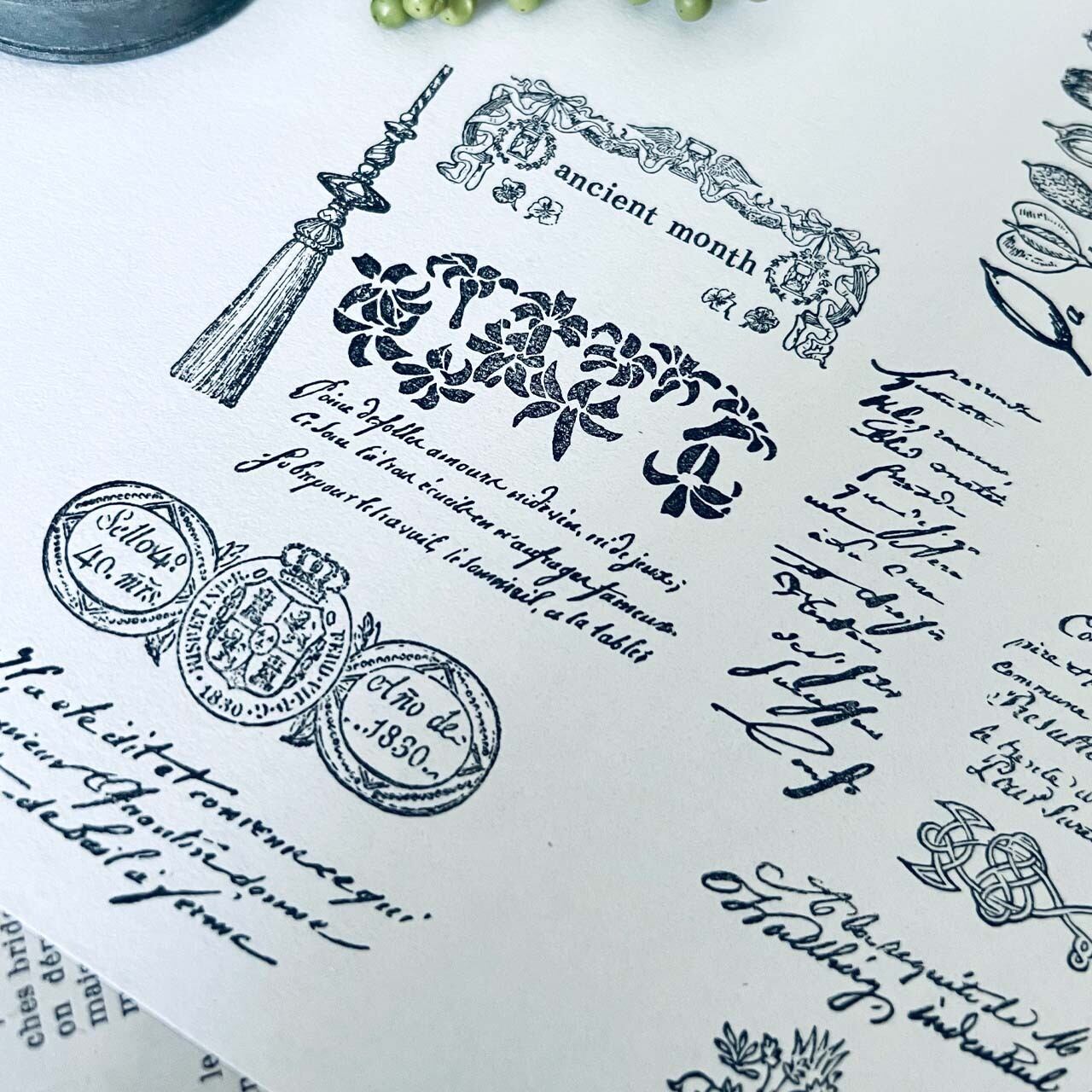 18世紀から19世紀にかけての飾り模様、手記、小説、公文書などから制作した当店オリジナルのスタンプです。