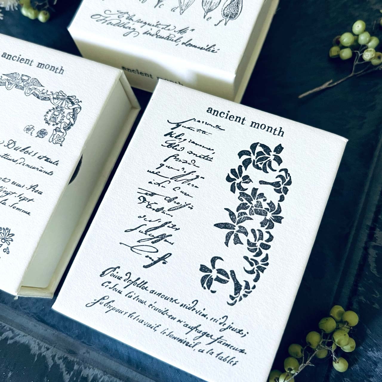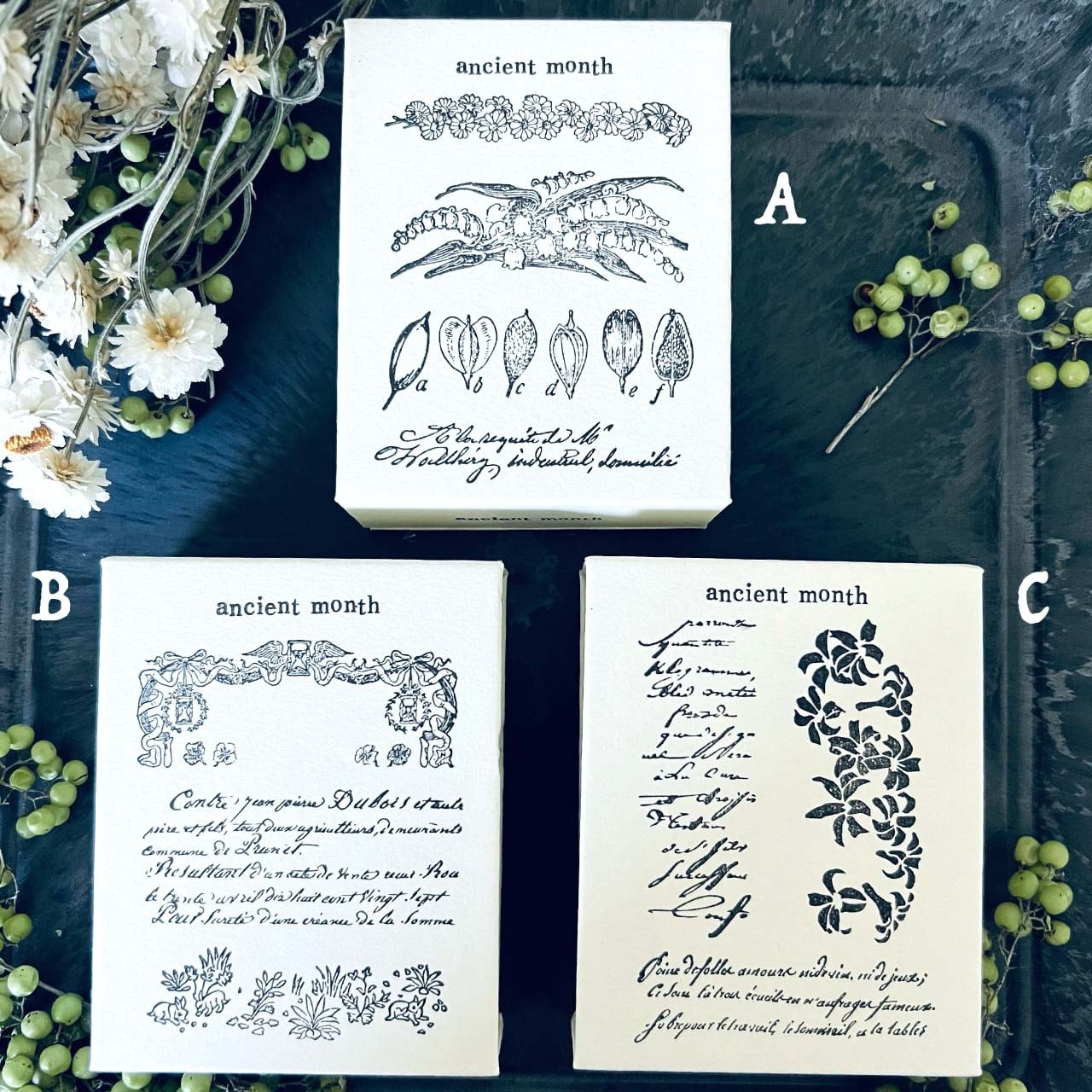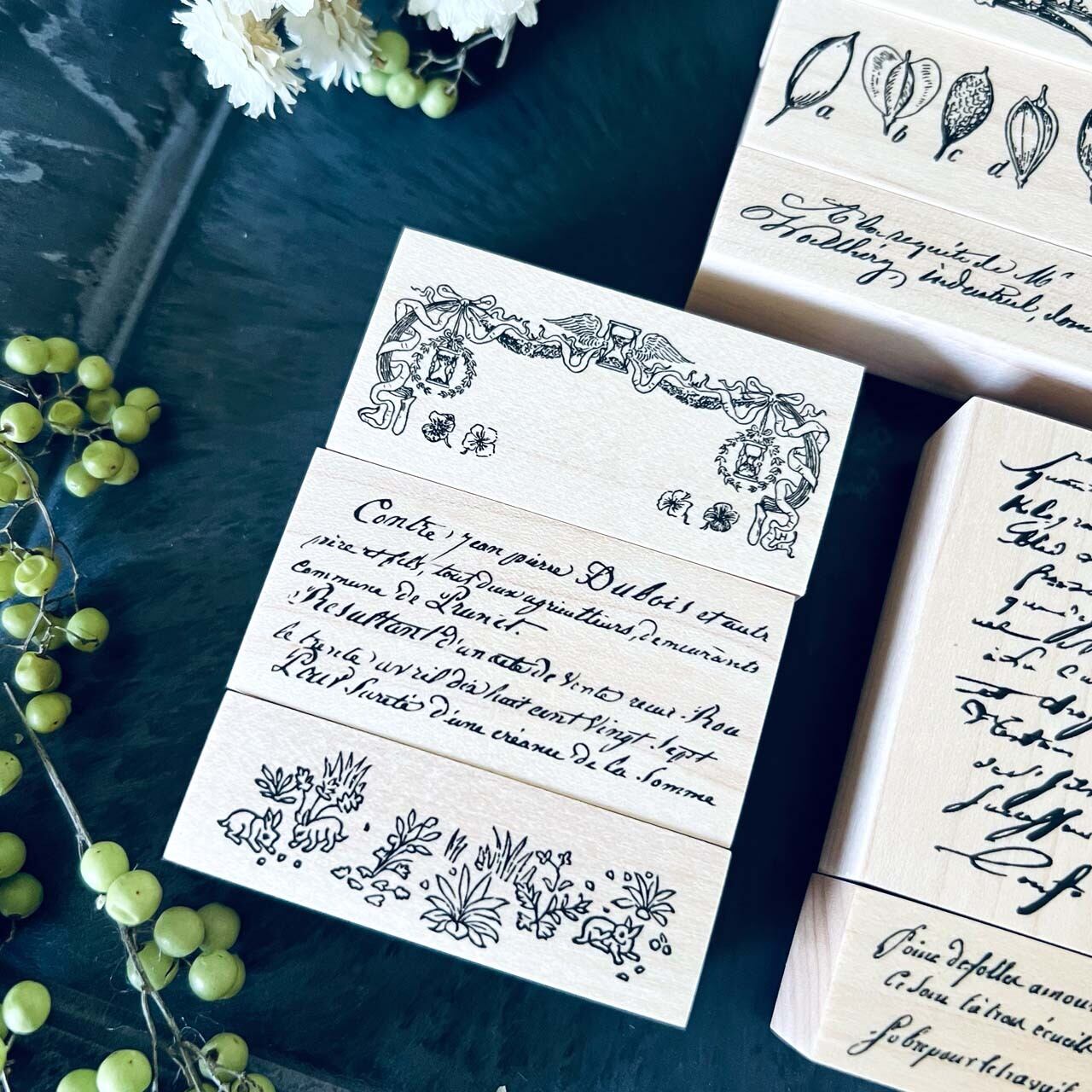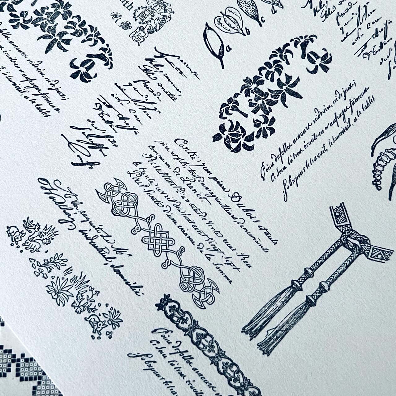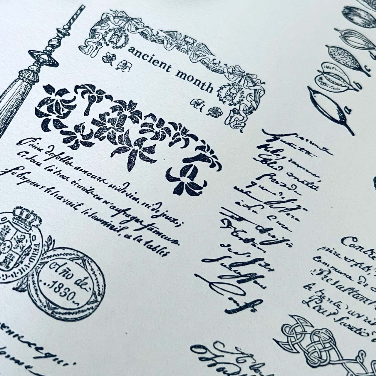 18世紀から19世紀にかけての飾り模様、手記、小説、公文書などから制作した当店オリジナルのスタンプです。