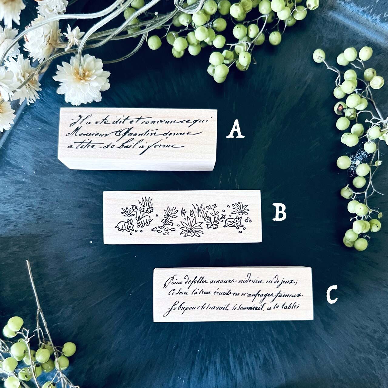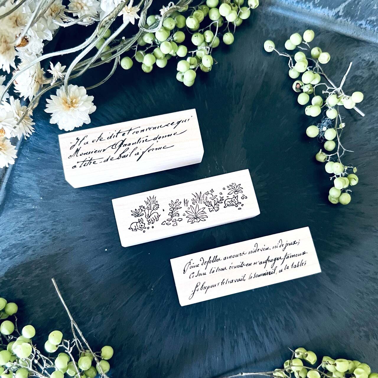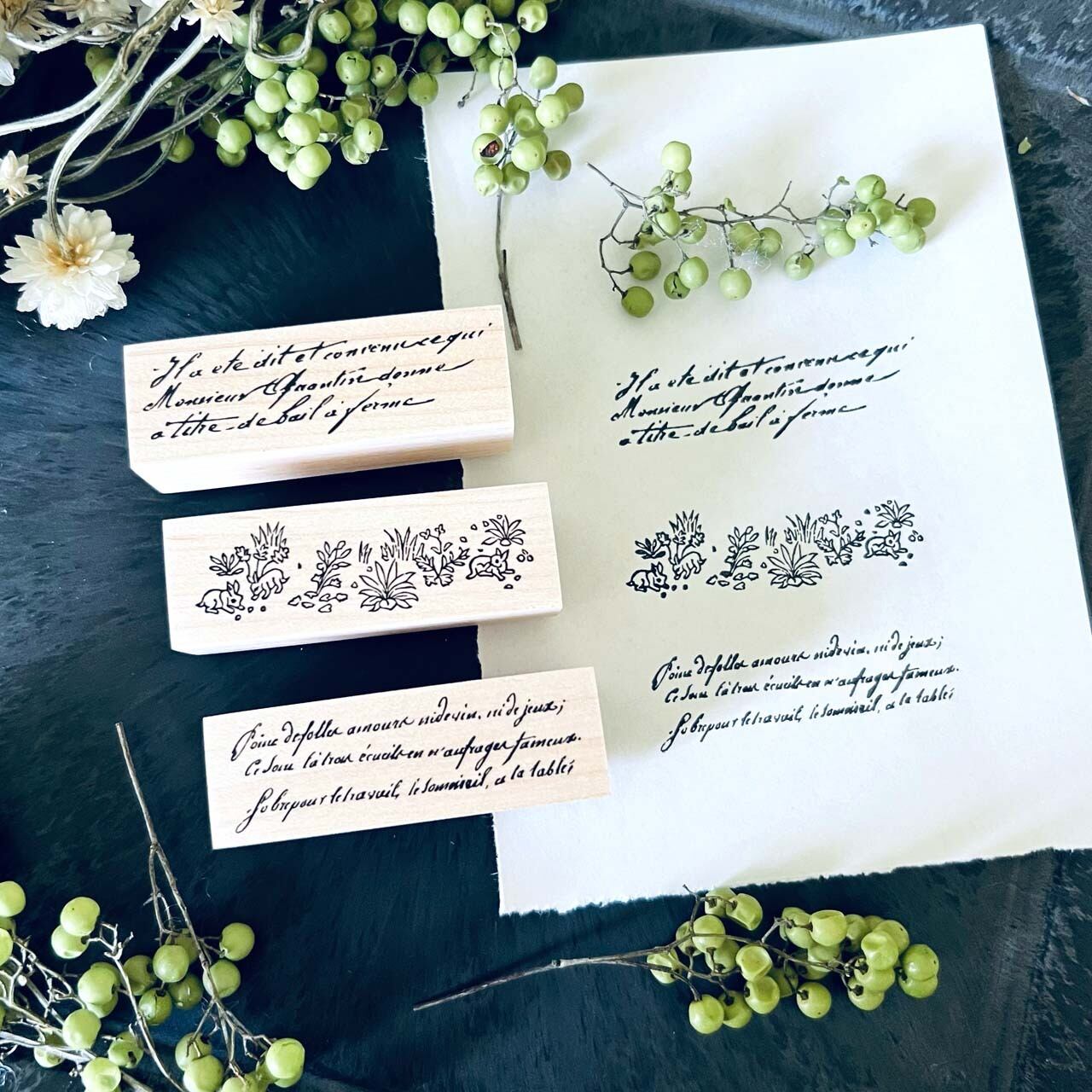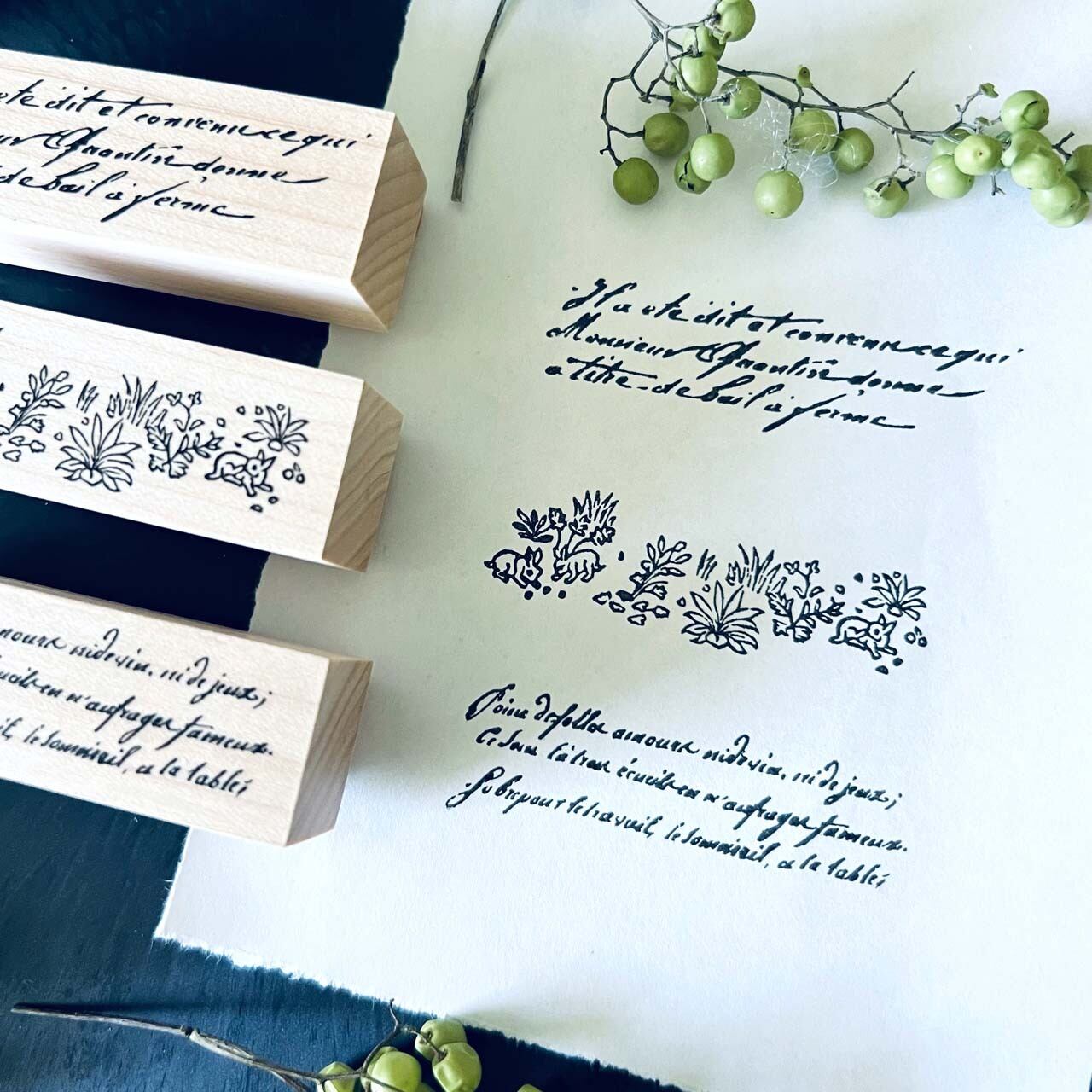 18世紀から19世紀にかけての飾り模様、手記、小説、公文書などから制作した当店オリジナルのスタンプです。