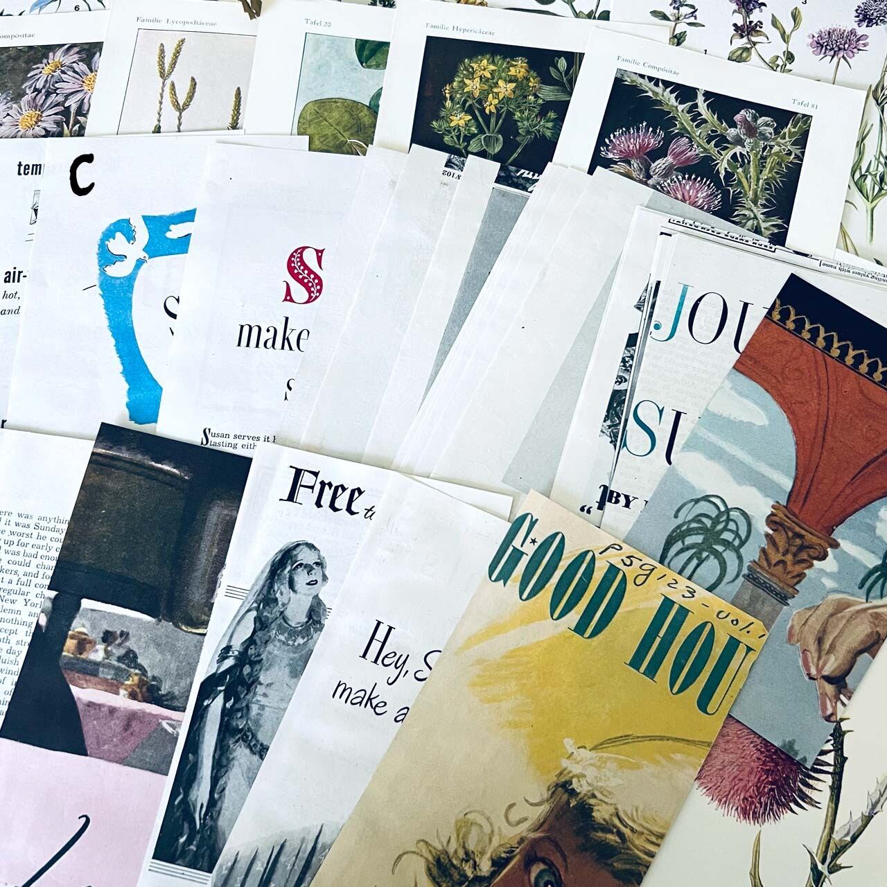 アンティーク、ヴィンテージ植物図鑑や図鑑、洋書から切り取った素材を集めました。