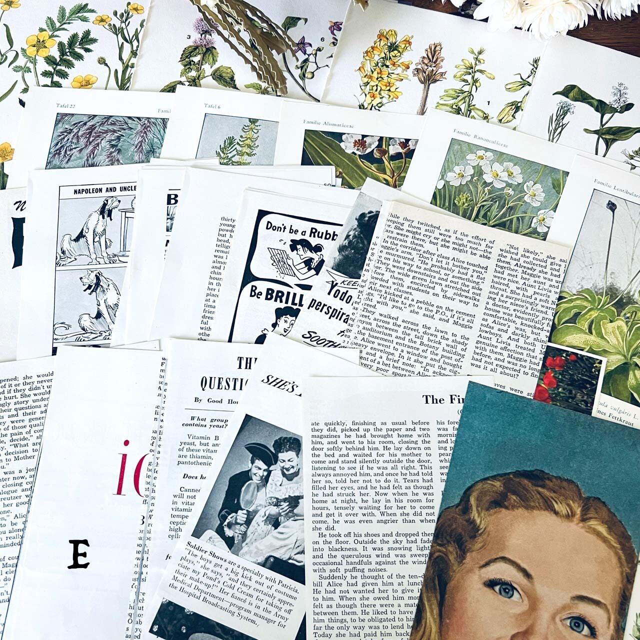 アンティーク、ヴィンテージ植物図鑑や図鑑、洋書から切り取った素材を集めました。