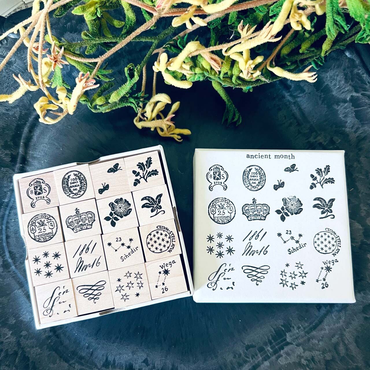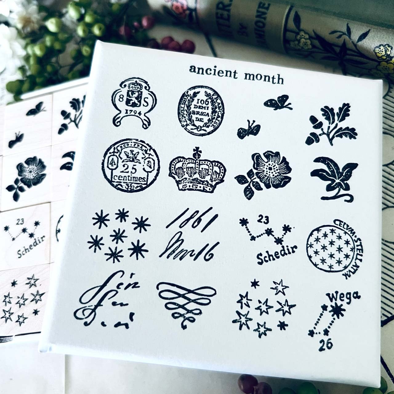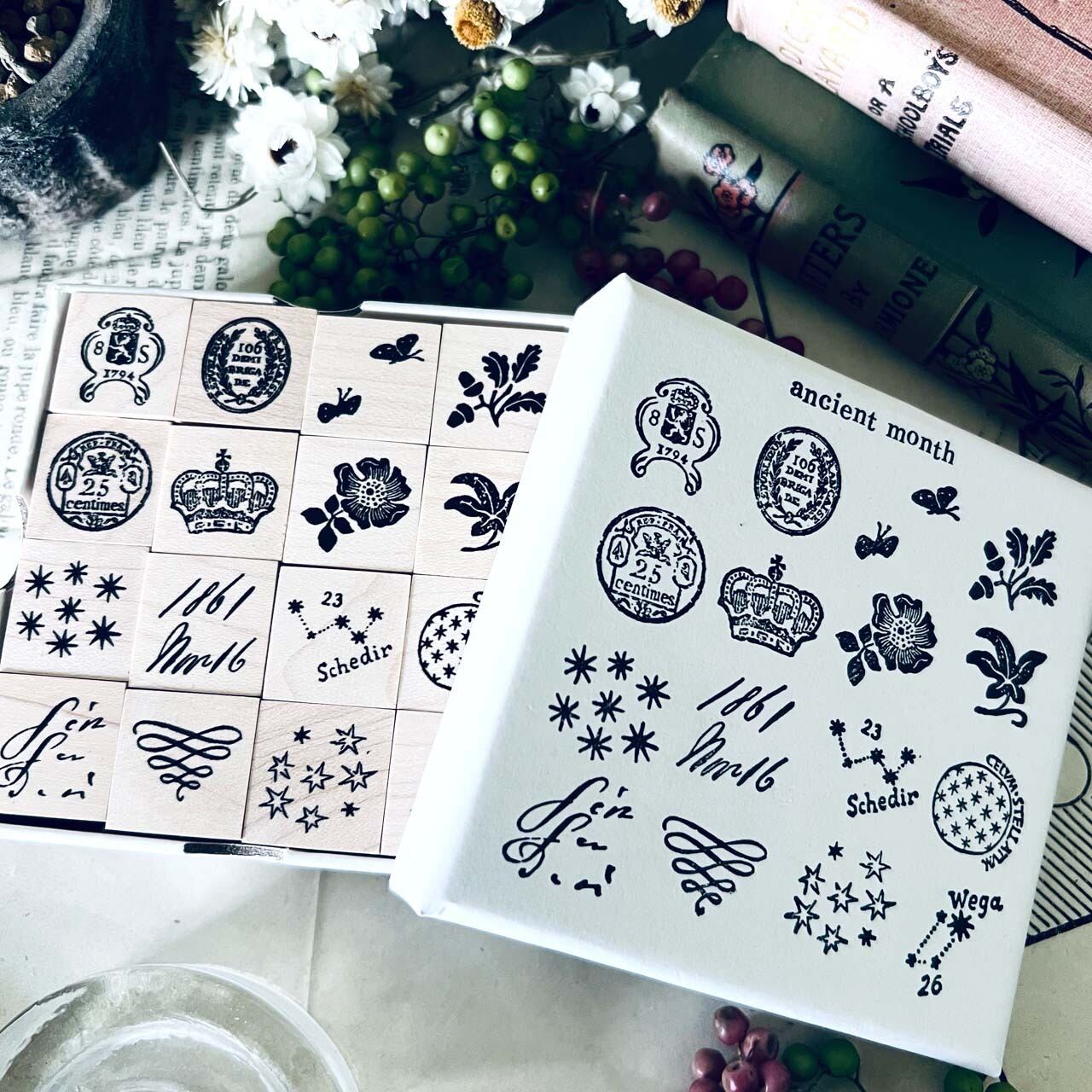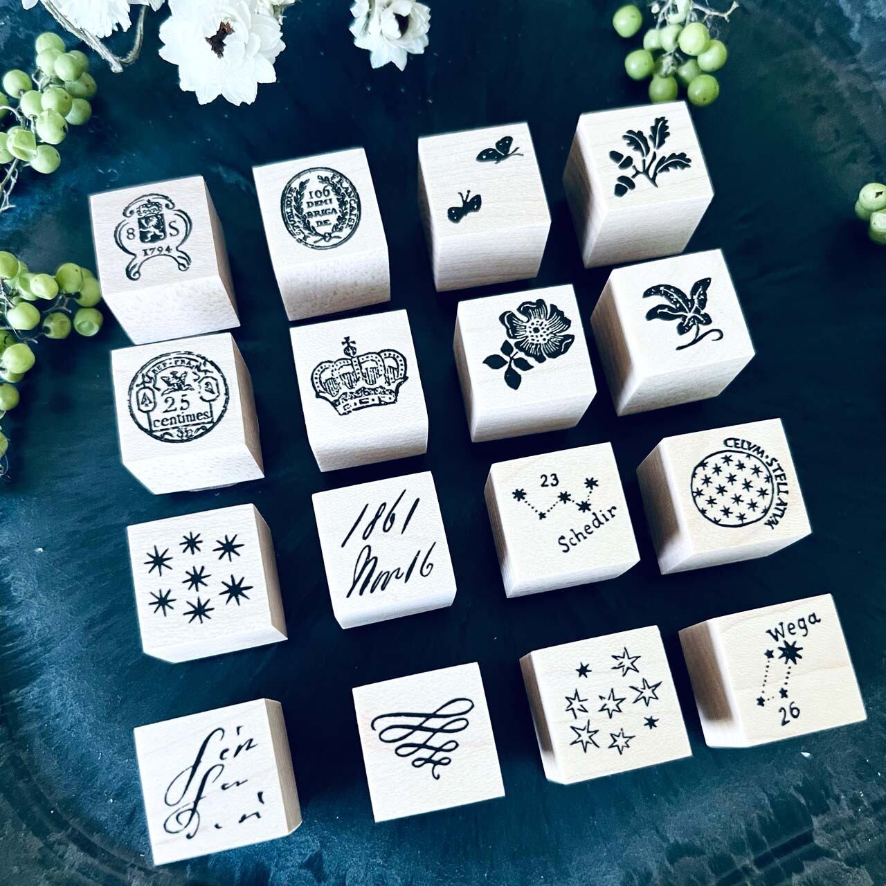 18世紀から19世紀にかけての飾り模様、手記、小説、公文書などから制作した当店オリジナルのスタンプです。